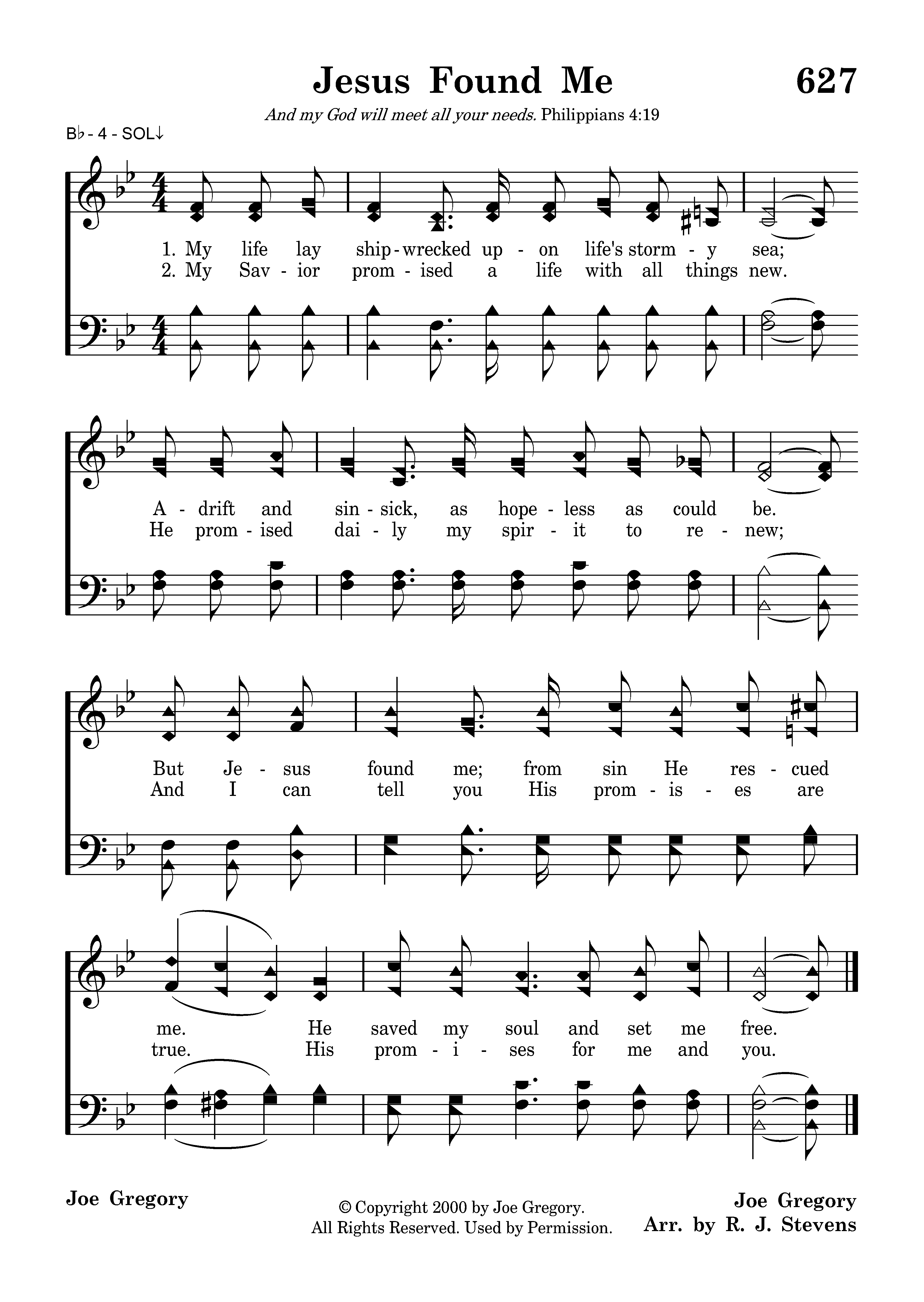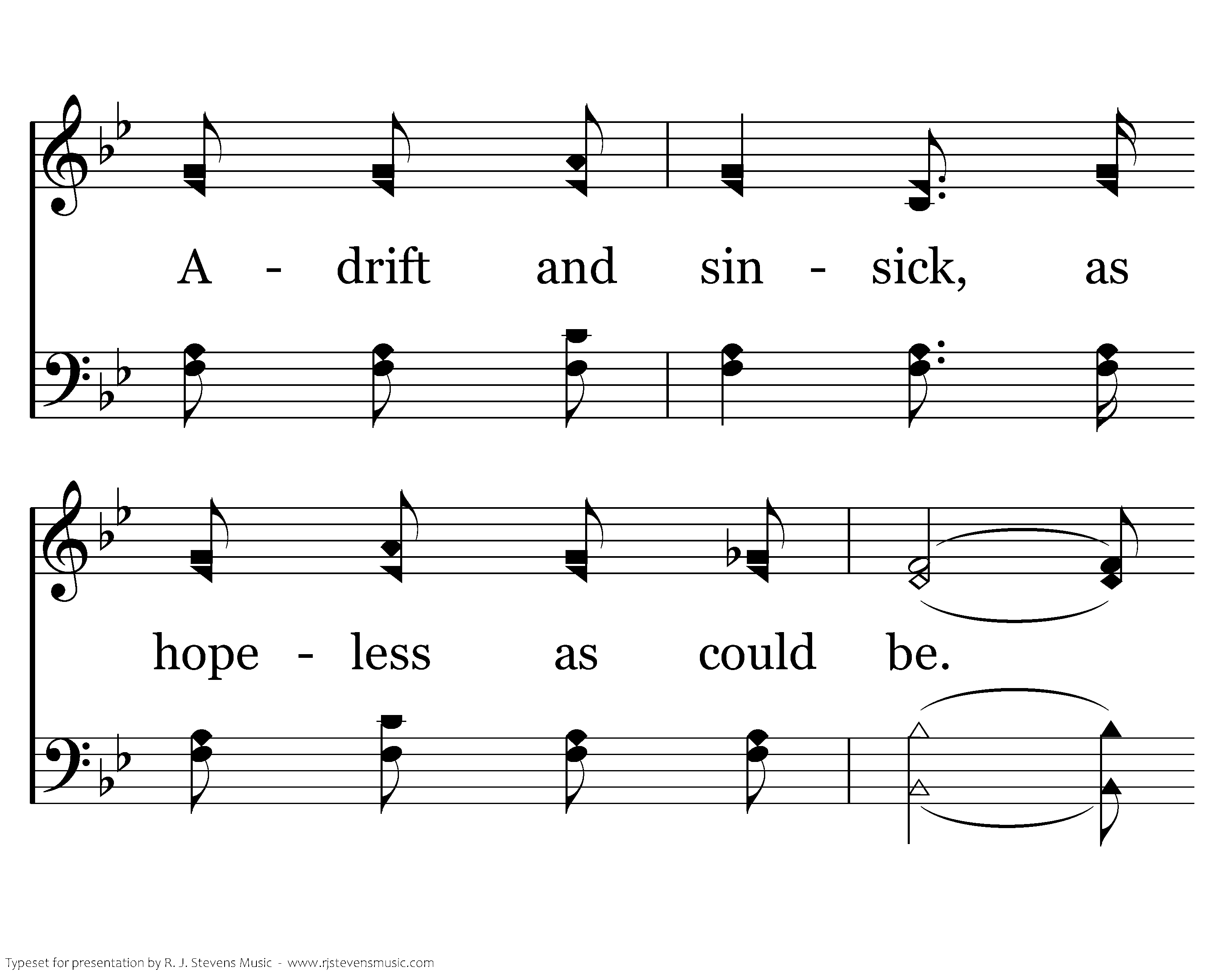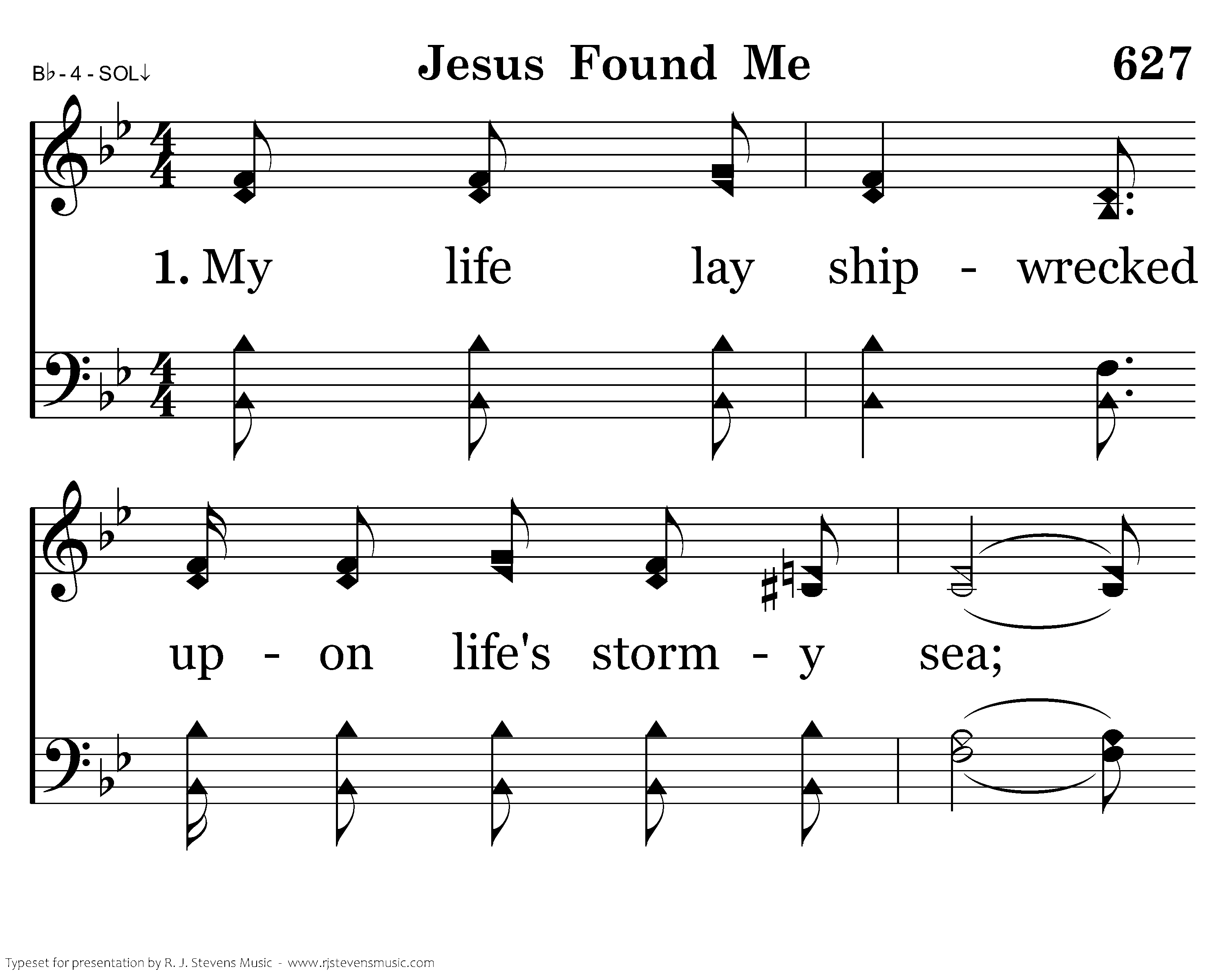 My life lay shipwrecked upon life's stormy sea; Adrift and sinsick, as hopeless as could be. But Jesus found me; from sin He rescued me. He saved my soul and set me free.