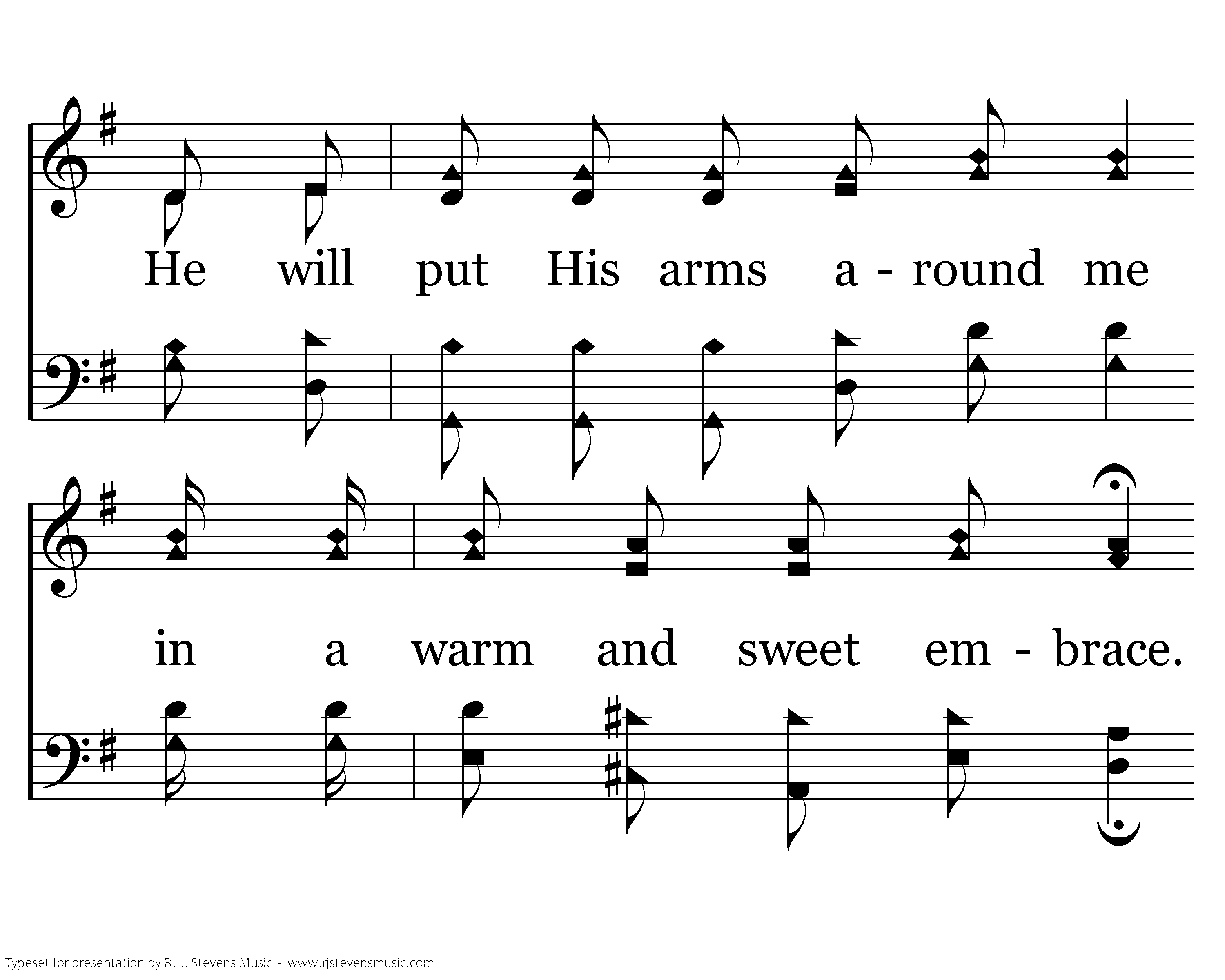 One of these days I'll be with Jesus and behold His smiling face. He will put His arms around me in a warm and sweet embrace. Out of the grave His voice will call me to my home beyond the sky, There to see Him in His glory, Yes, I'll be there by and by.