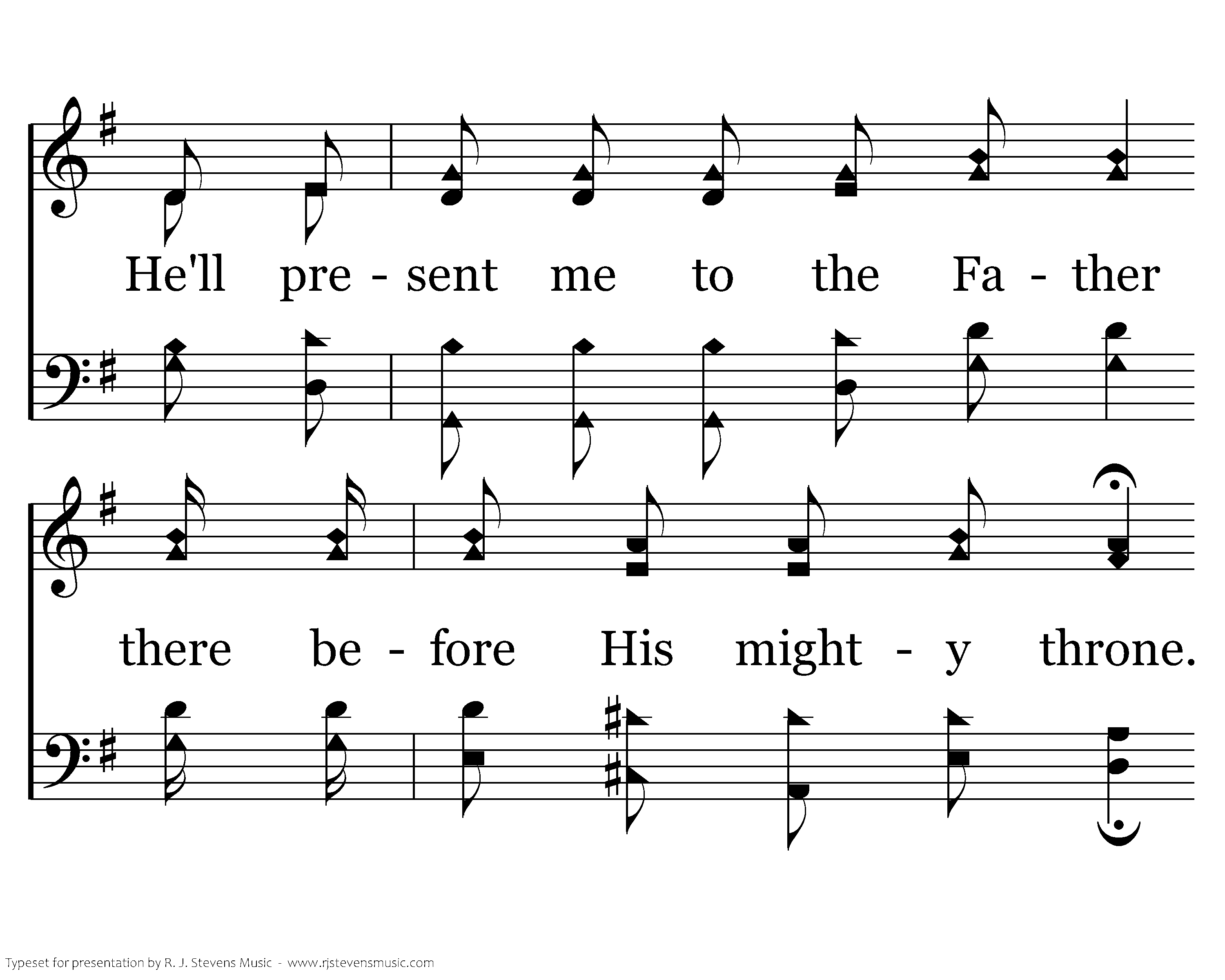 Jesus will take my hand and show me through that mansion I will own. He'll present me to the Father there before His mighty throne. Then I'll join that mighty chorus singing praises o'er and o'er. I will be at home forever on that peaceful golden shore.