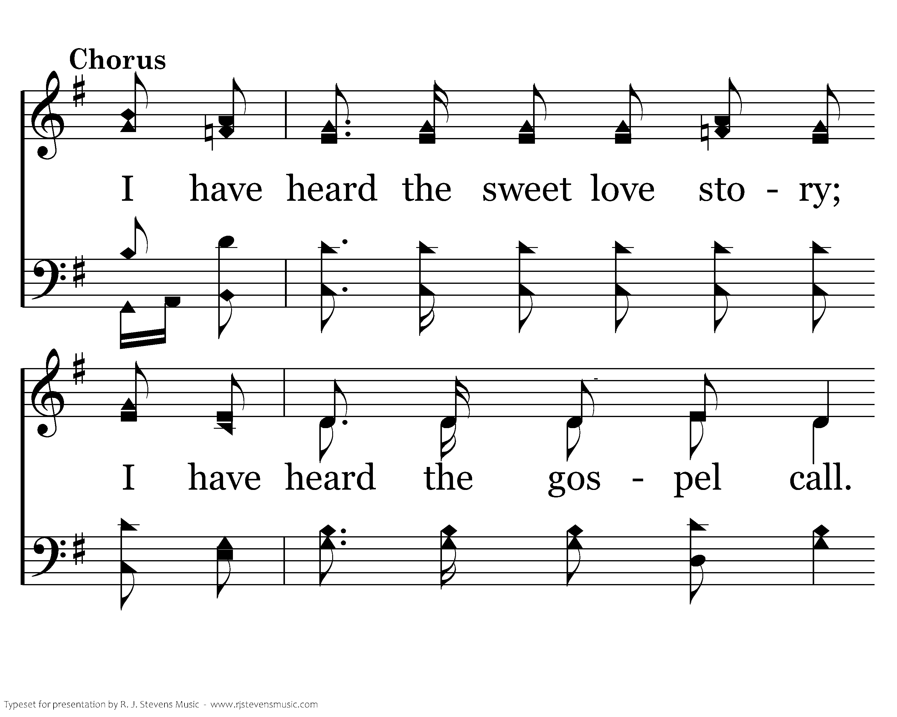 I have now heard the sweet love story, I have heard the gossple call. I have turned from my undoing, from the sins that made me fall. I've been baptized in His blood, now I wait for heaven's call