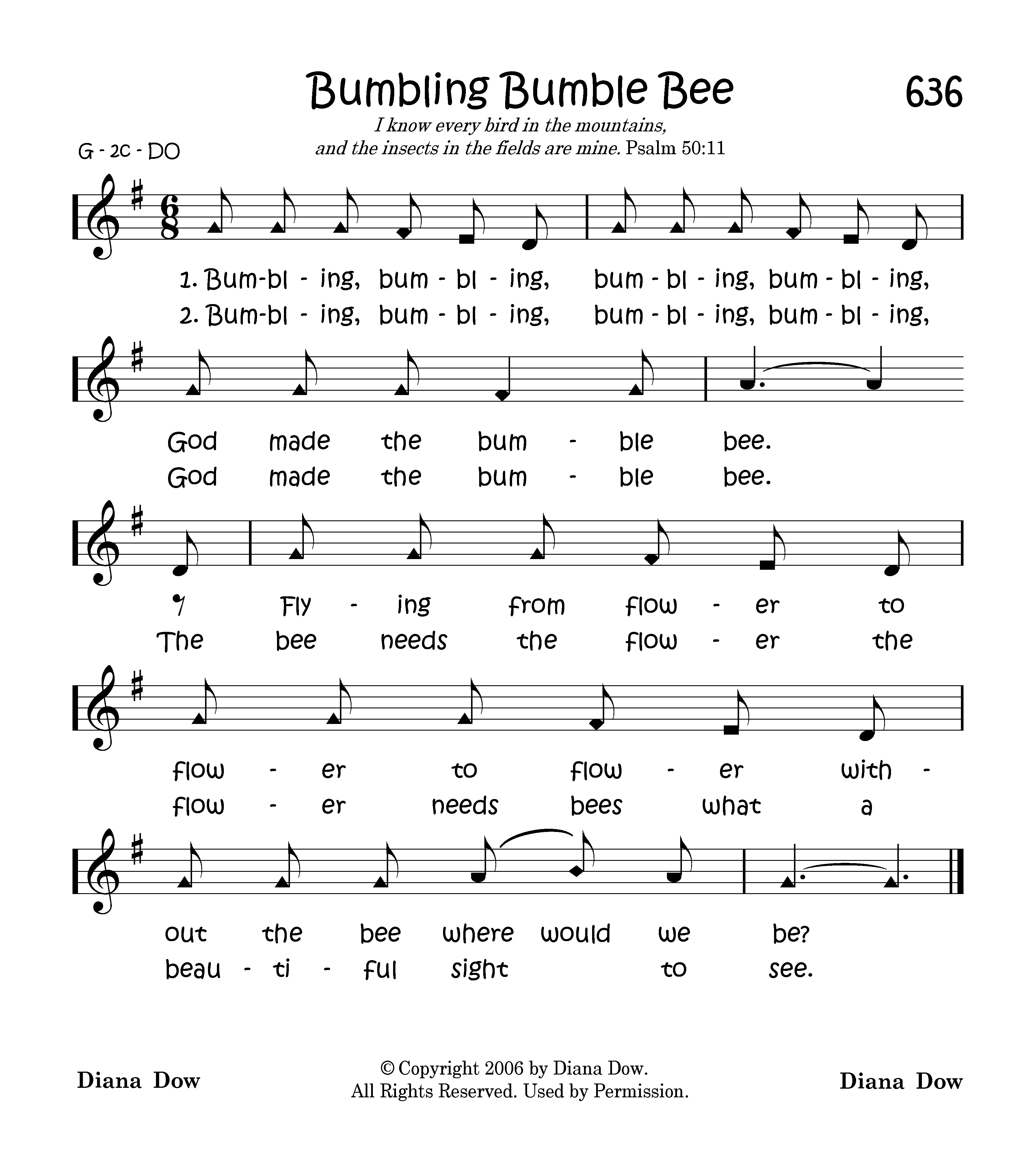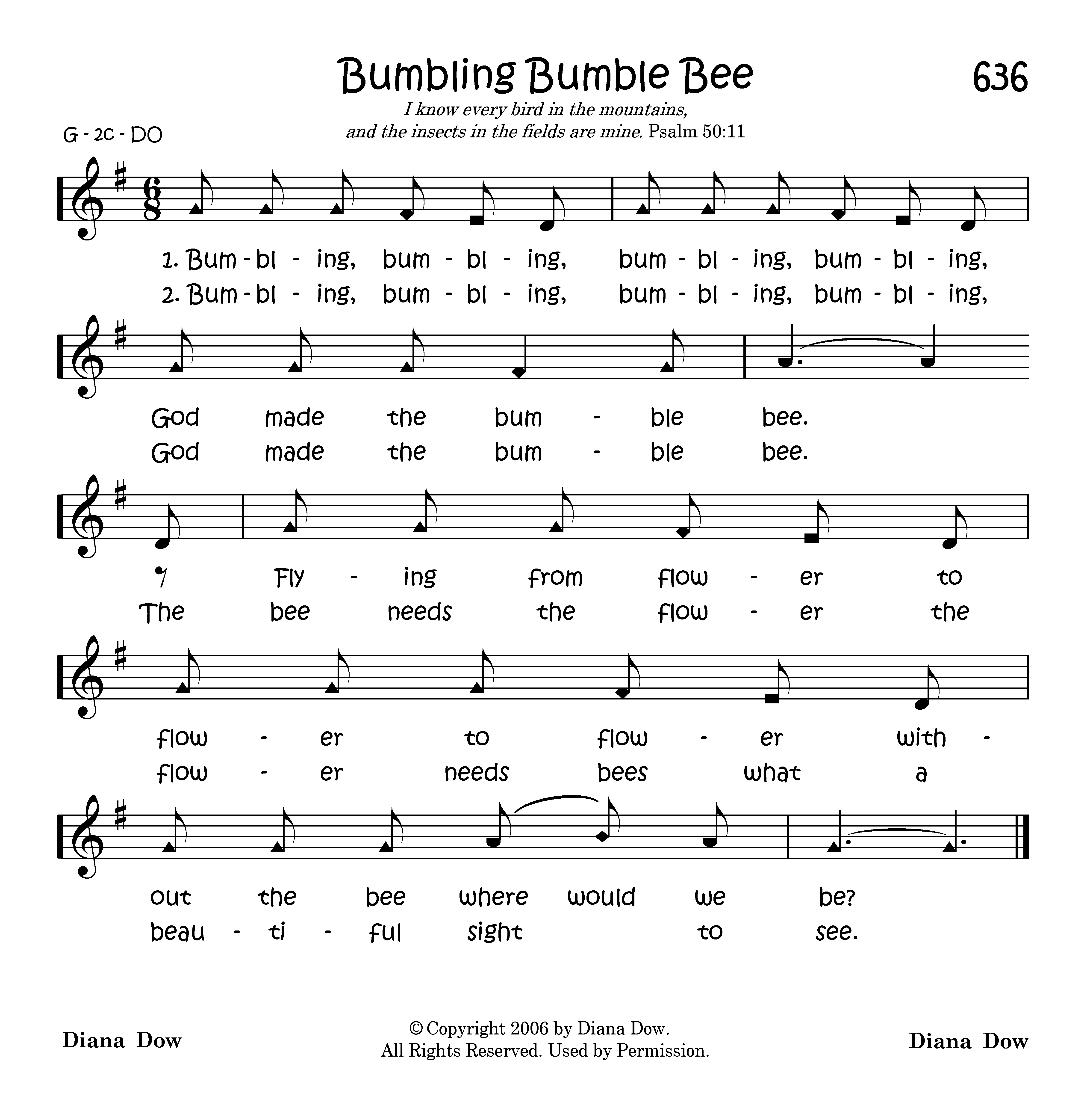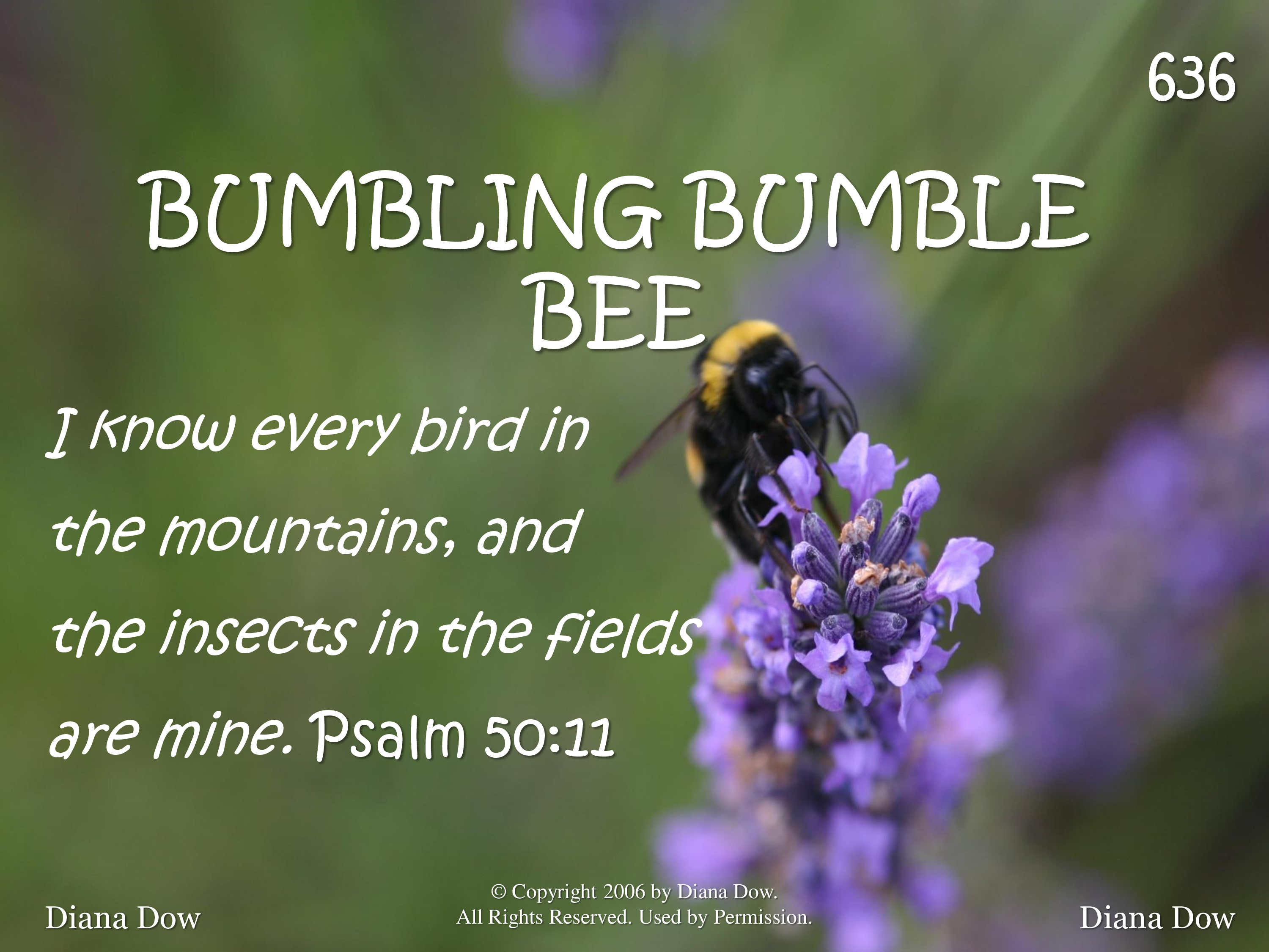 Bumbling, bumbling, bumbling, bumbling, God made the bumble bee. The bee needs the flower the flower needs bees what a beautiful sight to see.