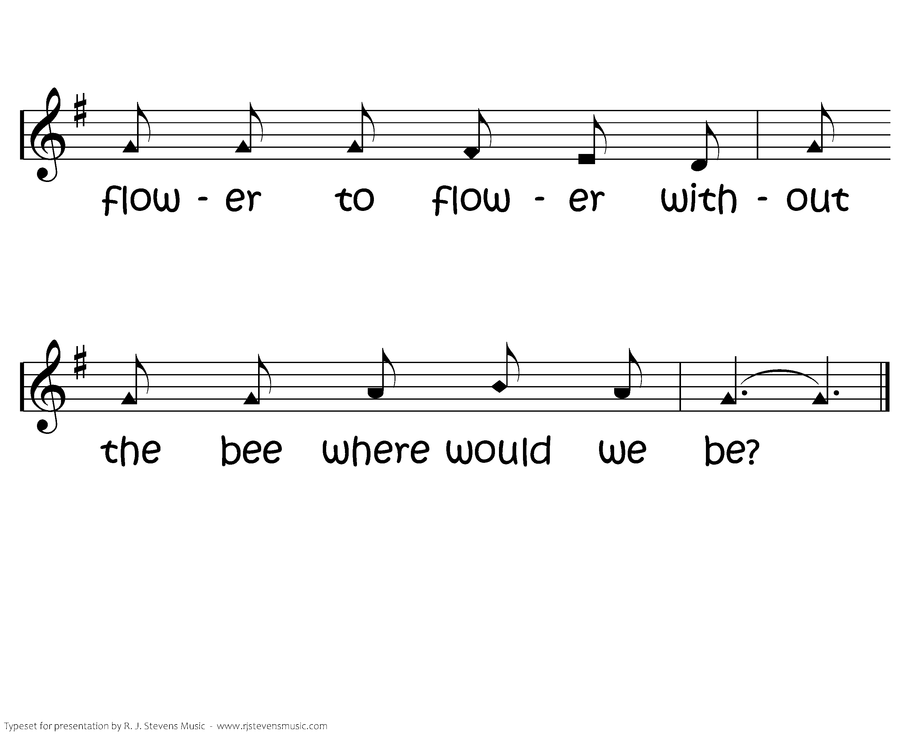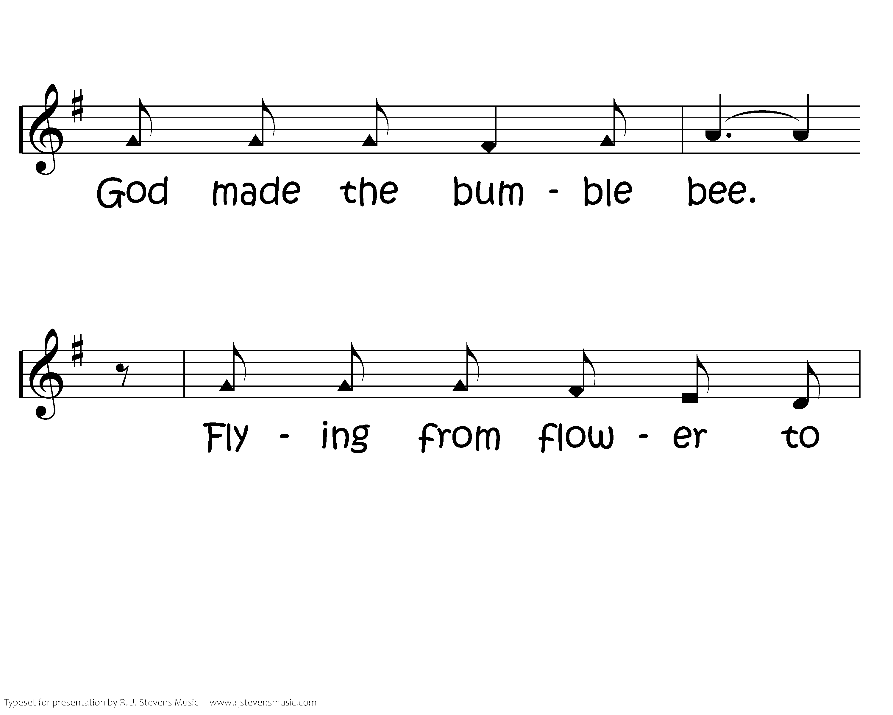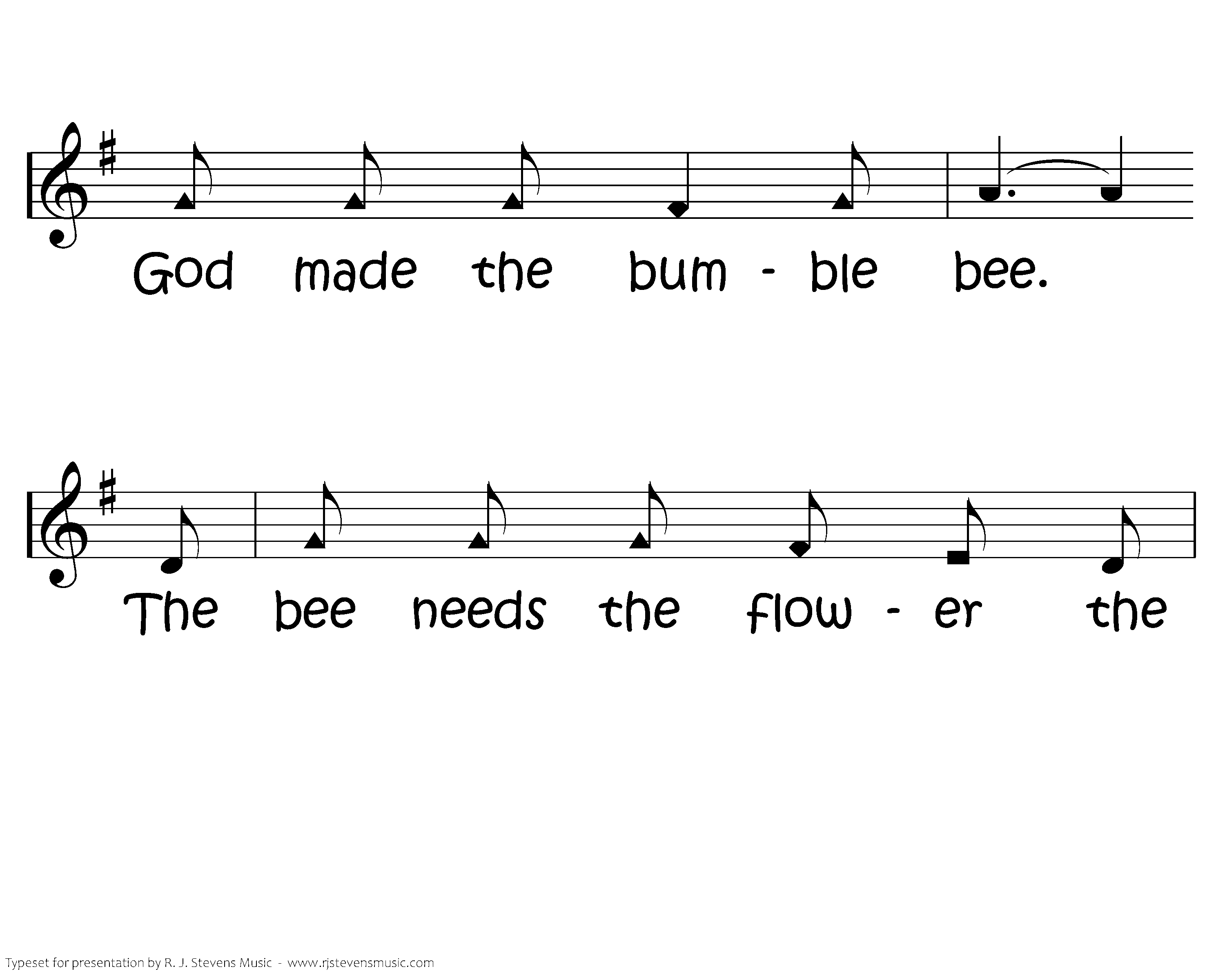 Bumbling, bumbling, bumbling, bumbling, God made the bumble bee. Flying from flower to flower to flower without the bee where would we be?