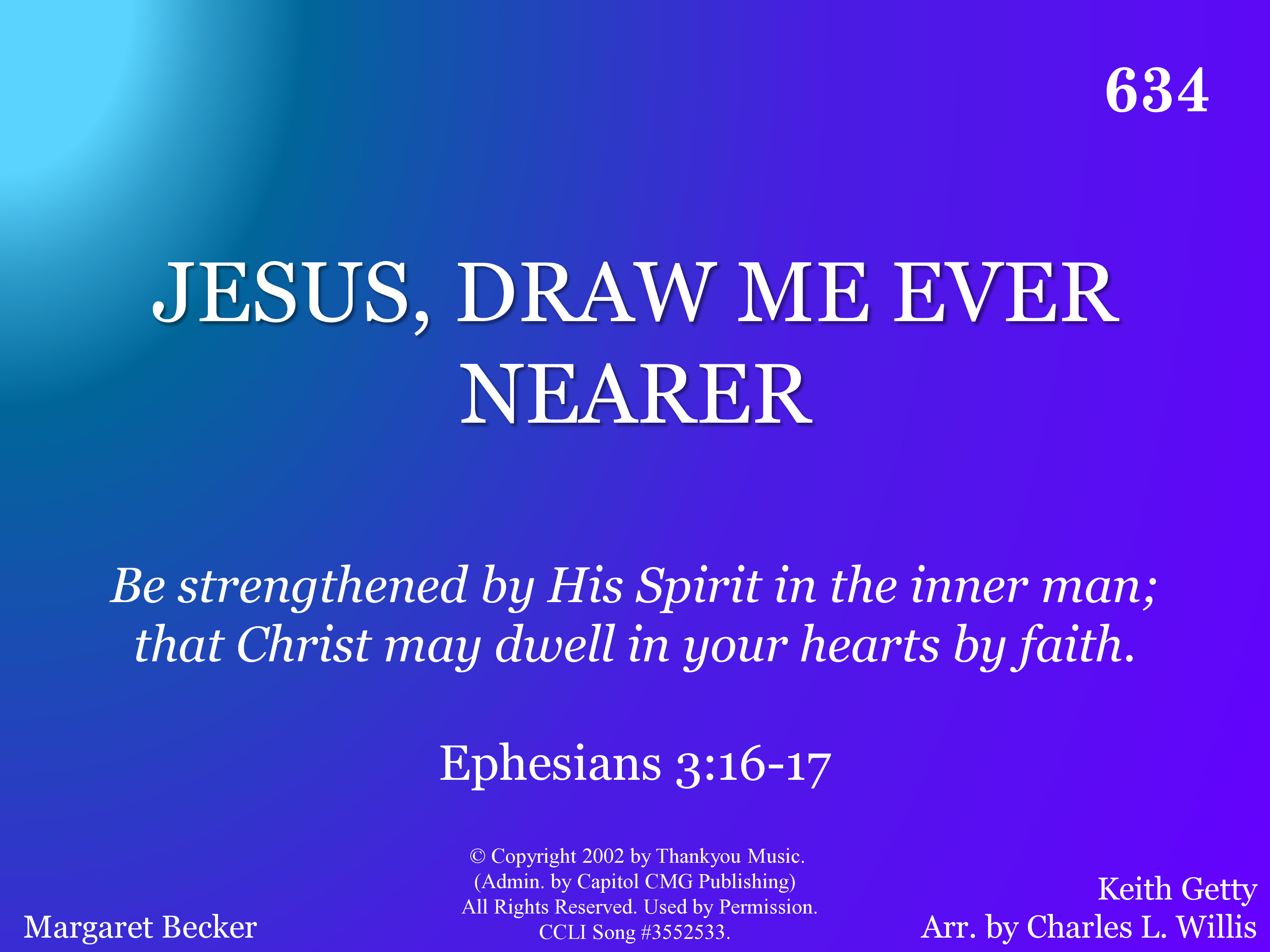 Key Value Title JESUS, DRAW ME EVER NEARER Number 20634 Hymnal Hymns For Worship (eChoice) Key Signature G Starting Pitch