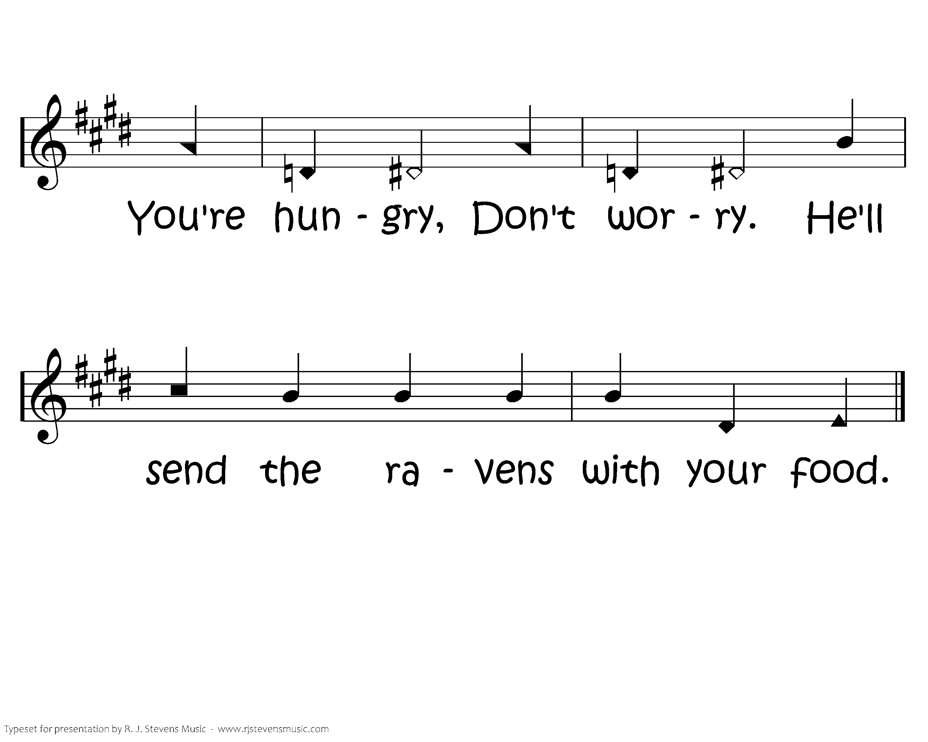 Elijah, God loves ya'. He'll care for you no matter what. You're hungry, Don't worry. He'll send the ravens with your food.