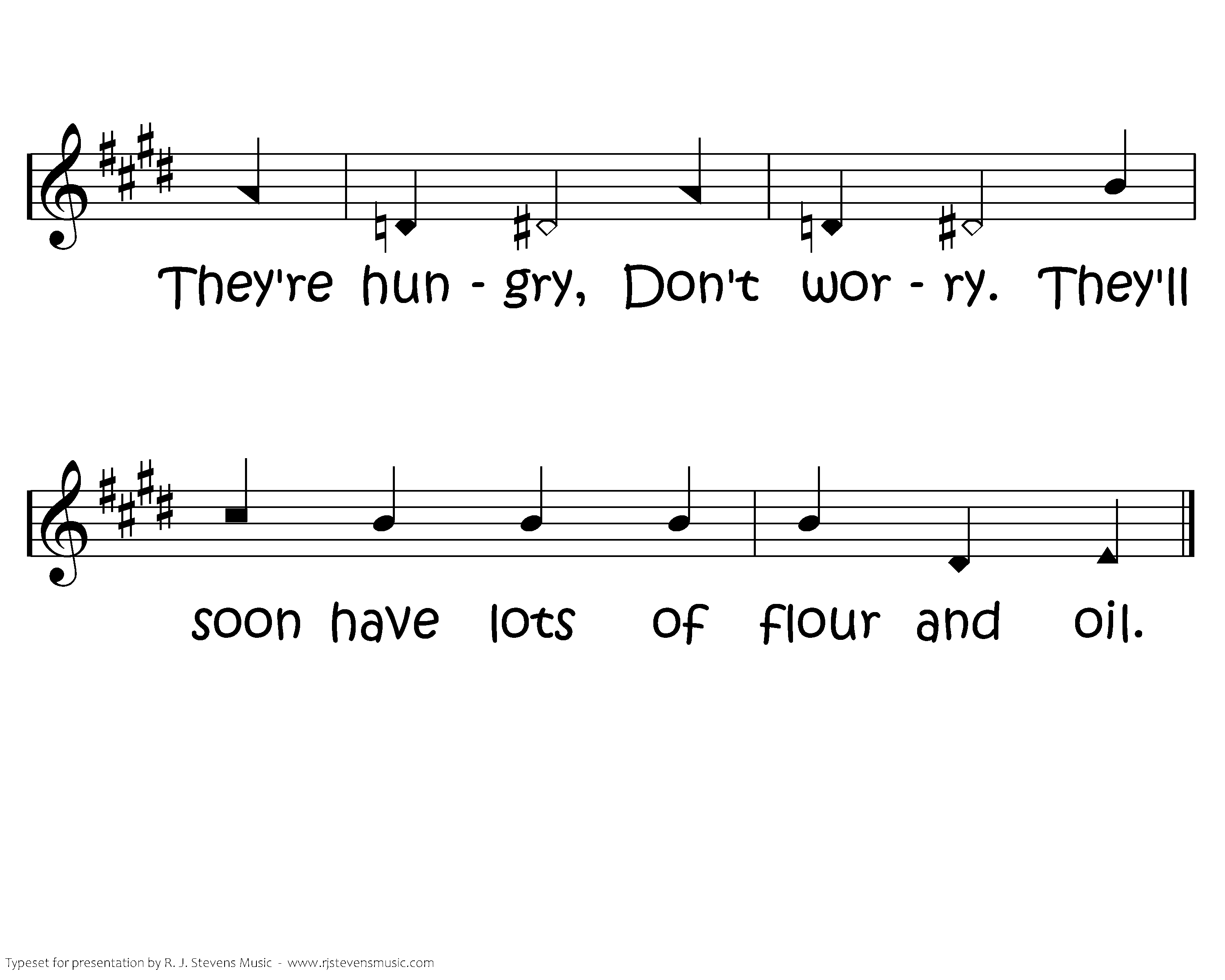 Elijah, God loves ya'. He'll help you raise the widow's son. They're hungry, Don't worry. They'll soon have lots of flour and oil.
