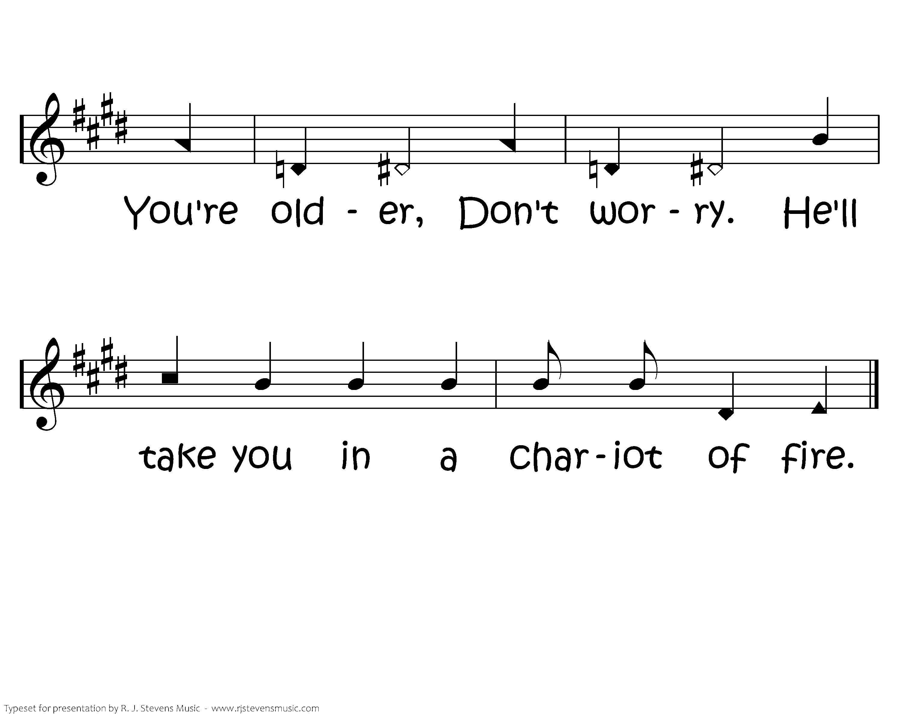 Elijah, God loves ya'. You'll cross the Jordan on dry land. You're older, Don't worry. He'll take you in a chariot of fire.
