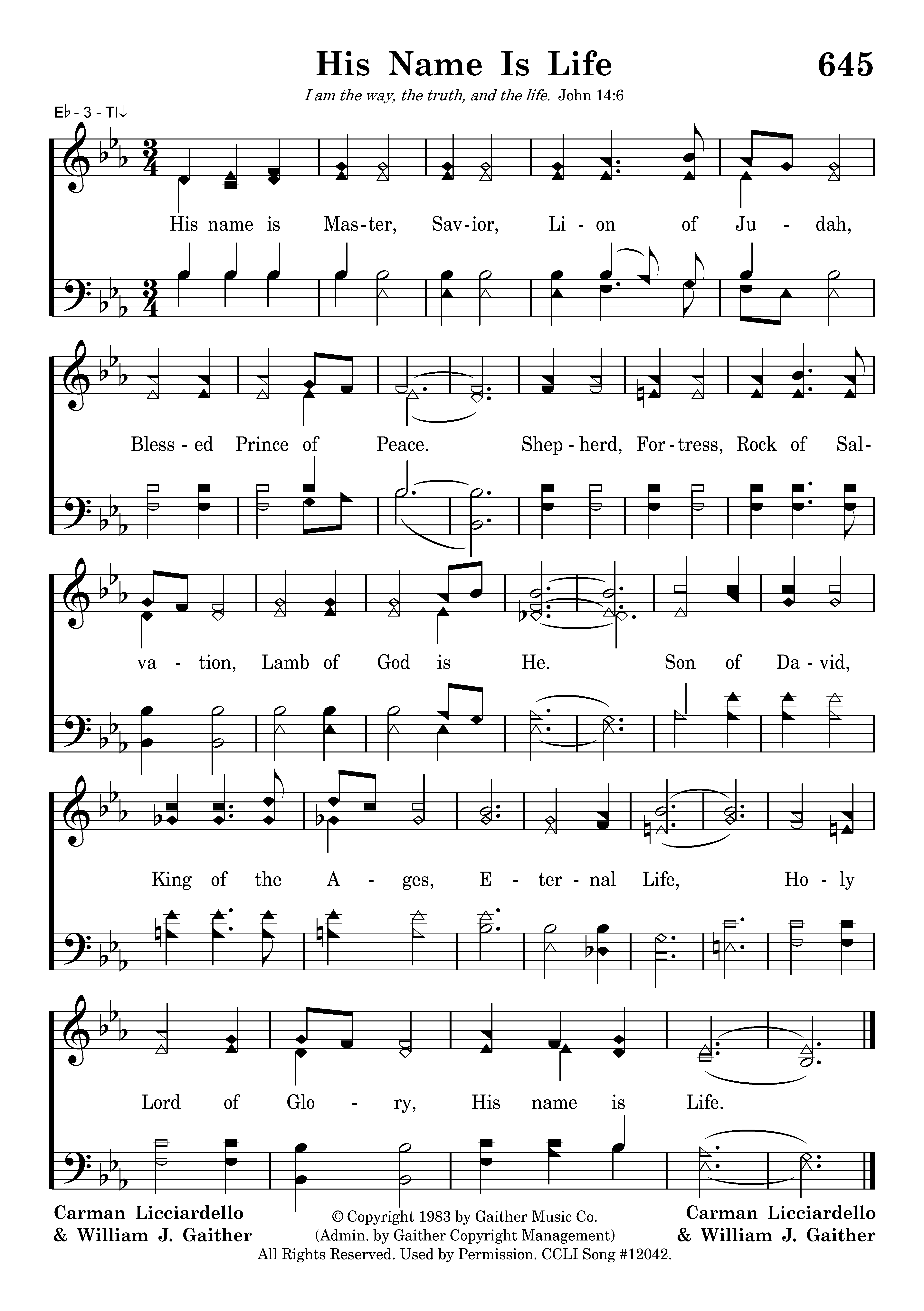 His name is Master, Savior, Lion of Judah, Blessed Prince of Peace. Shepherd, Fortress, Rock of Salvation, Lamb of God is He. Son of David, King of the Ages, Eternal Life, Holy Lord of Glory, His name is Life.