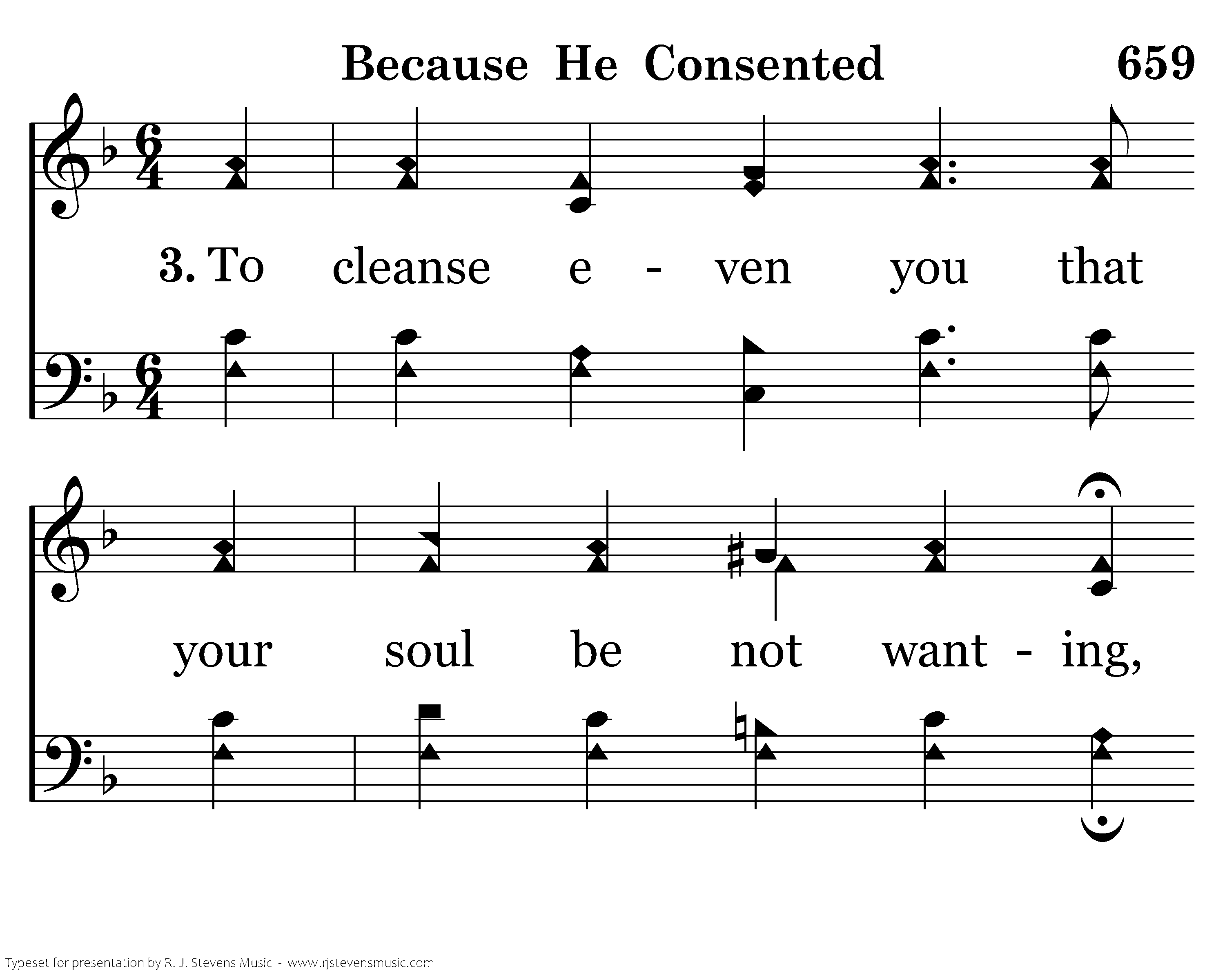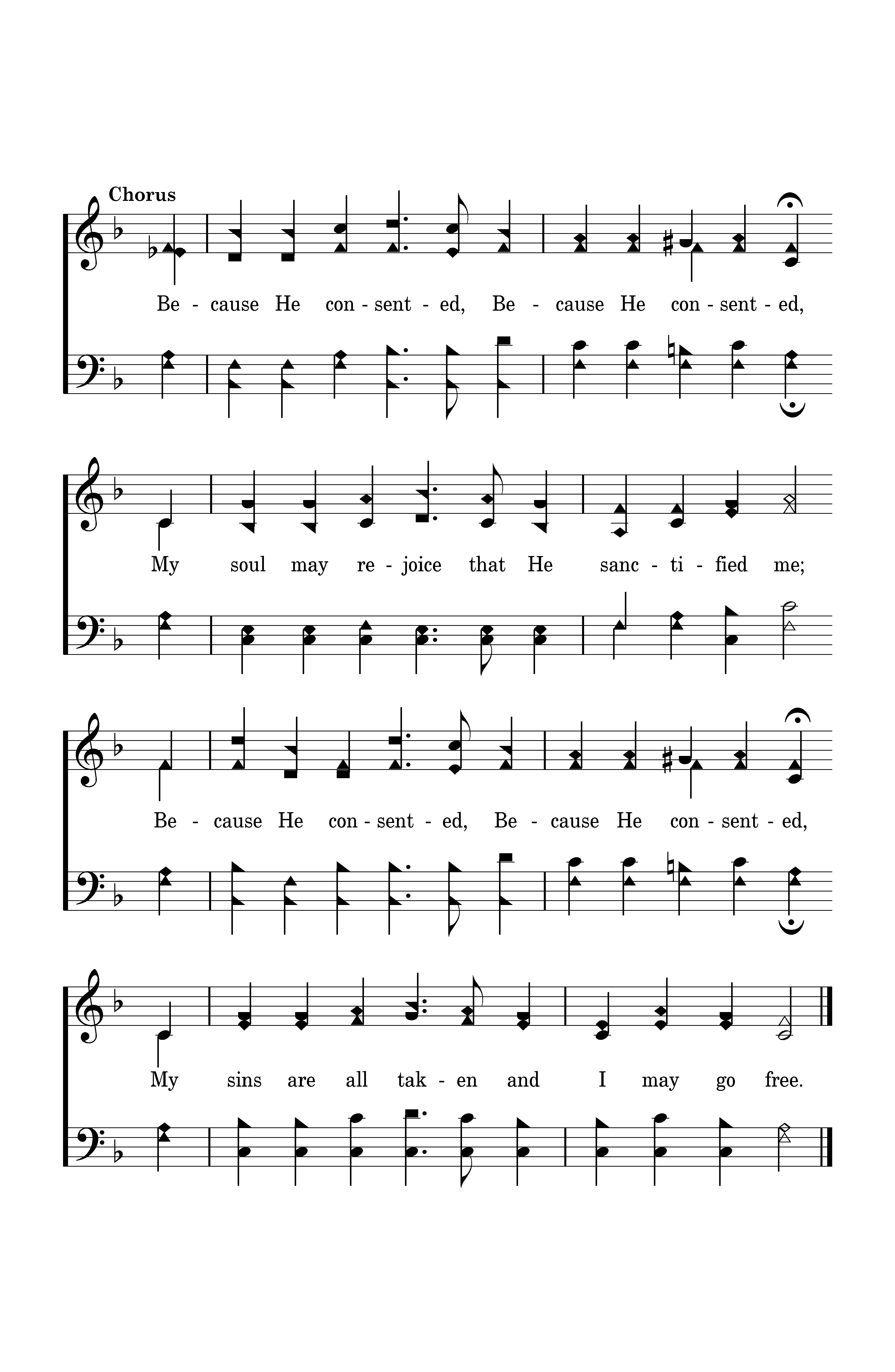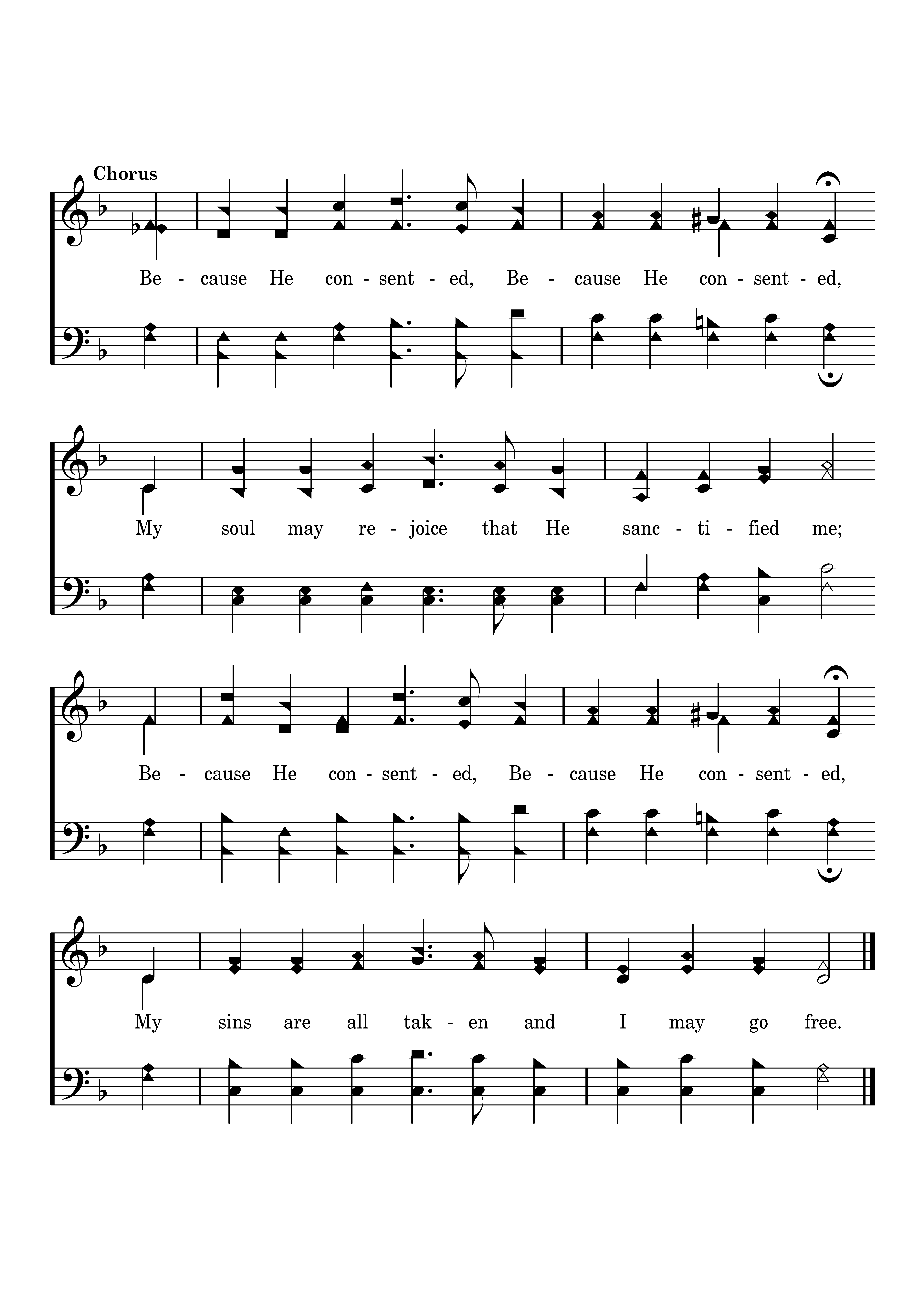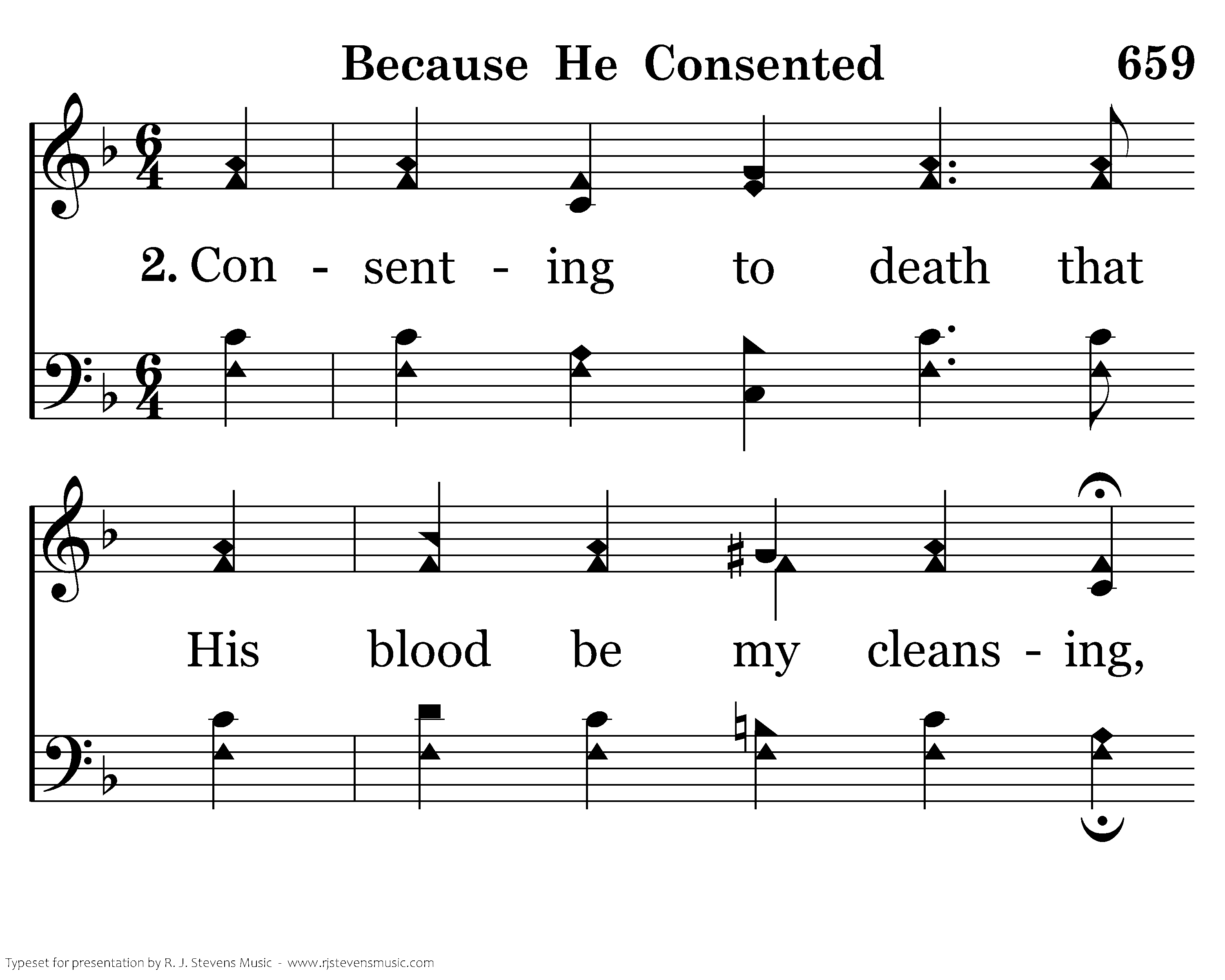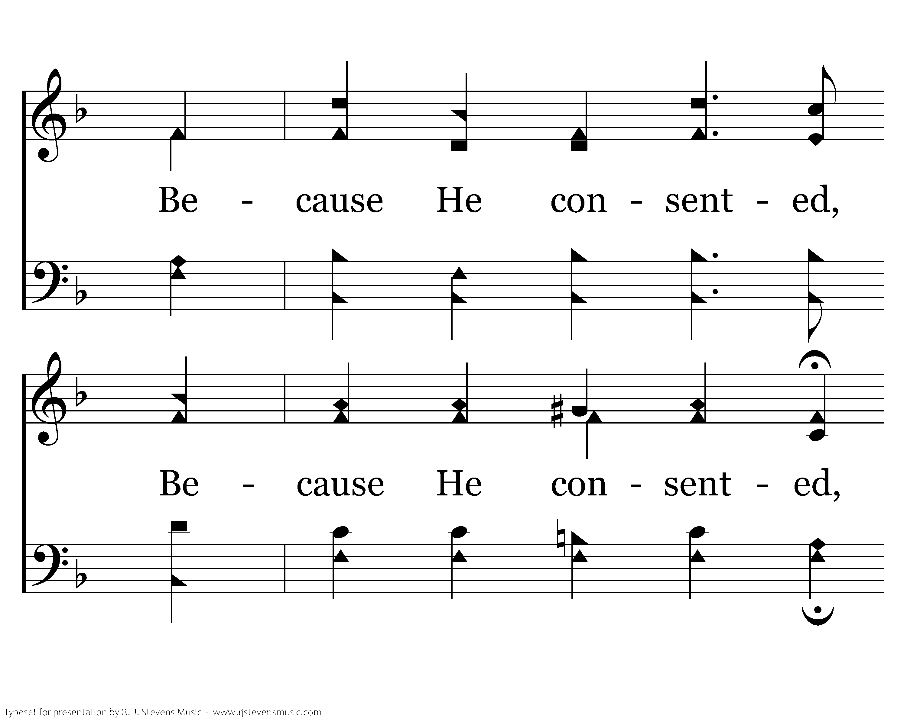 Because He consented, Bcause He consented, My soul may rejoice that He sanctified me; Because He consented, Because He consented, My sins are all taken and I may go free.