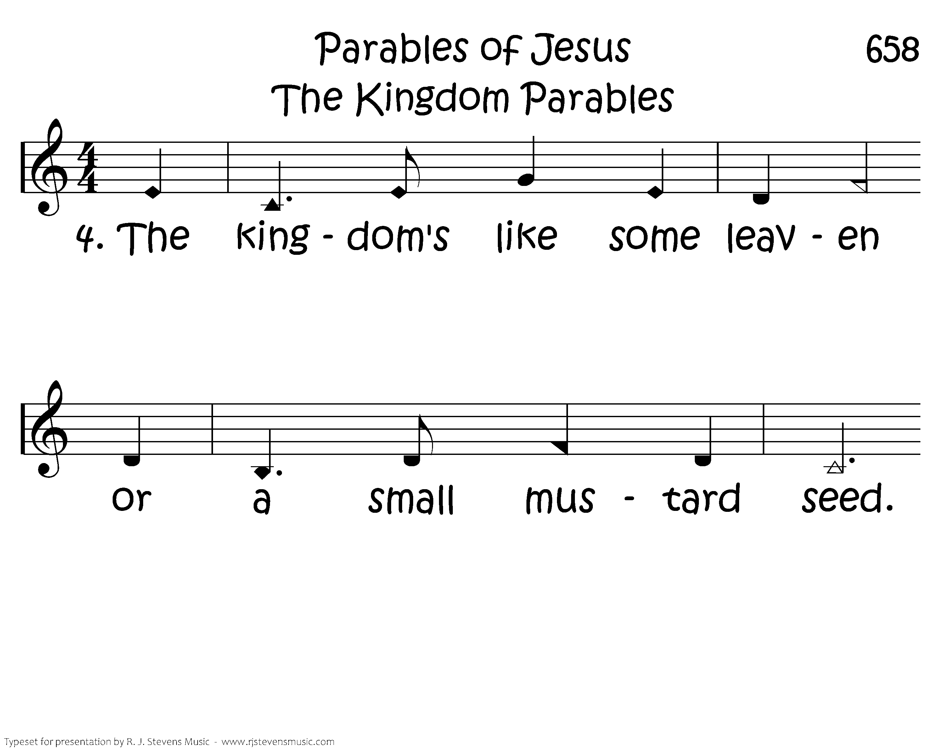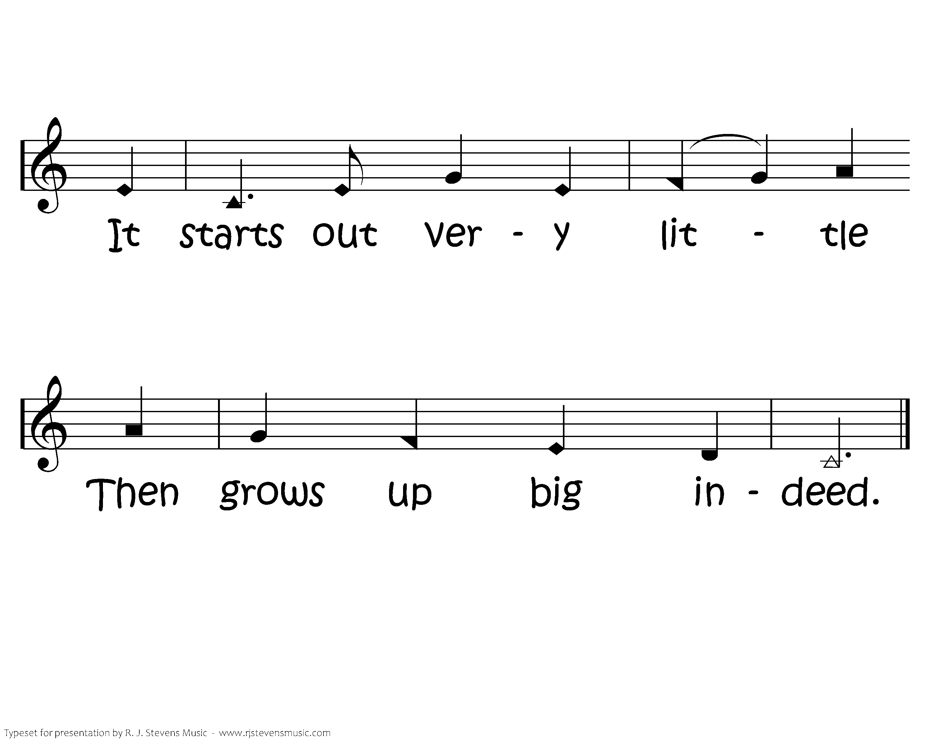 The kingdom's like some leaven or a small mustard seed. It starts out very little Then grows up big indeed.