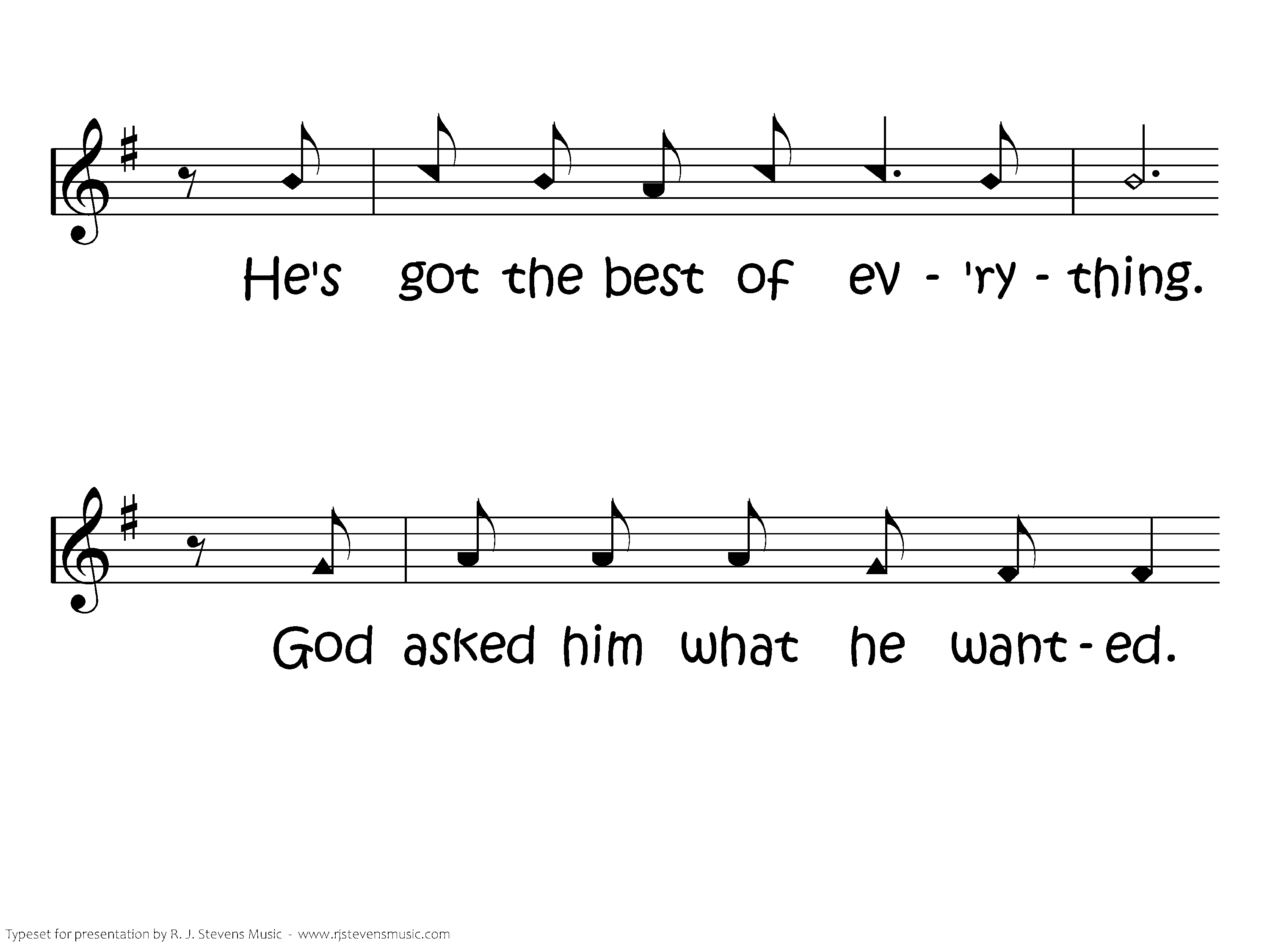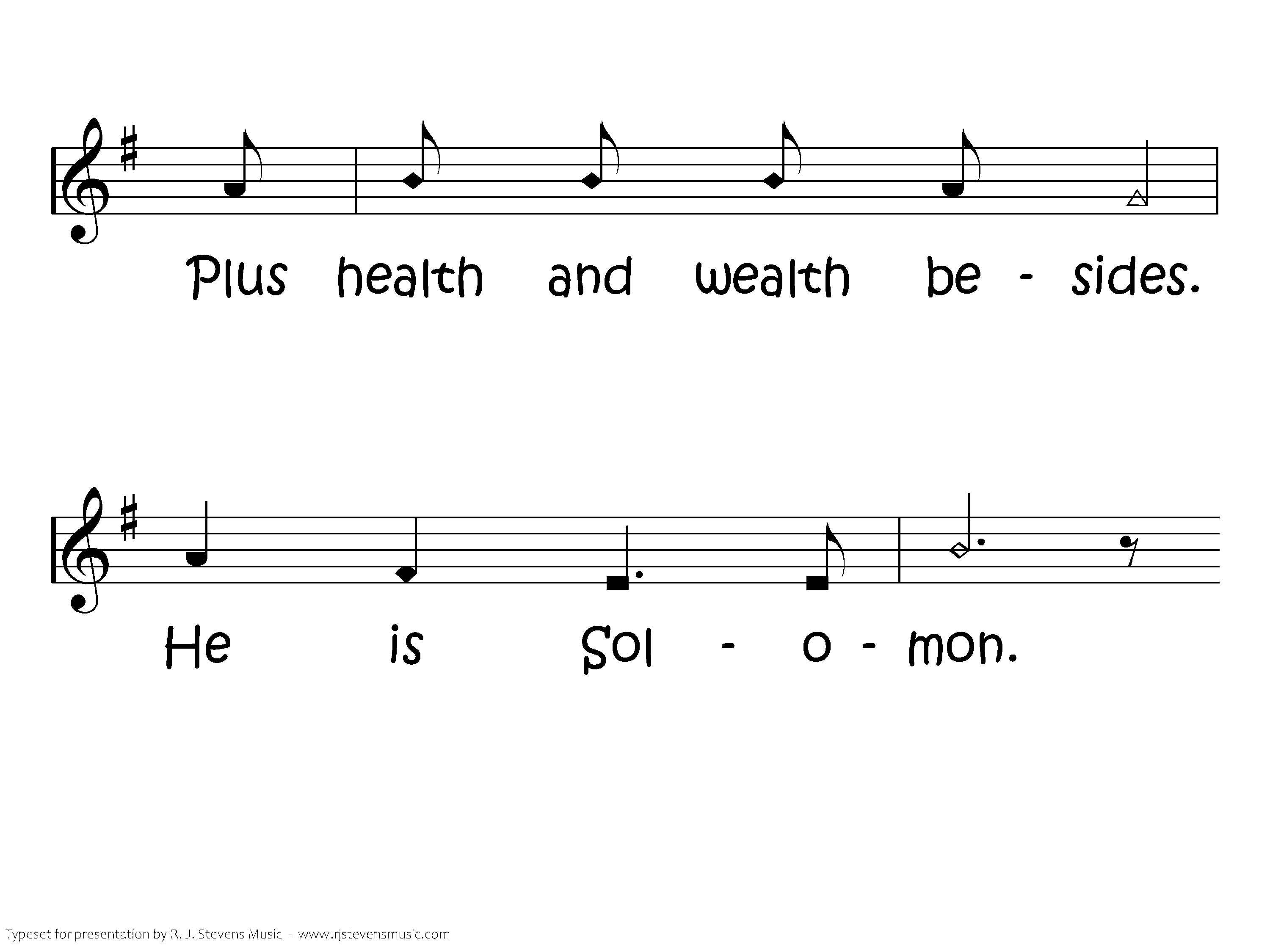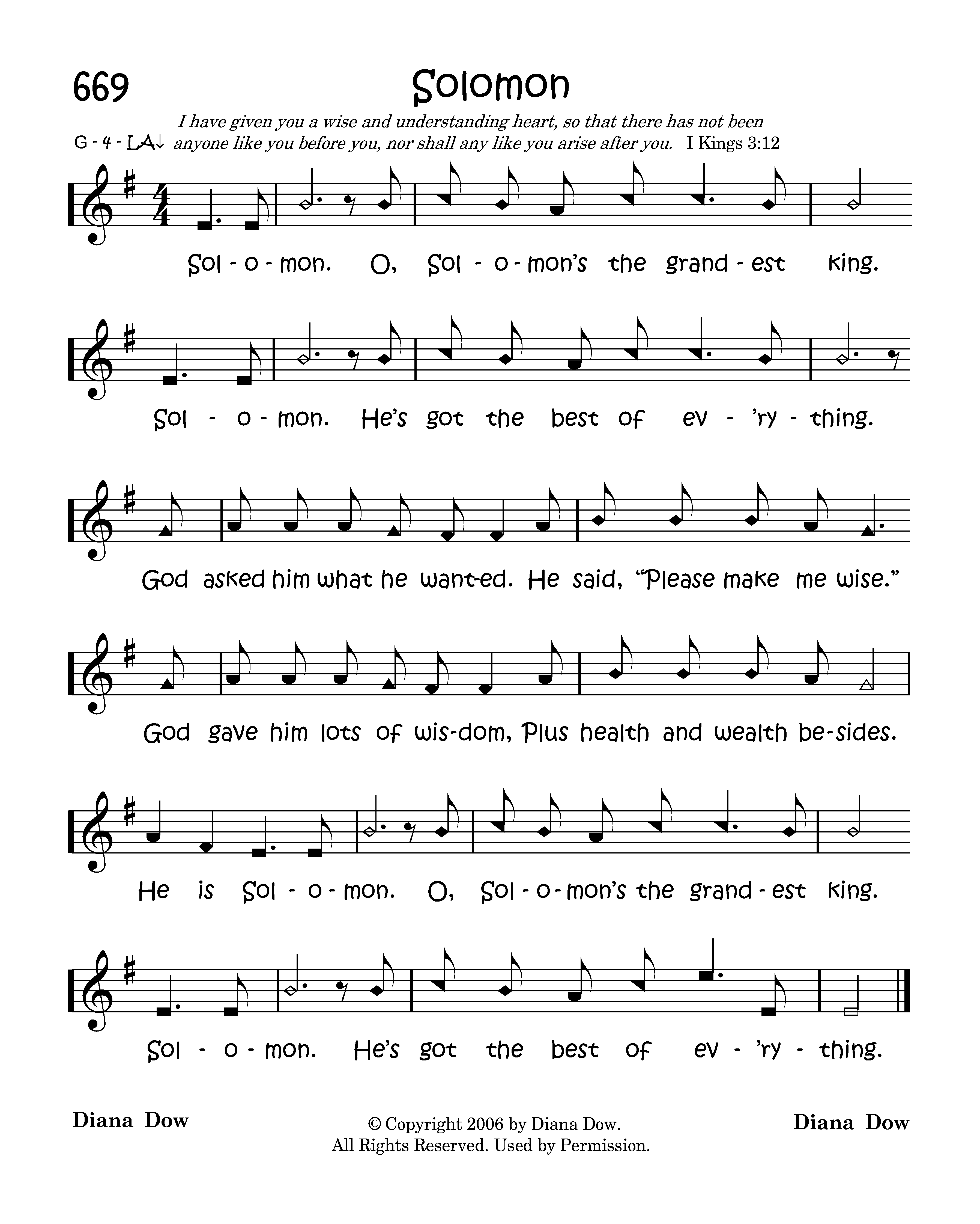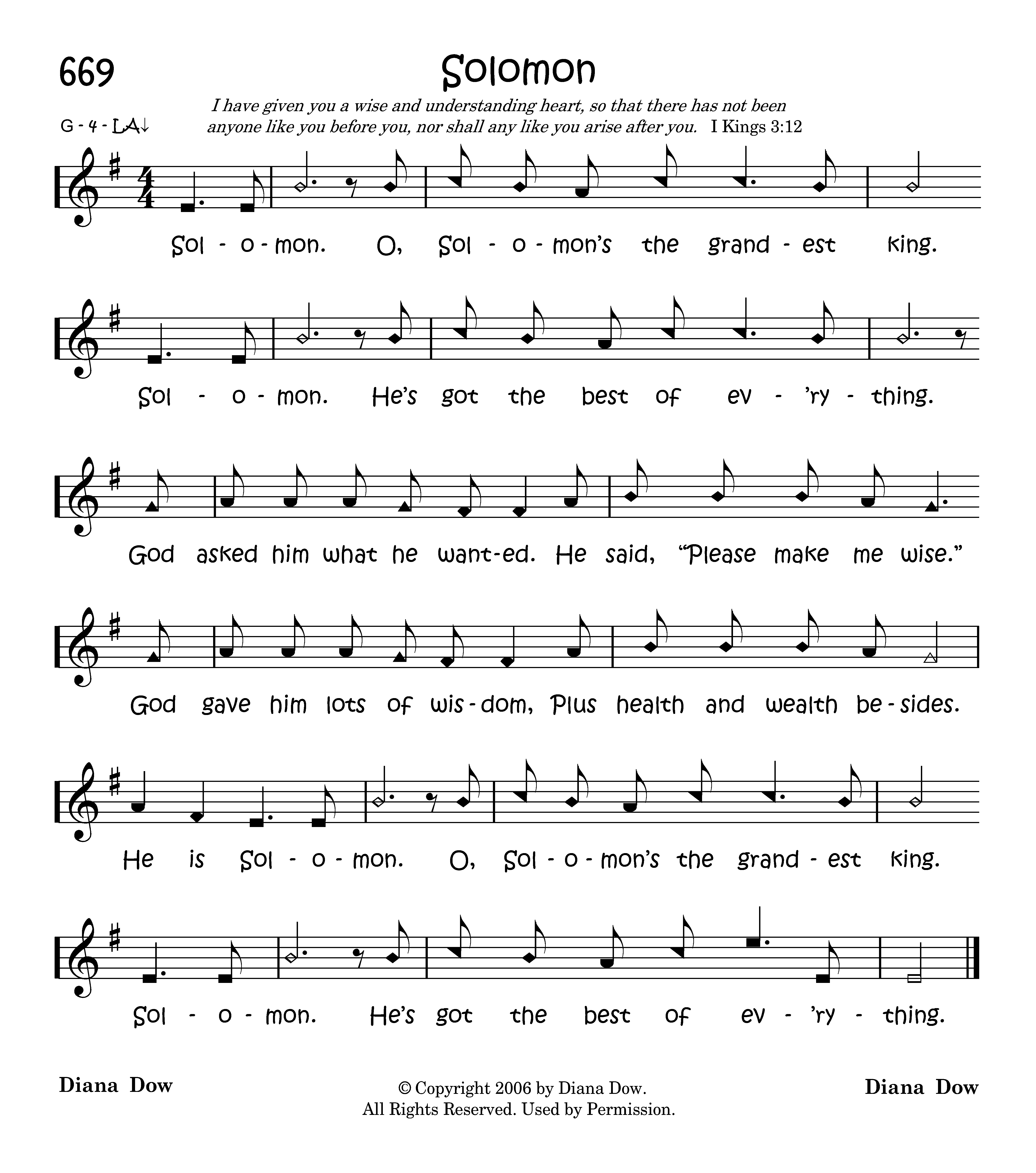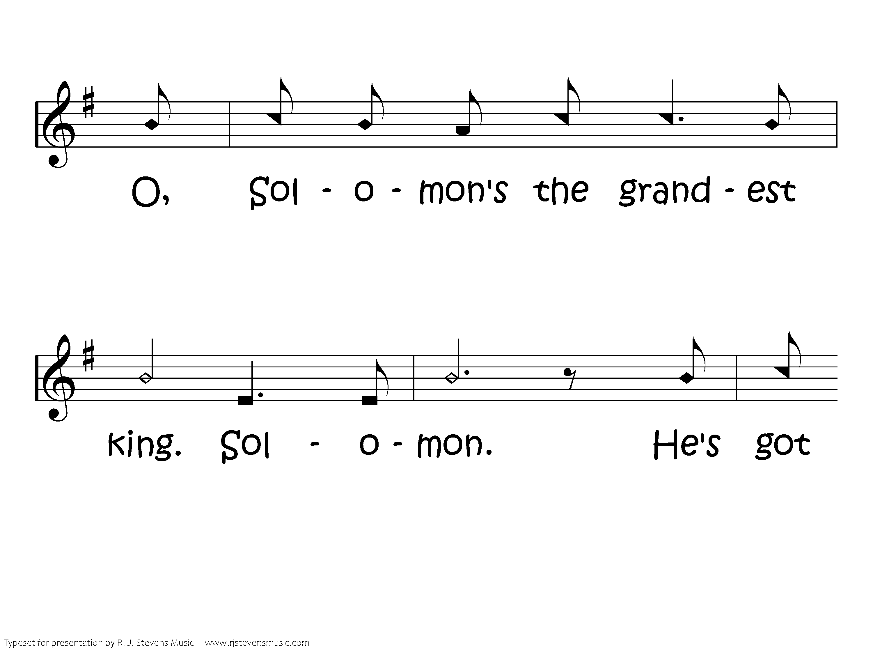Solomon. O, Solomon's the grandest king. Solomon. He's got the best of ev'rything. God asked him what he wanted. He said, "Please make me wise." God gave him lots of wisdom, Plus health and wealth besides. He is Solomon. O, Solomon's the grandest king. Solomon. He's got thebest of ev'rything.