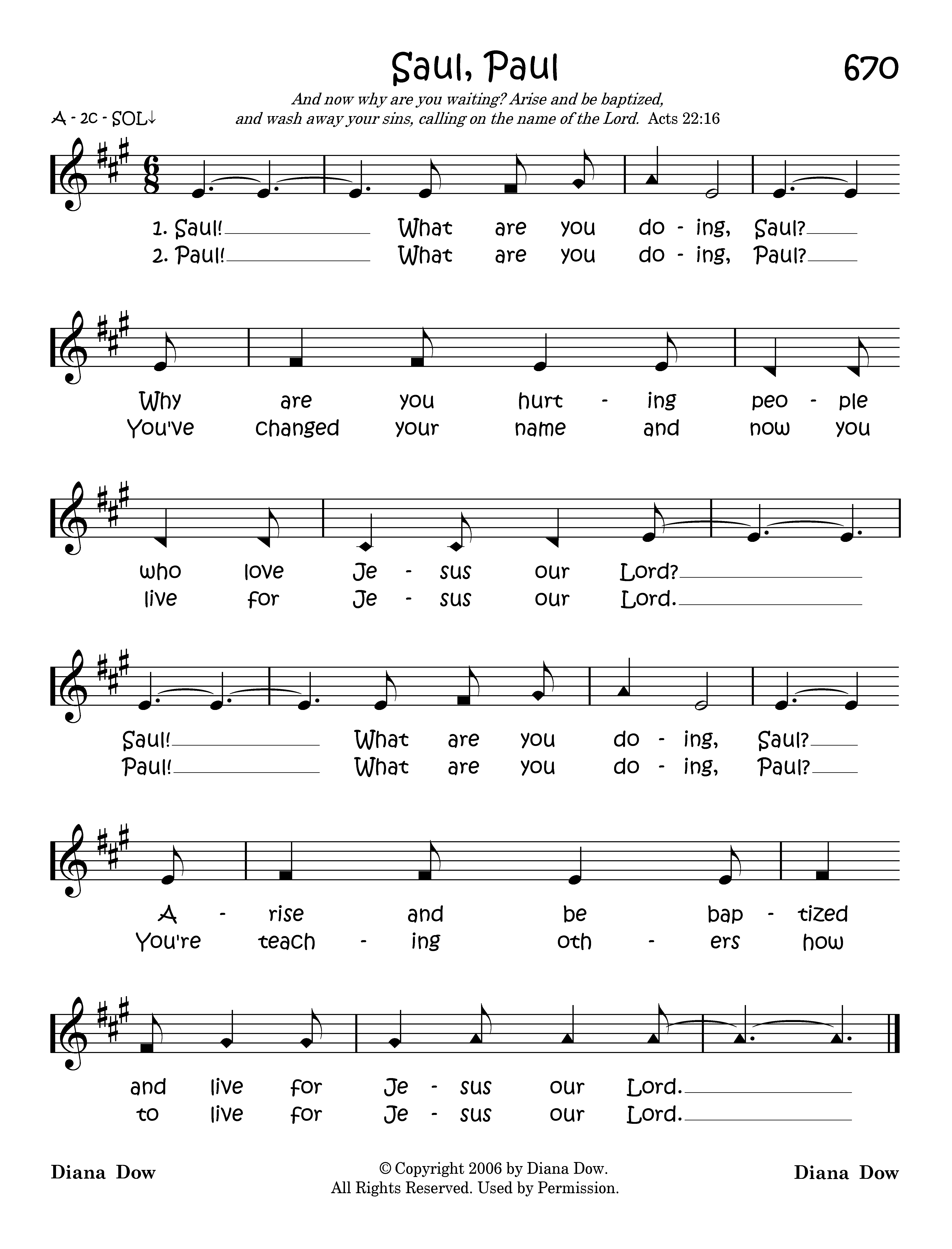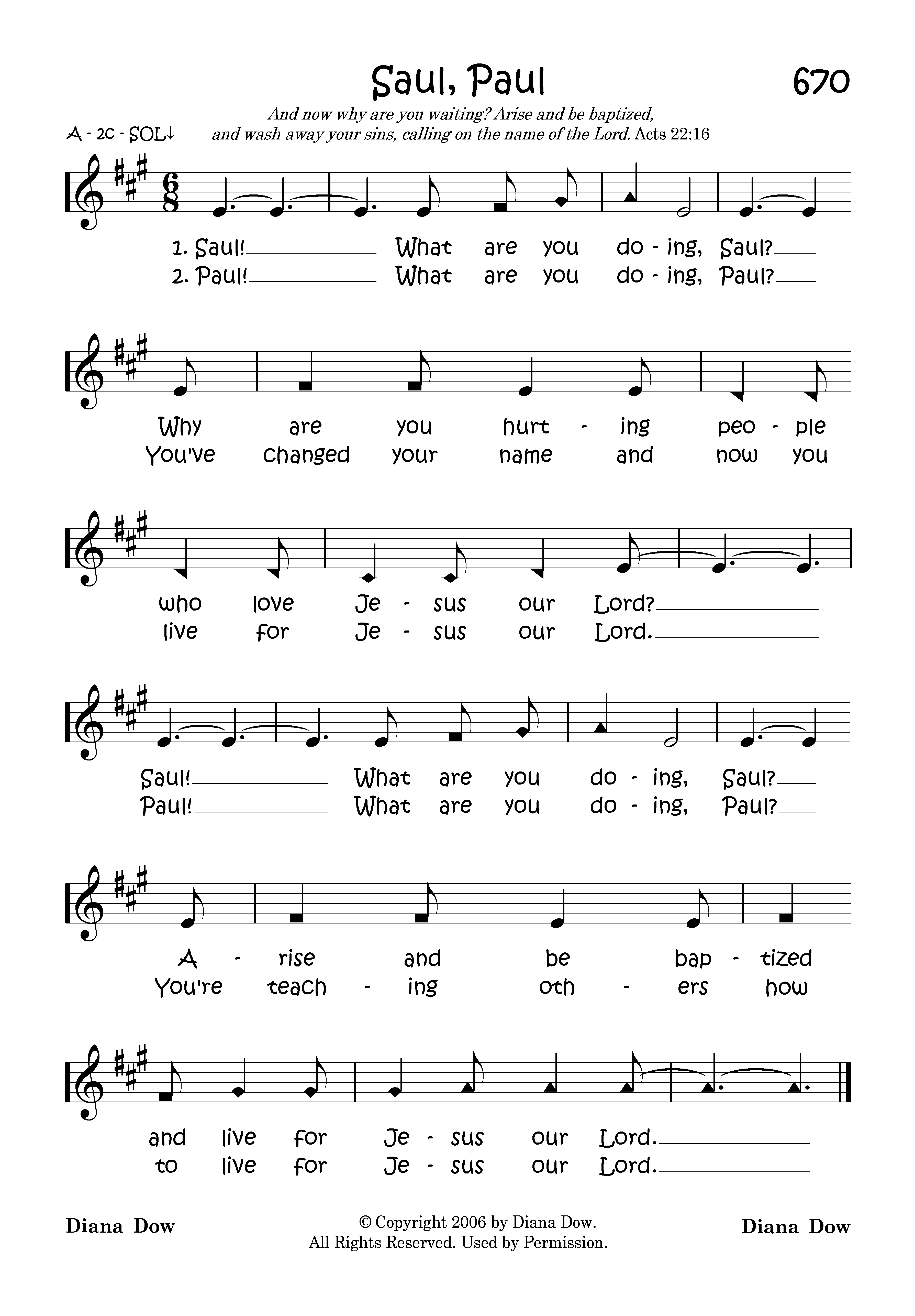 Saul! What are you doing, Saul? Why are you hurting people who love Jesus our Lord? Saul! What are you doing, Saul? Arise and be baptized and live for Jesus our Lord.