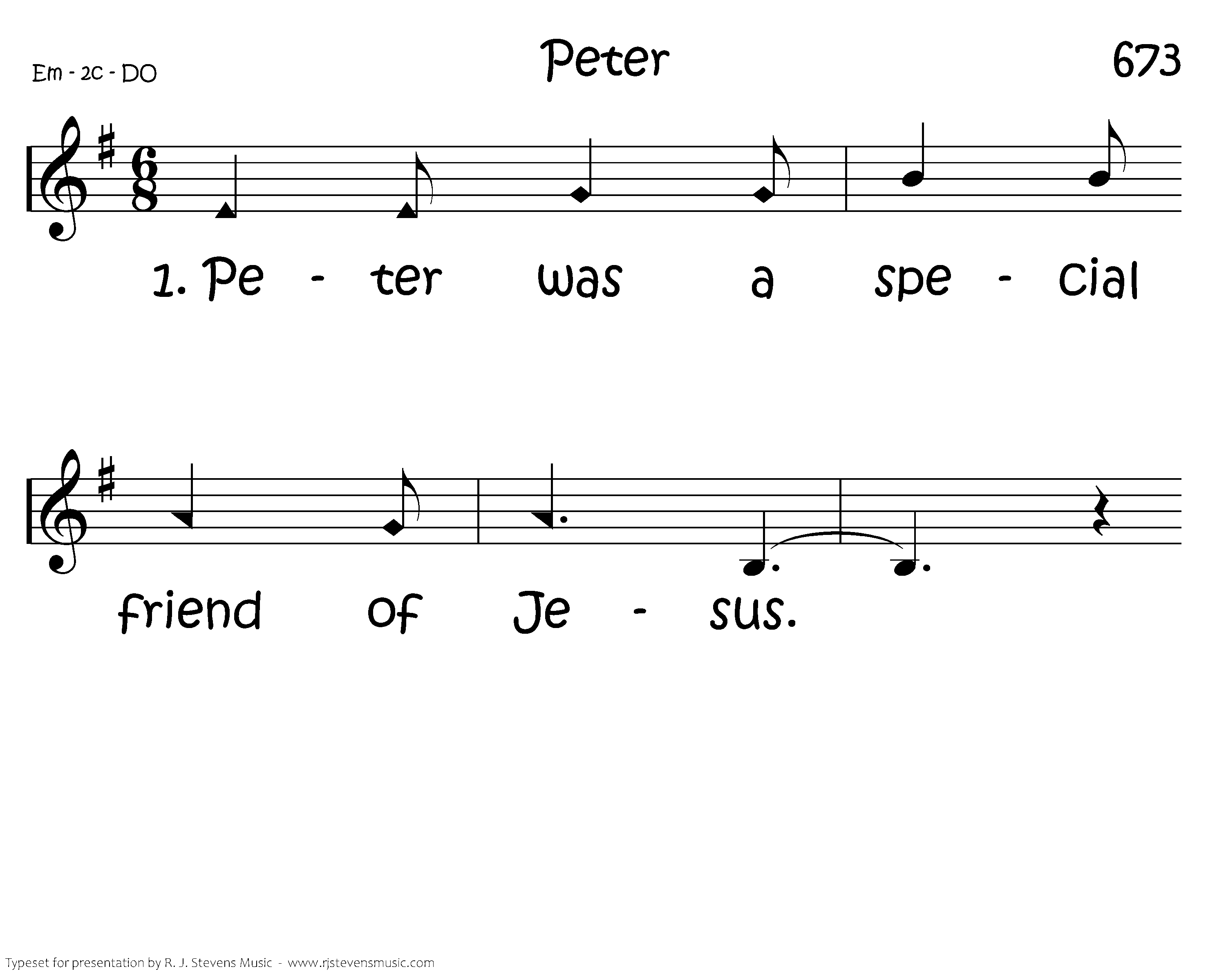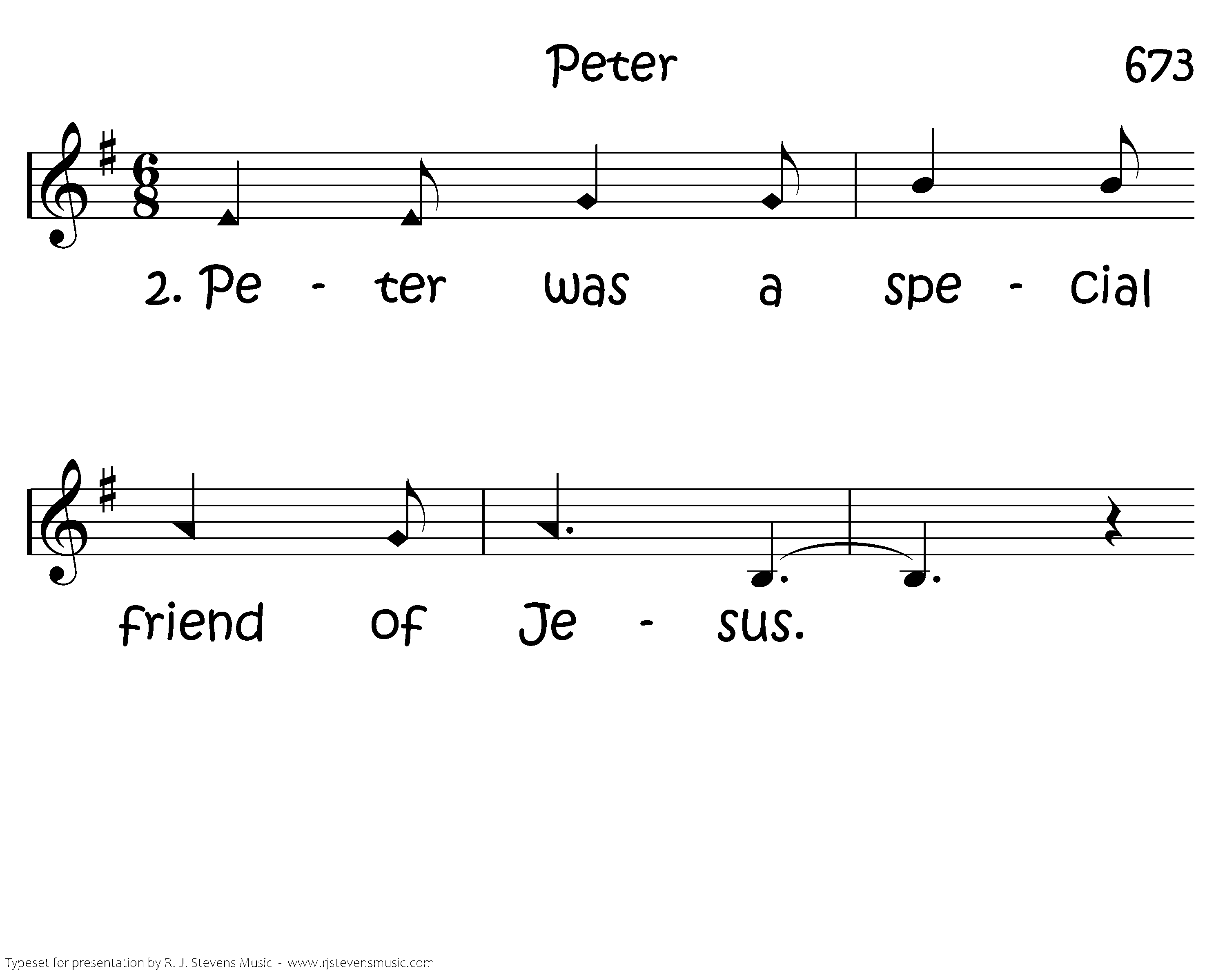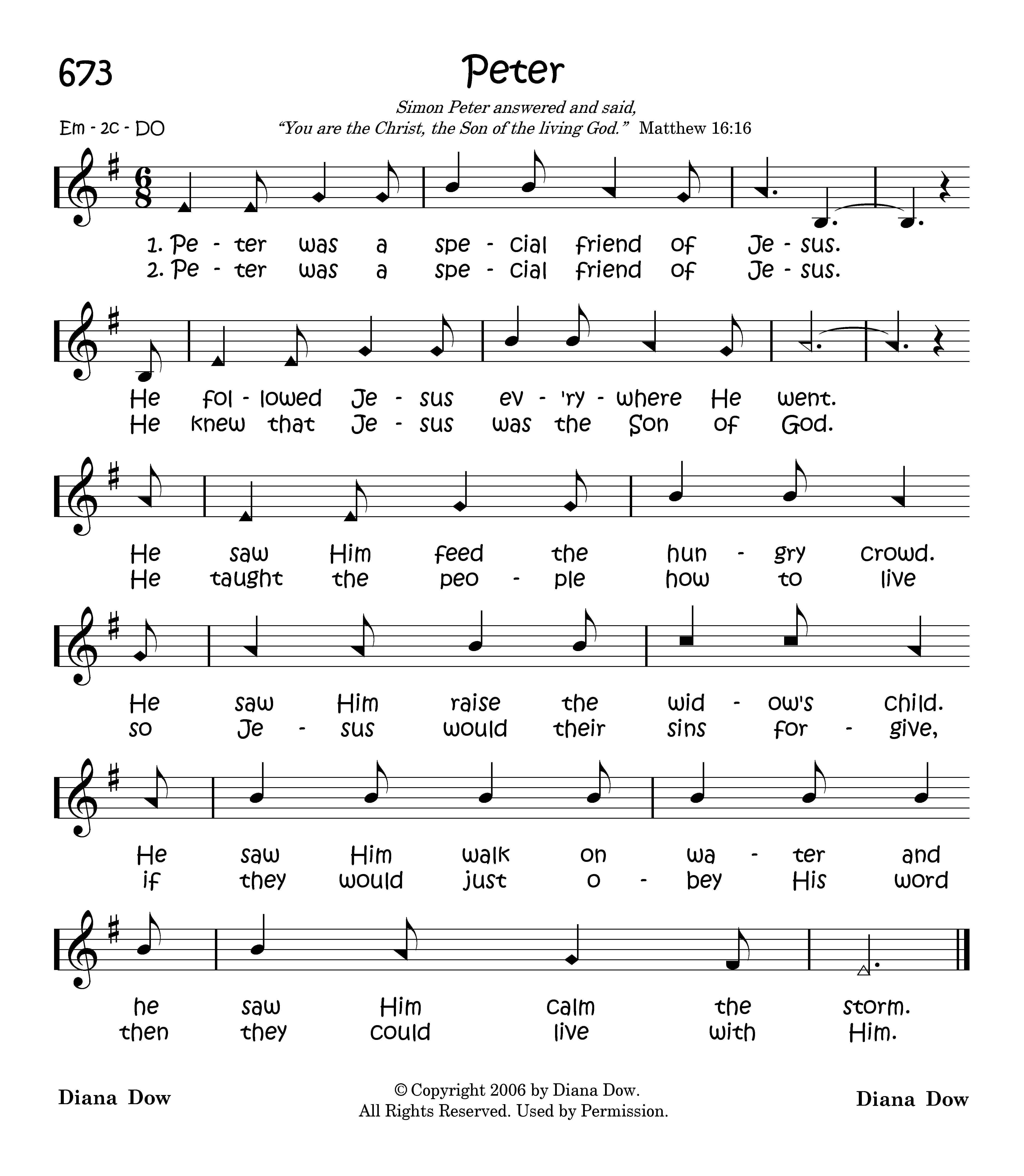 Peter was a special friend of Jesus. He followed Jesus ev'rywhere He went. He saw Him feed the hungry crowd. He saw Him raise the widow's child. He saw Him walk on water and he saw Him calm the storm.