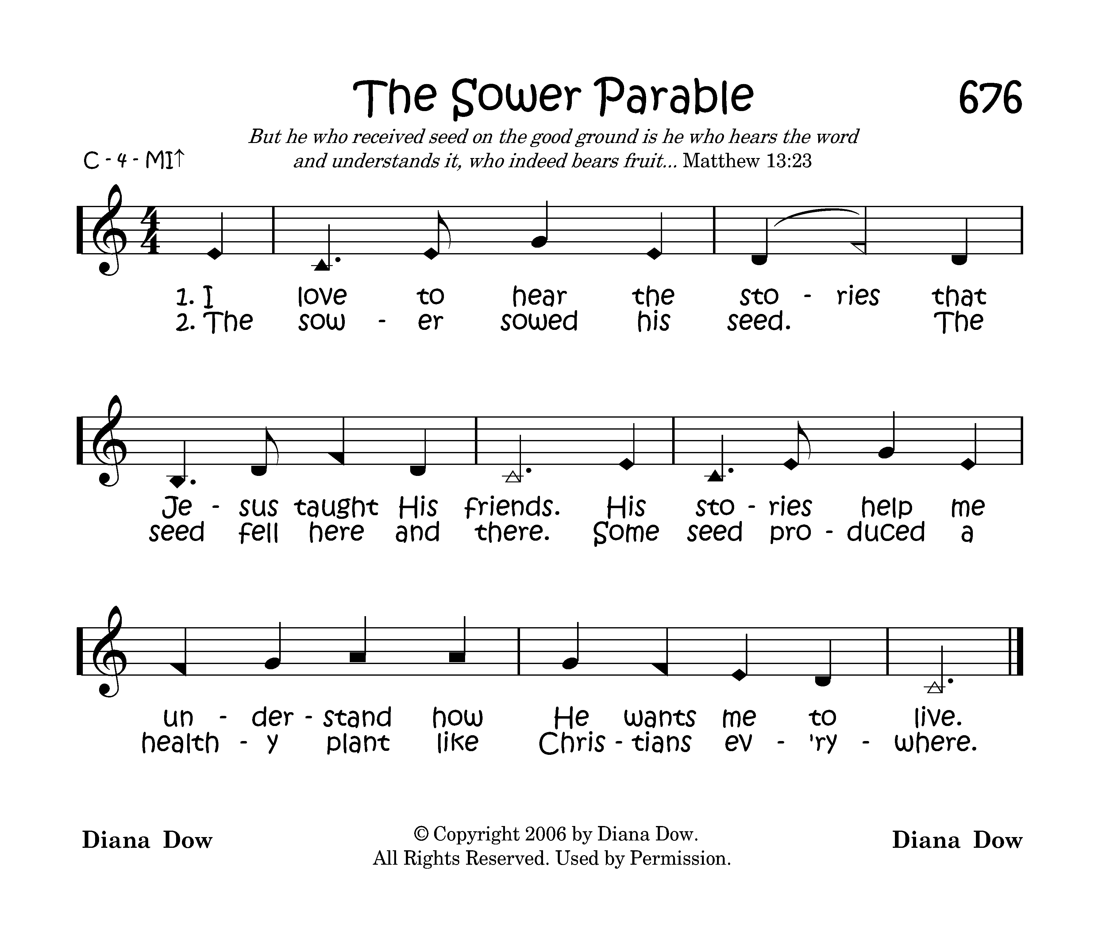 The sower sowed his seed. The seed fell there and there. Some seed produced a healthy plant like Christians ev'rywhere.