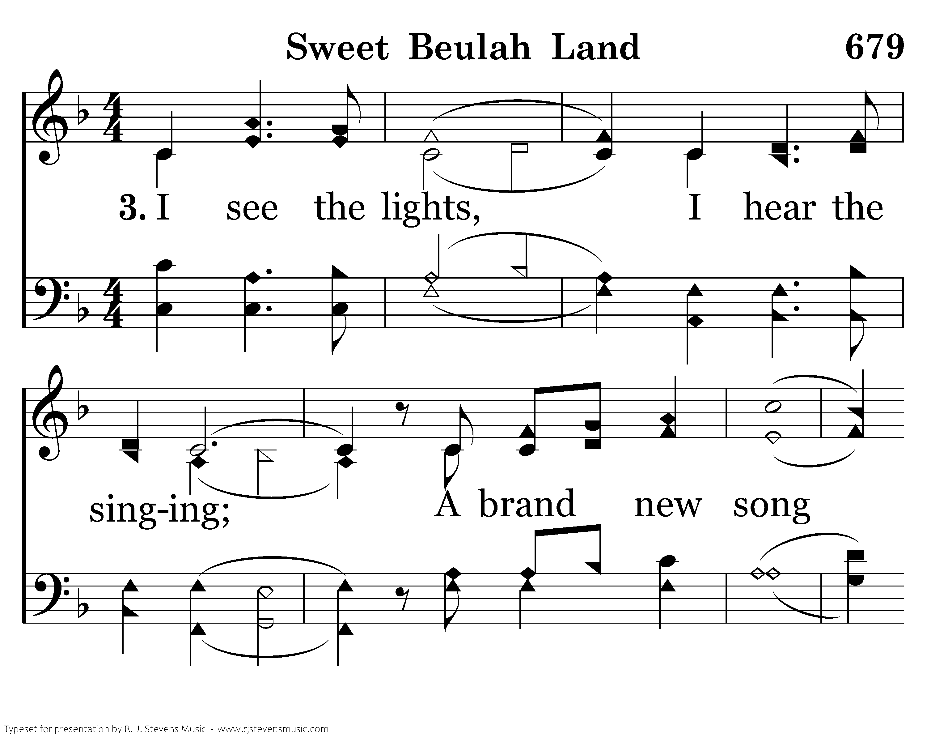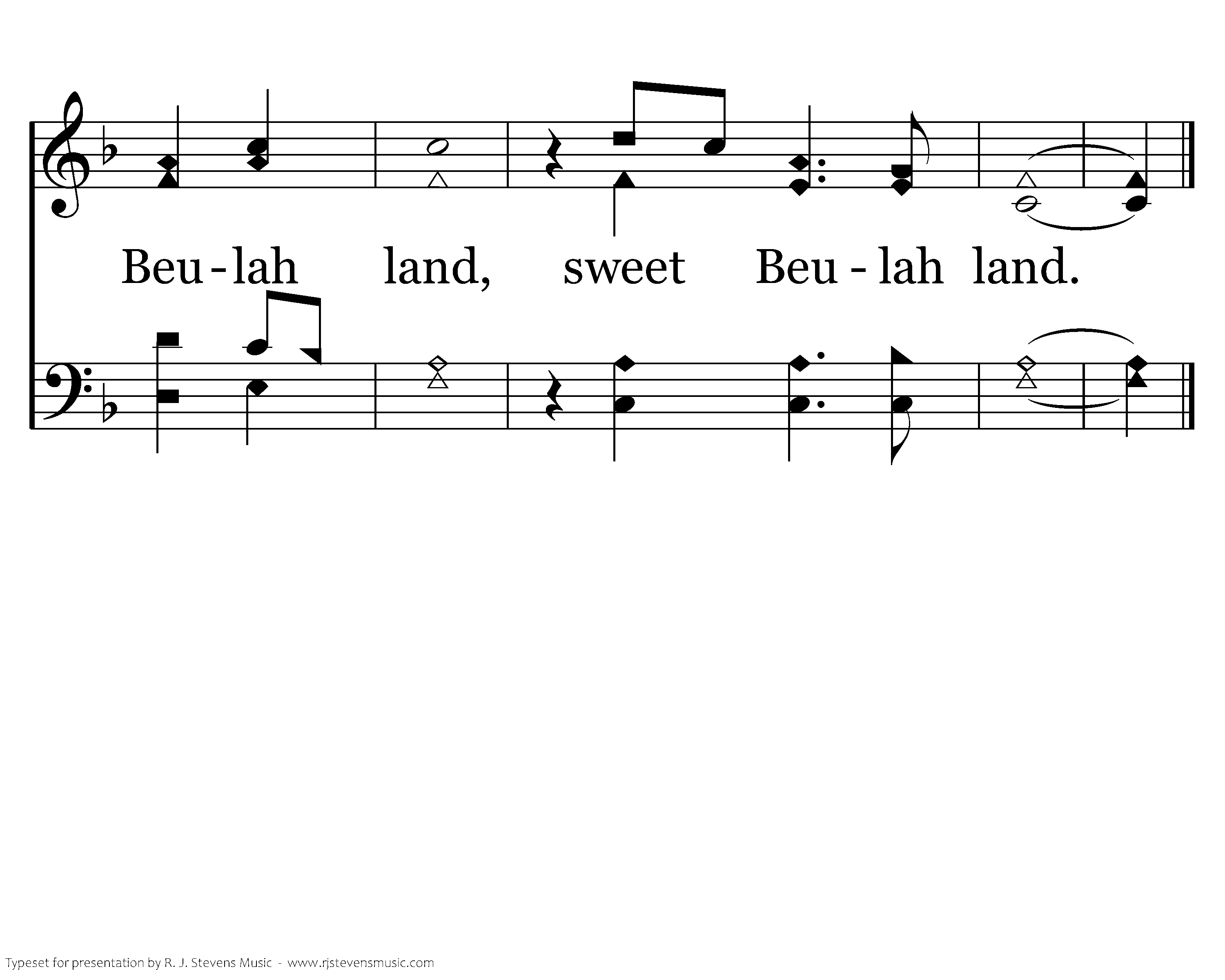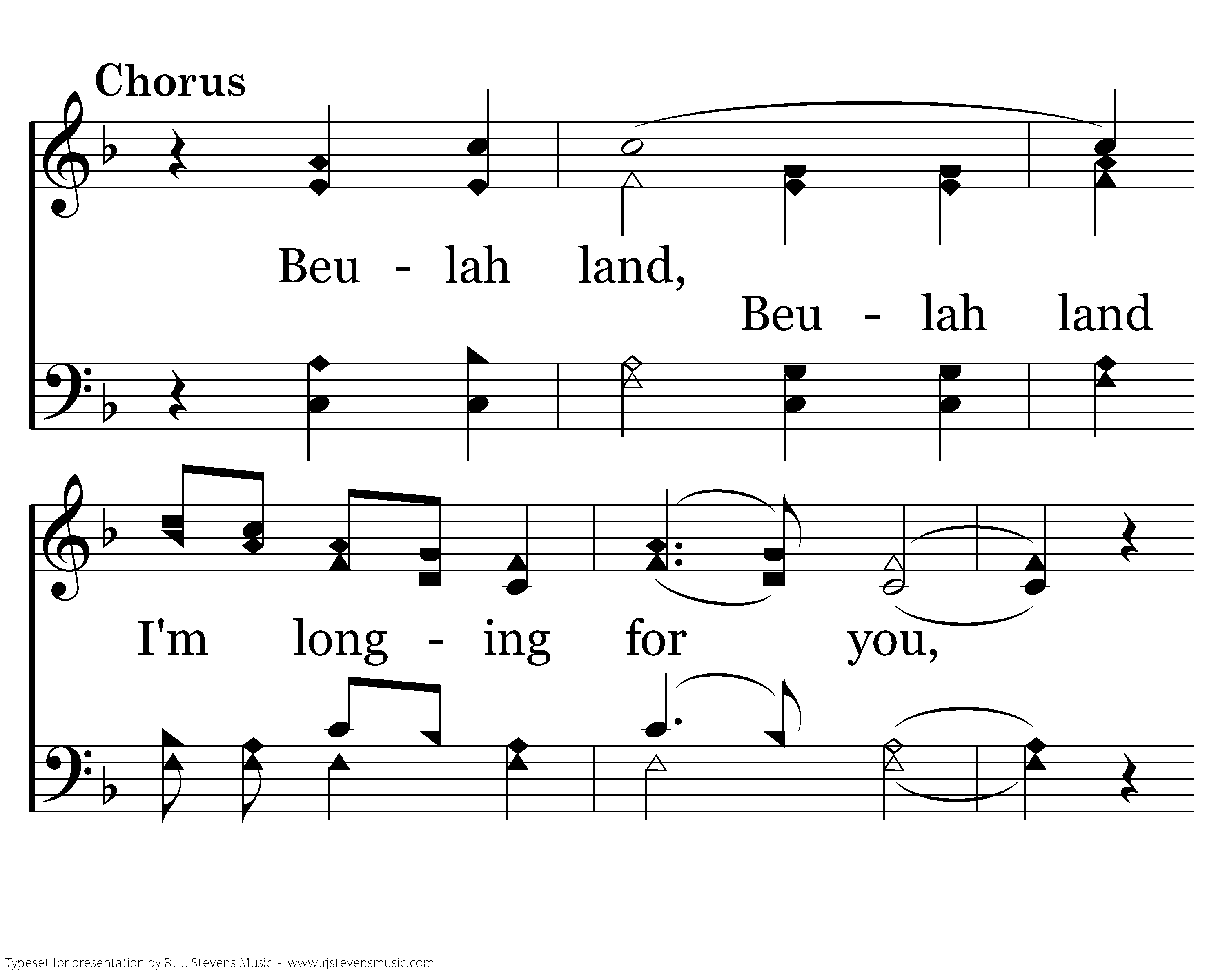 Beulah land, I'm longing for you, and someday on Thee I'll stand; Where my home shall be eternal; Beulah land, sweet Beulah land.