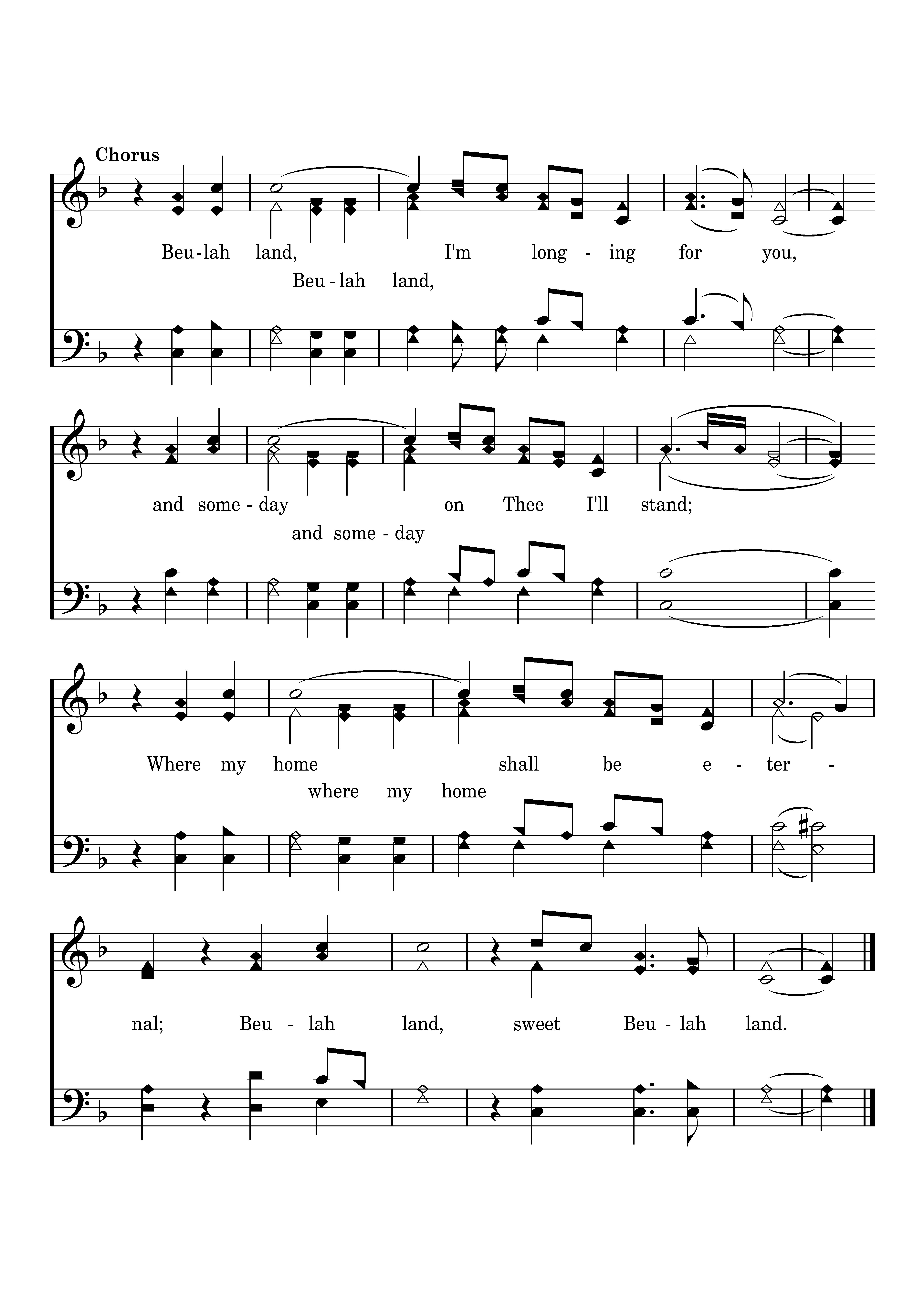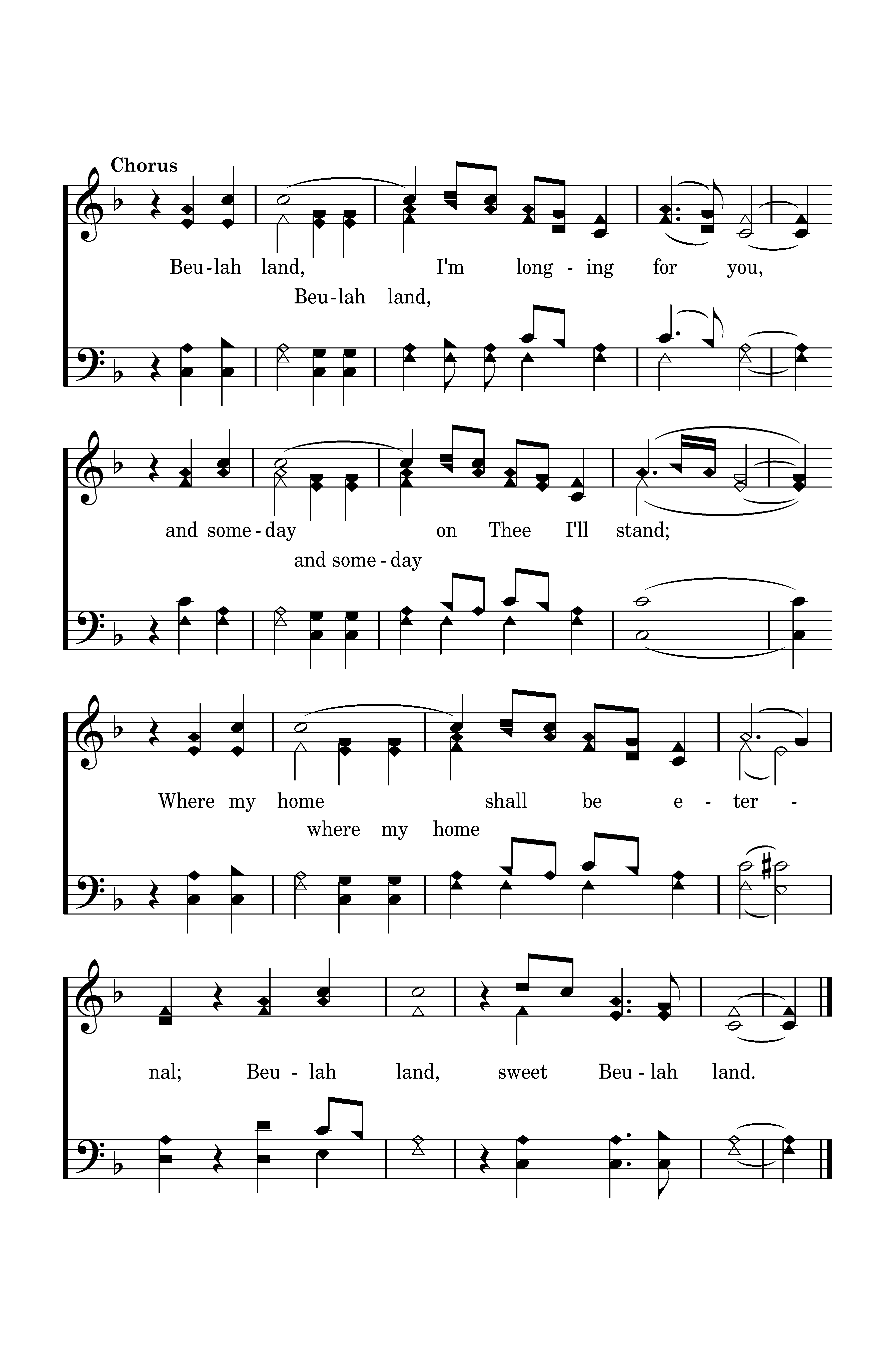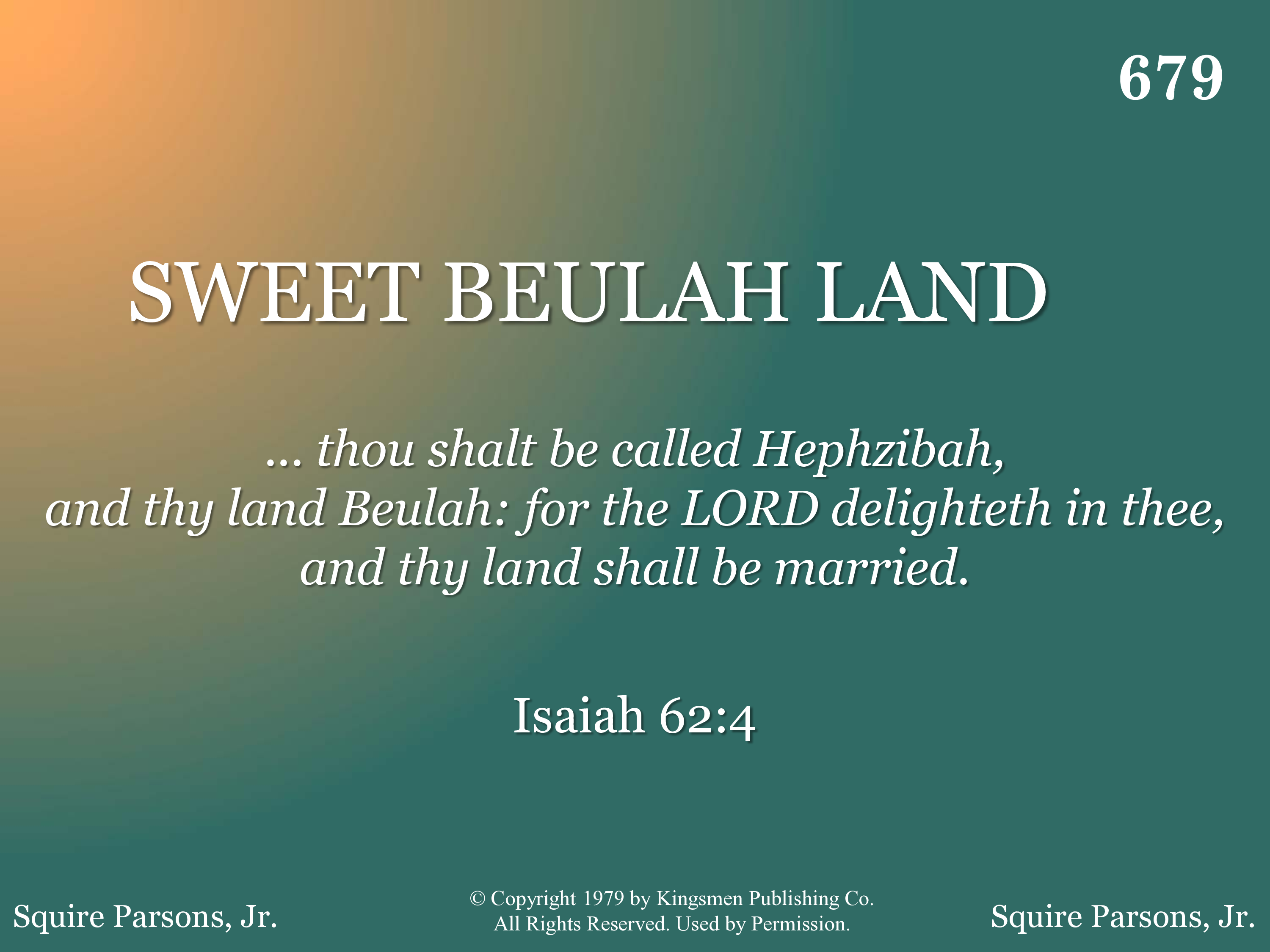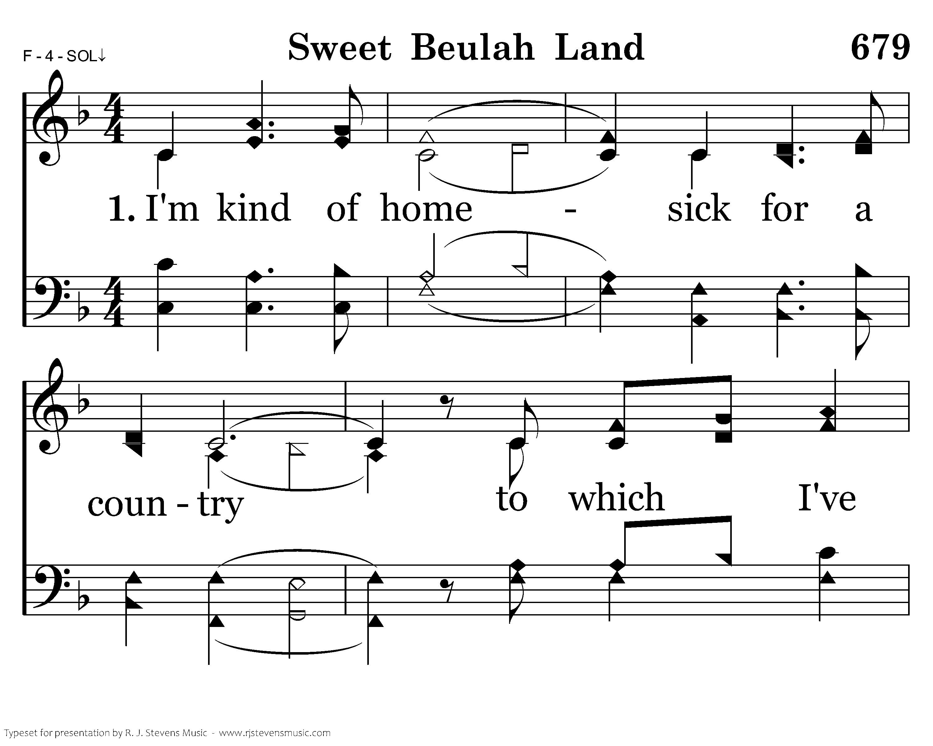 Beulah land, I'm longing for you, and someday on Thee I'll stand; Where my home shall be eternal; Beulah land, sweet Beulah land.