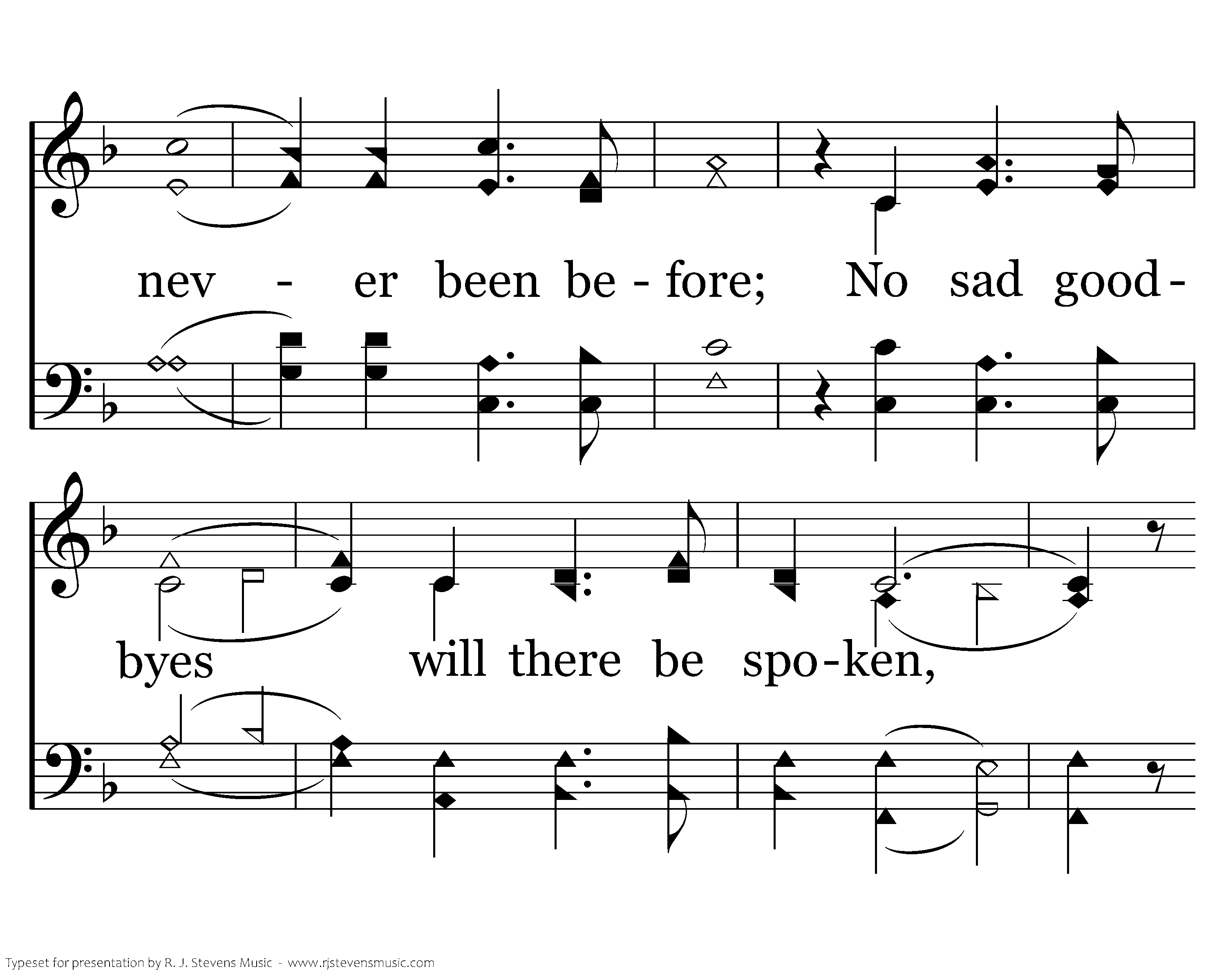 I see the lights, I hear the singing; A brand new song of joy divine. My soul rejoices just in knowing that soon these pleasures will be mine.