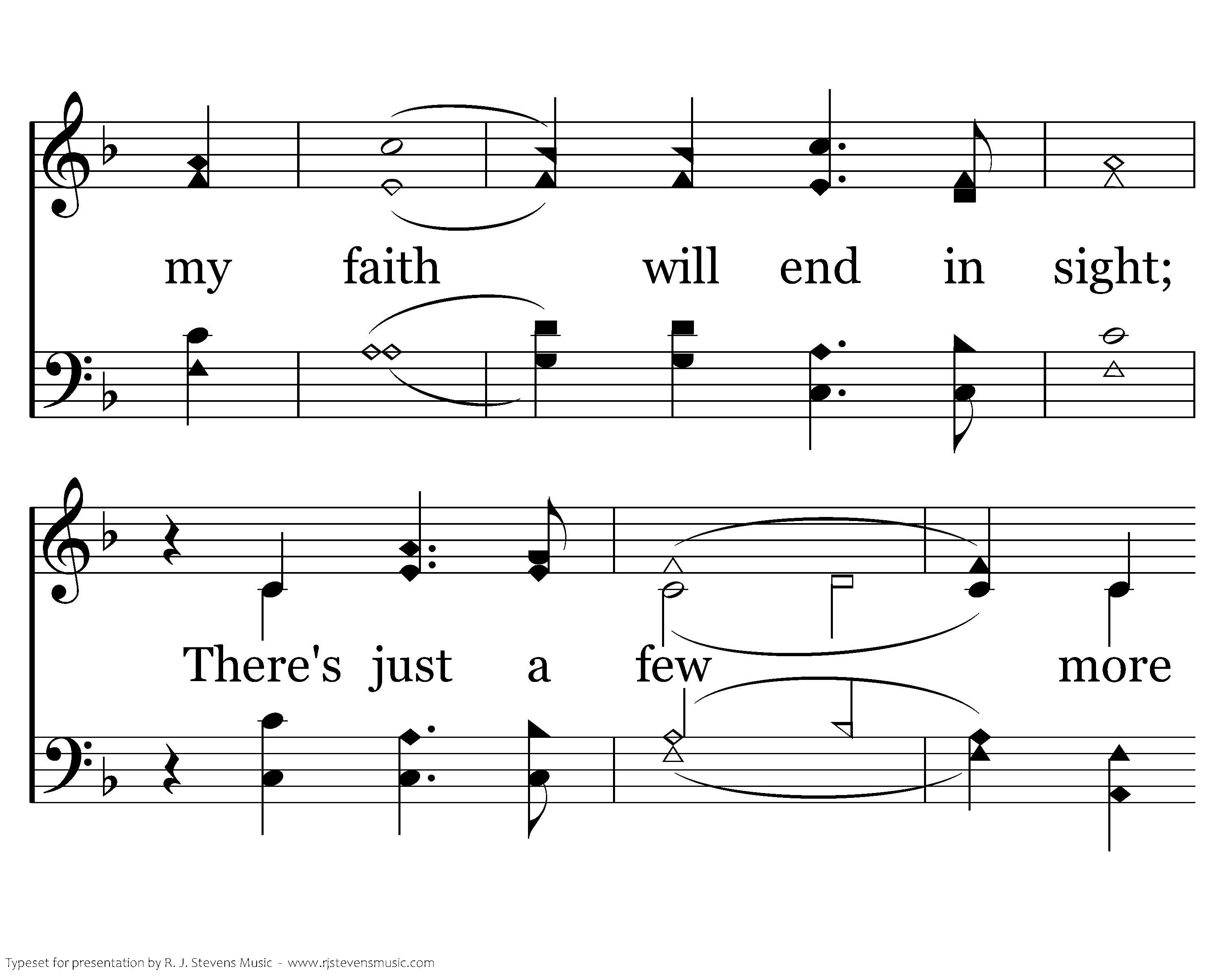 I'm looking now across the river, where my faith will end in sight; There's just a few more days to labor, then I will take my heav'nly flight.