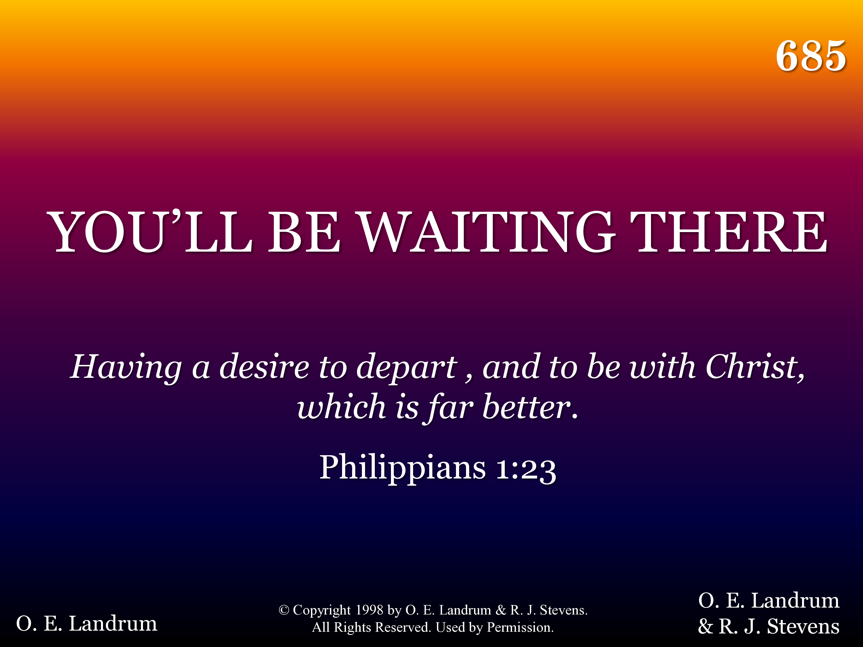 - © Copyright 1999 by O. E. Landrum & R. J. Stevens. All Rights Reserved. Used by Permission.