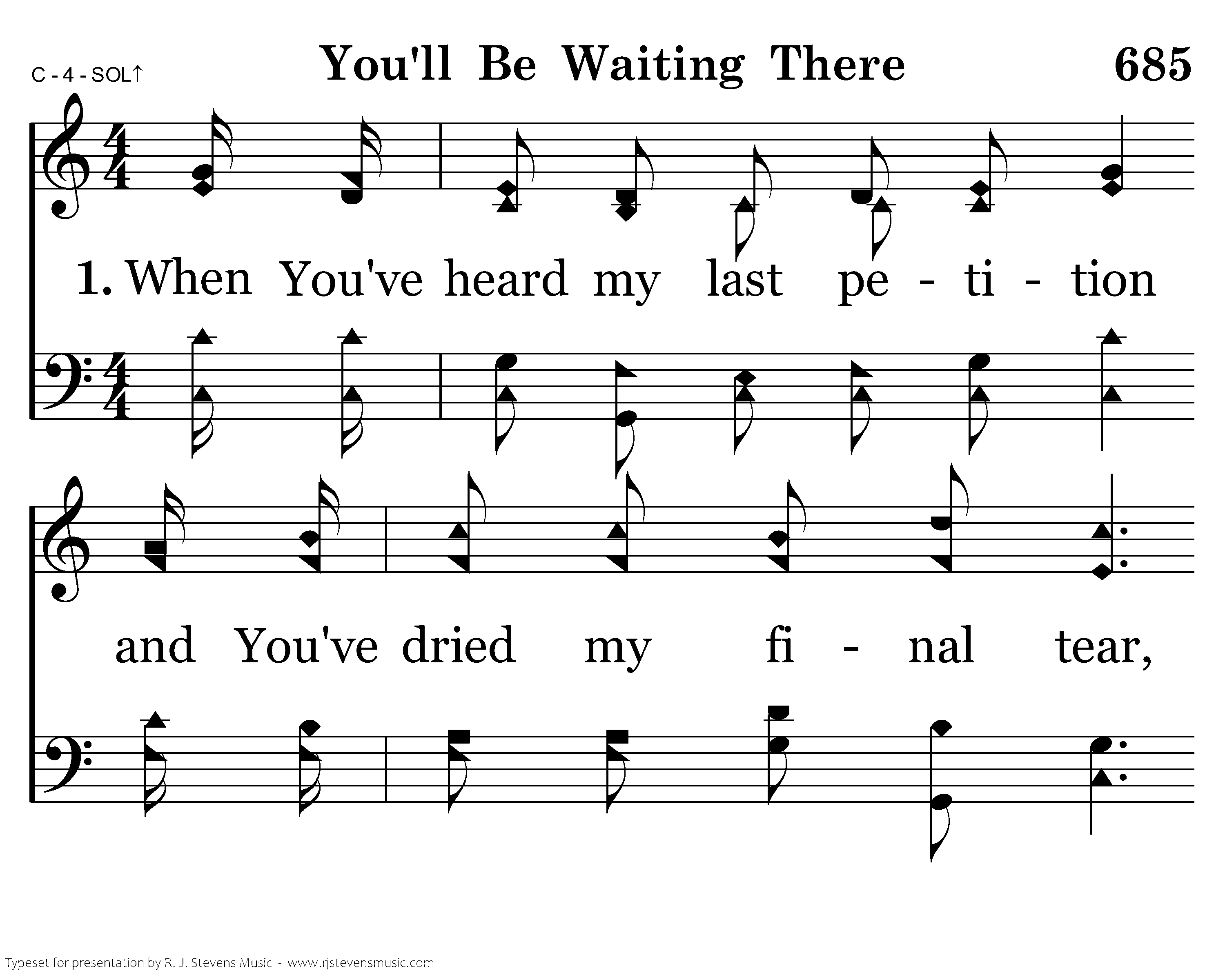 You'll be there to see me passing when I go beyond this shore; When my feet shall touch the waters I'll be with Thee evermore. Just to sing eternal praises, yonder where the saints shall be; Just beyond yon rushing river, You'll be waiting there for me.
