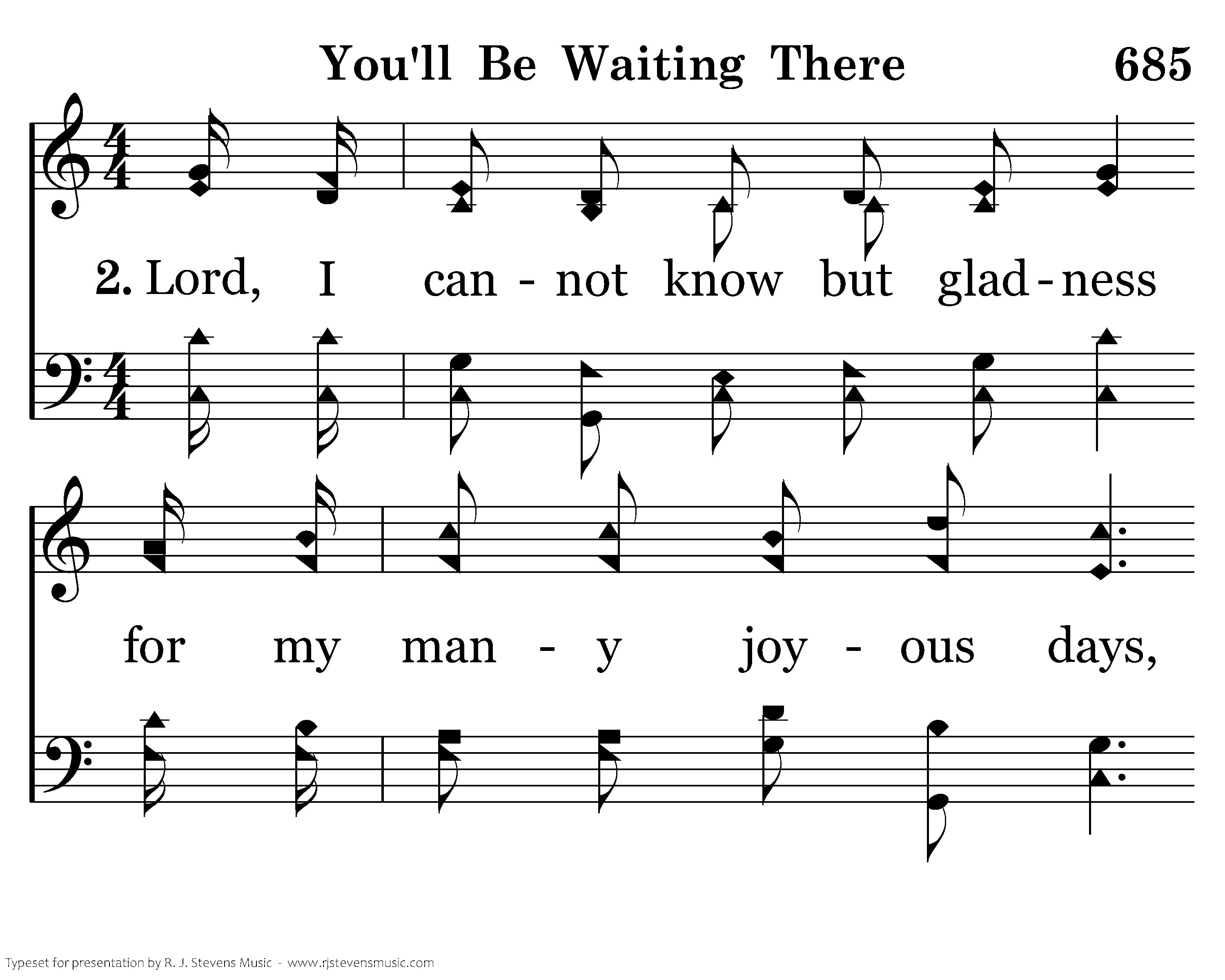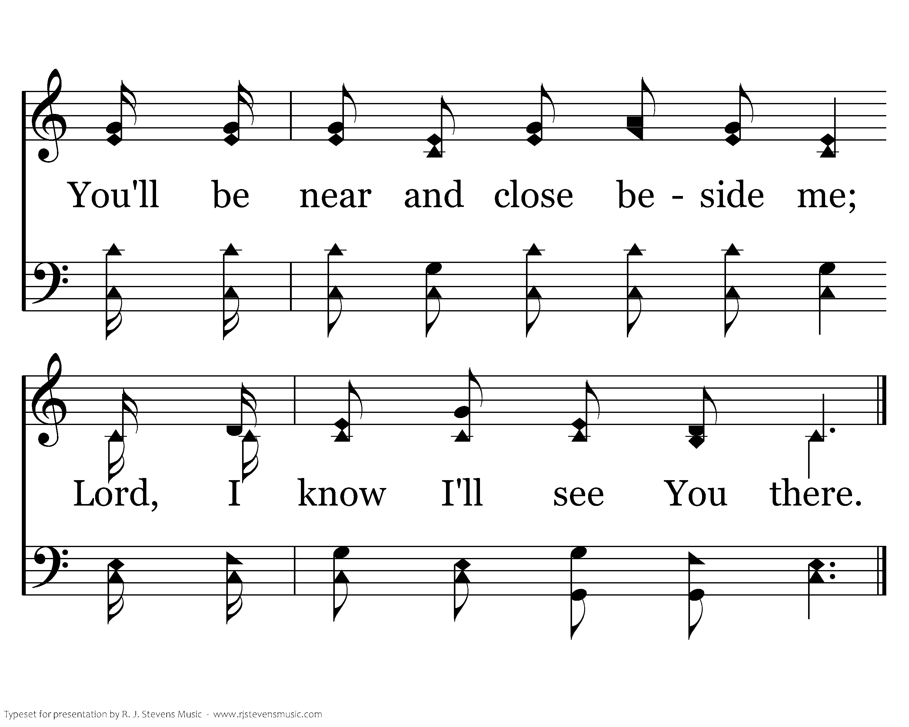 Lord, I cannot kow but gladness for my many joyous days, But such pleasantness is shaded by my hateful, sinful ways. When You've seen me last assemble, and You've heard my final prayer, You'll be near and close beside me; Lord, I know I'll see You there.