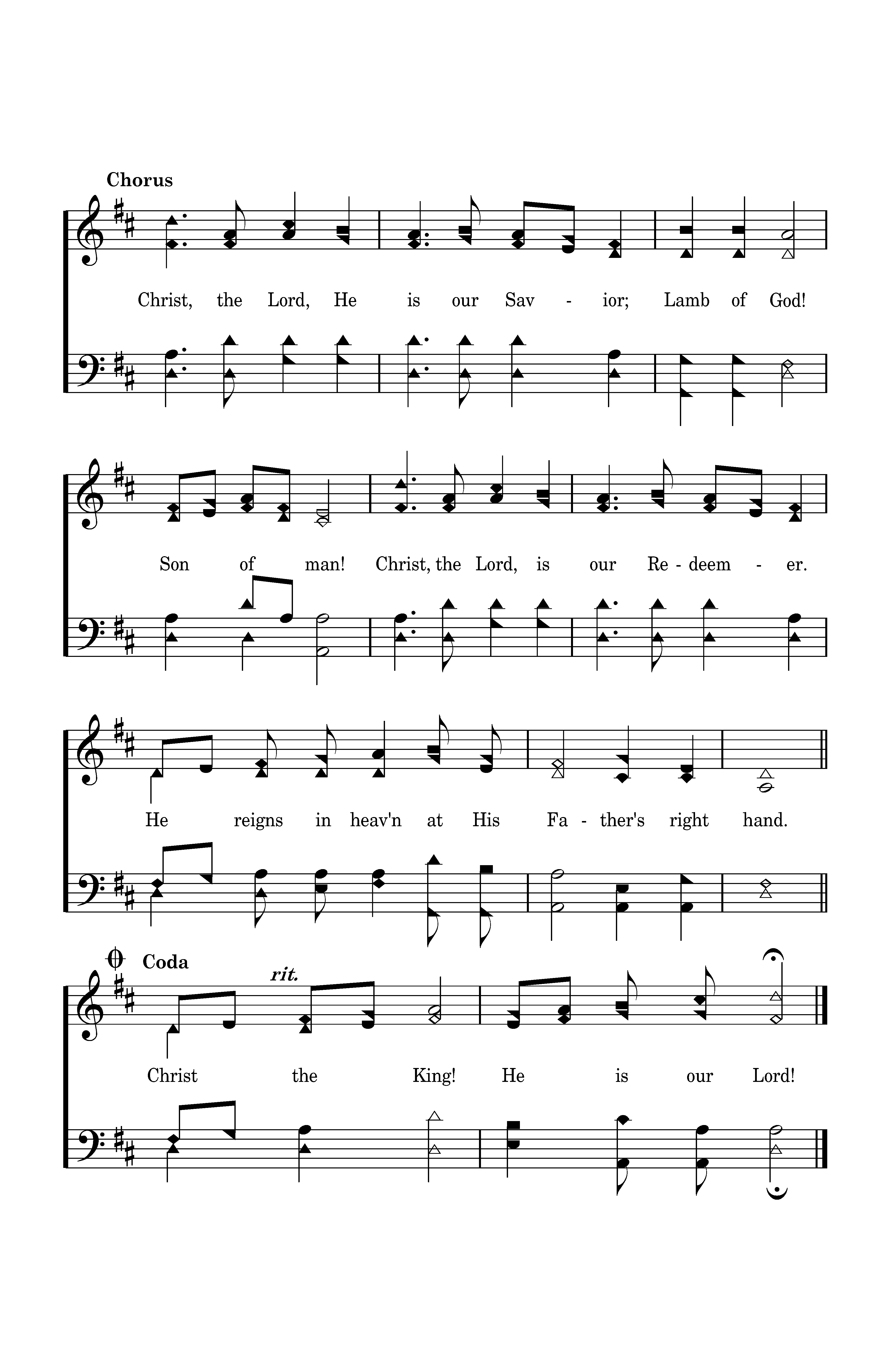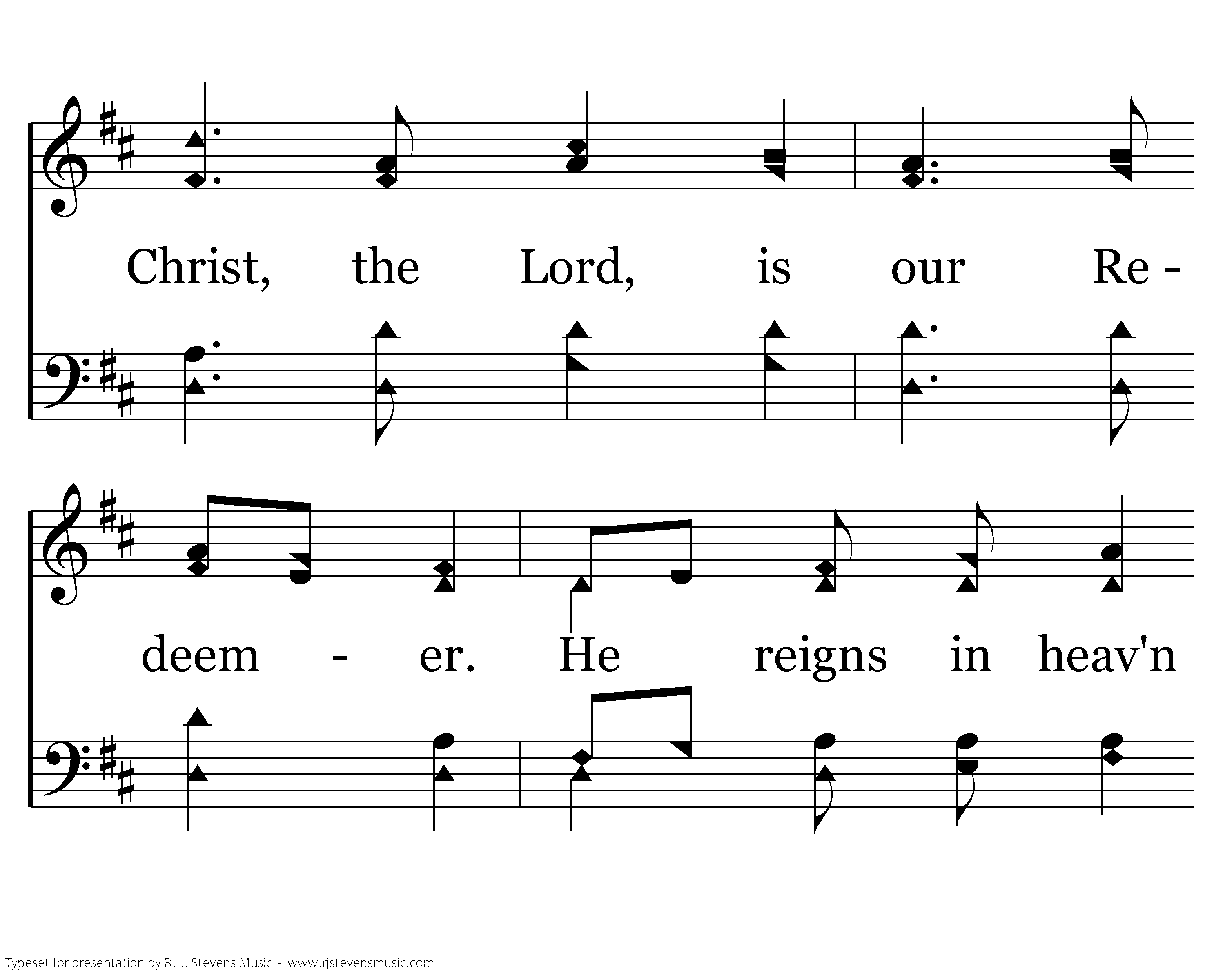 Christ, the Lord, He is our Savior; Lamb of God! Son of man! Christ, the Lord, is our Redeemer. He reigns in heav'n at His Father's right hand.
