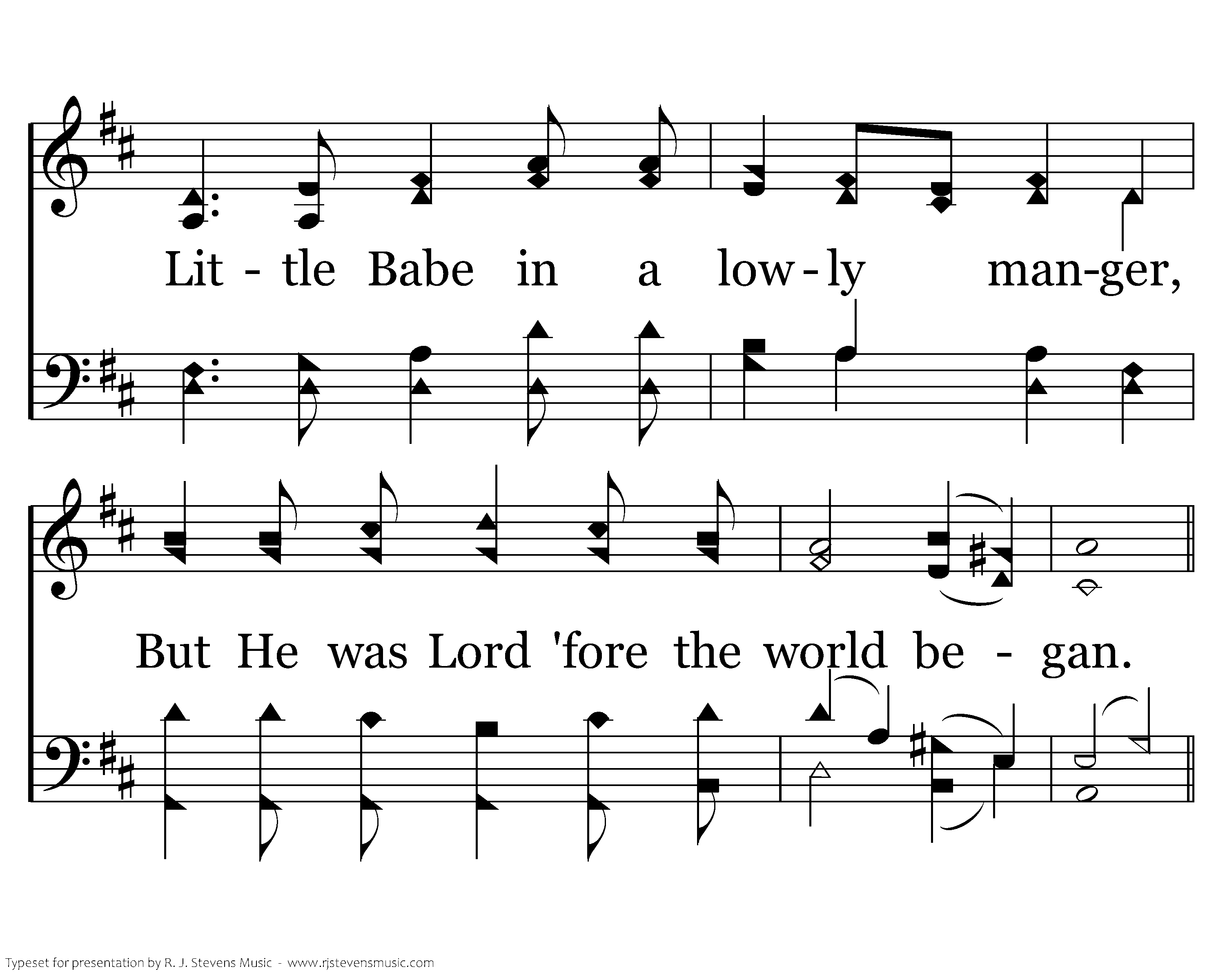 Christ, the Lord, was born in a stable; Inside a city called Bethlehem. Little Babe in a lowly manger, But He was Lord 'fore the world began.