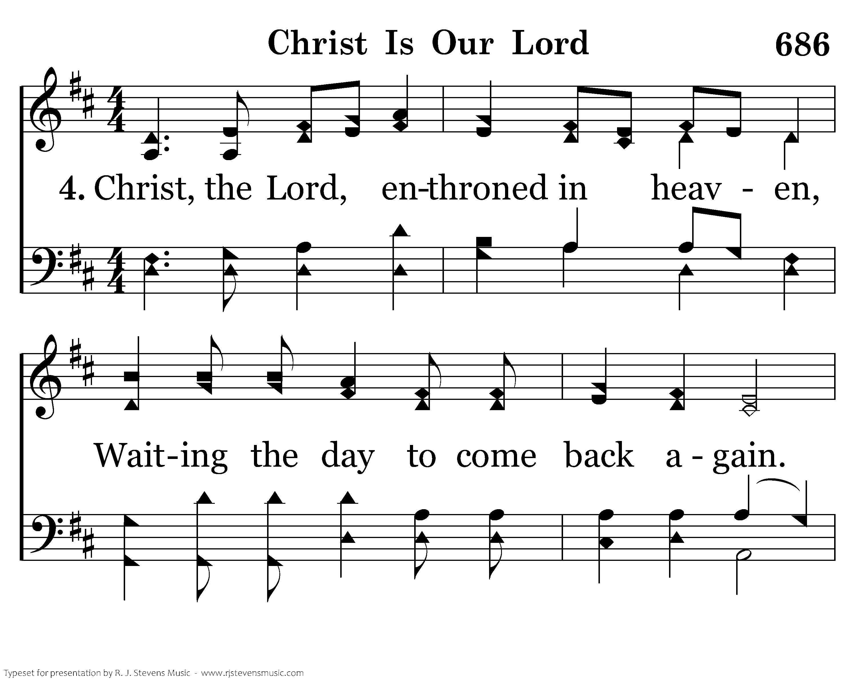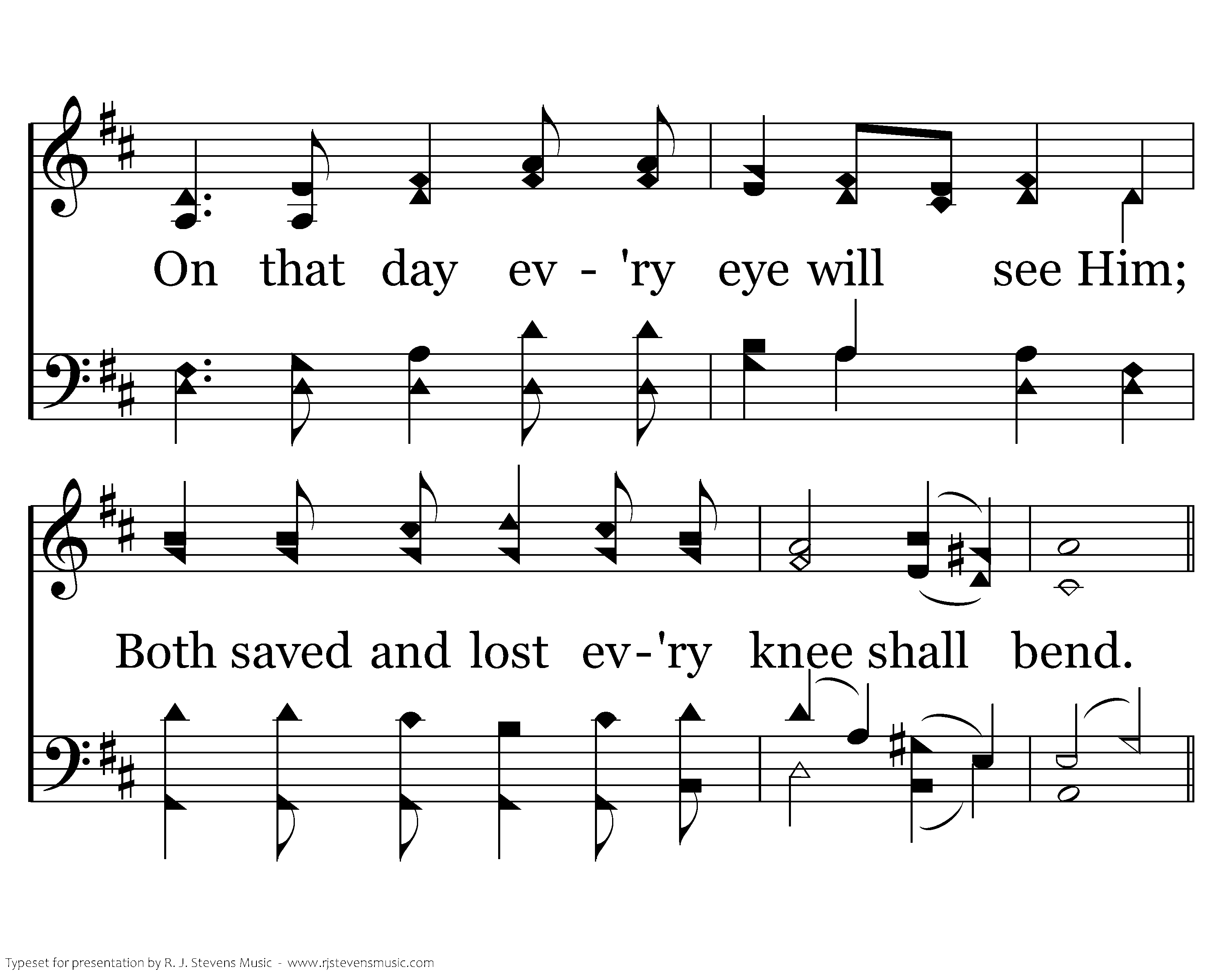 Christ, the Lord, enthroned in heaven, Waiting the day to come back again. On that day ev'ry eye will see Him; Both saved and lost, ev'ry knee shall bend.