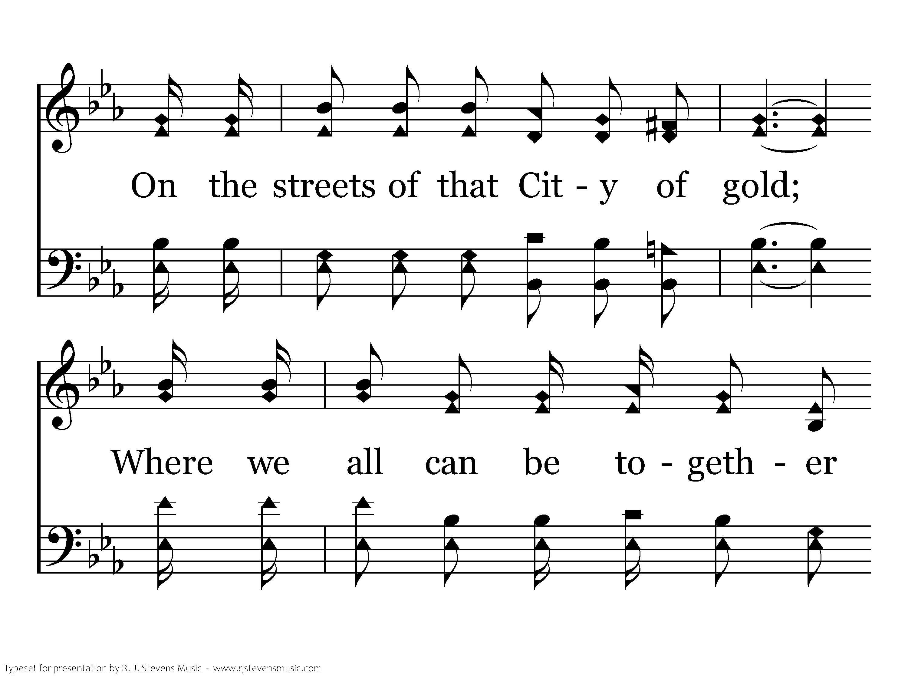 I will meet you in the morning, at the end of the way, On the streets of that City of gold; Where we all can be together and be happy for aye, While the years and the ages shall roll.
