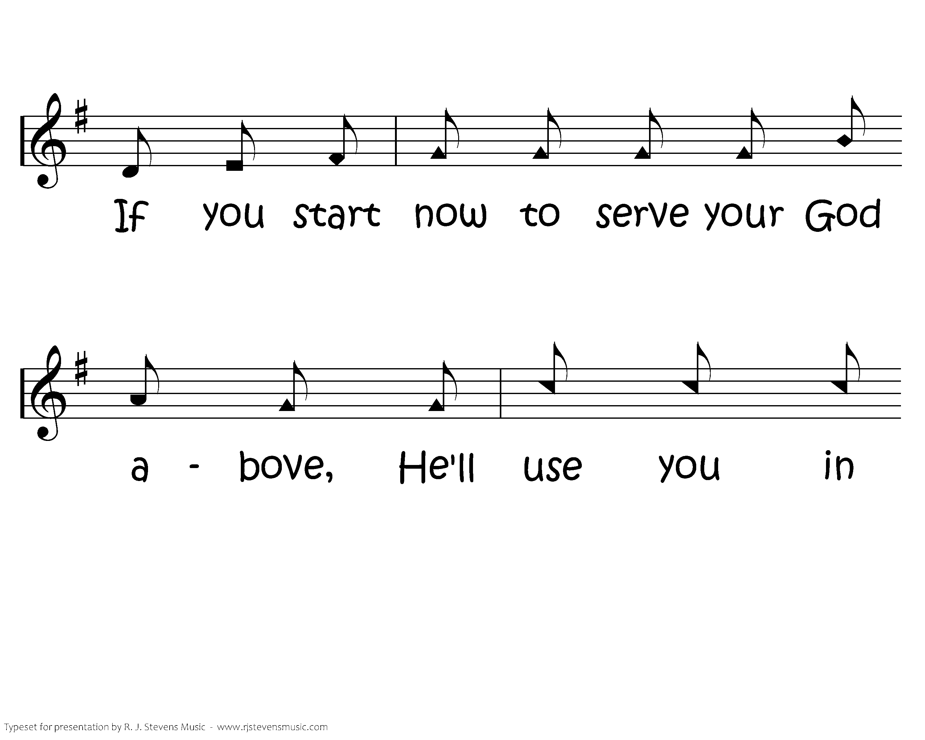 Won't you remember your Creator in the days of your youth? Won't you remember your Creator in the days of your youth? If you start now to serve your God above, He'll use you in His work of love. Remember your Creator in the days of your youth.