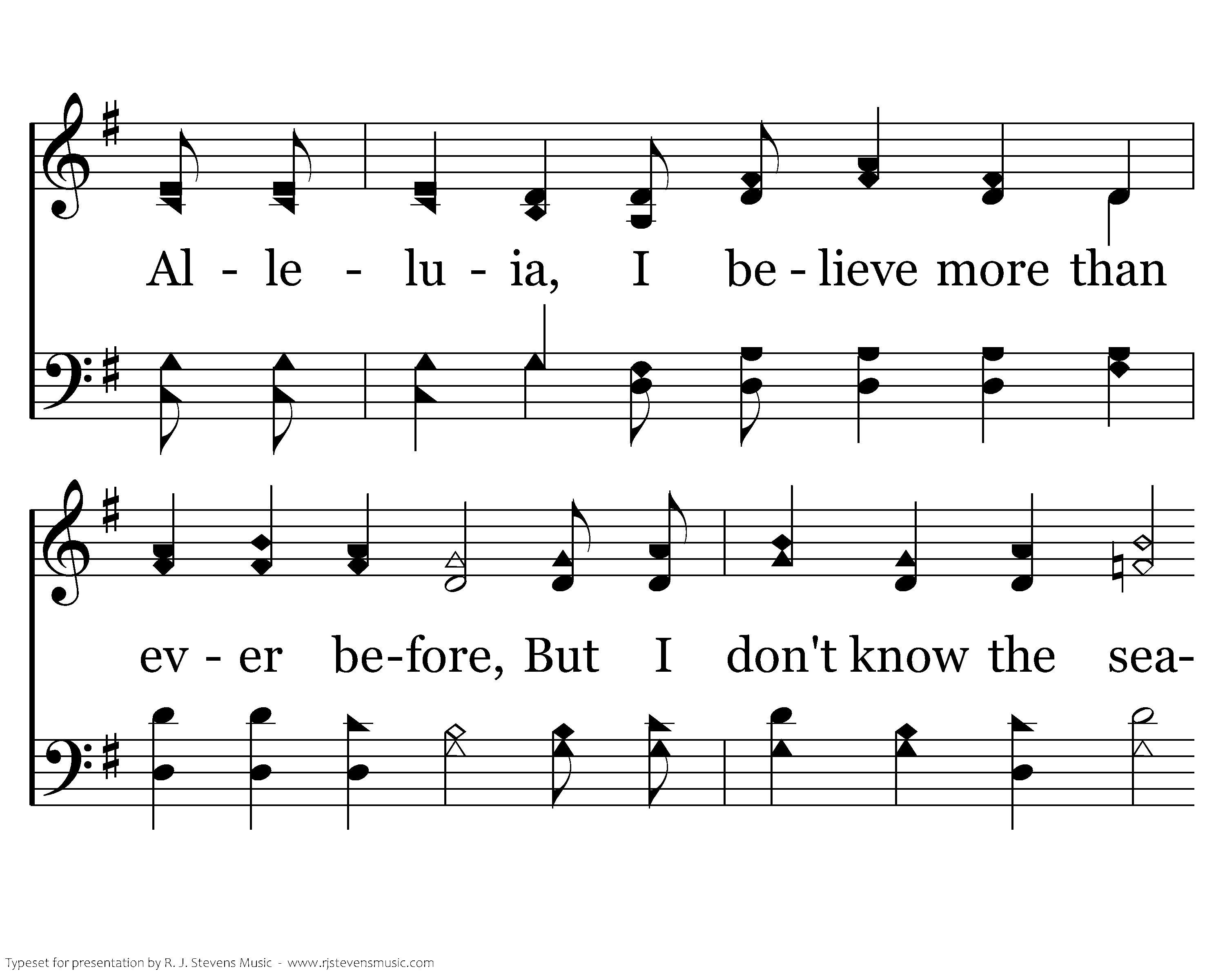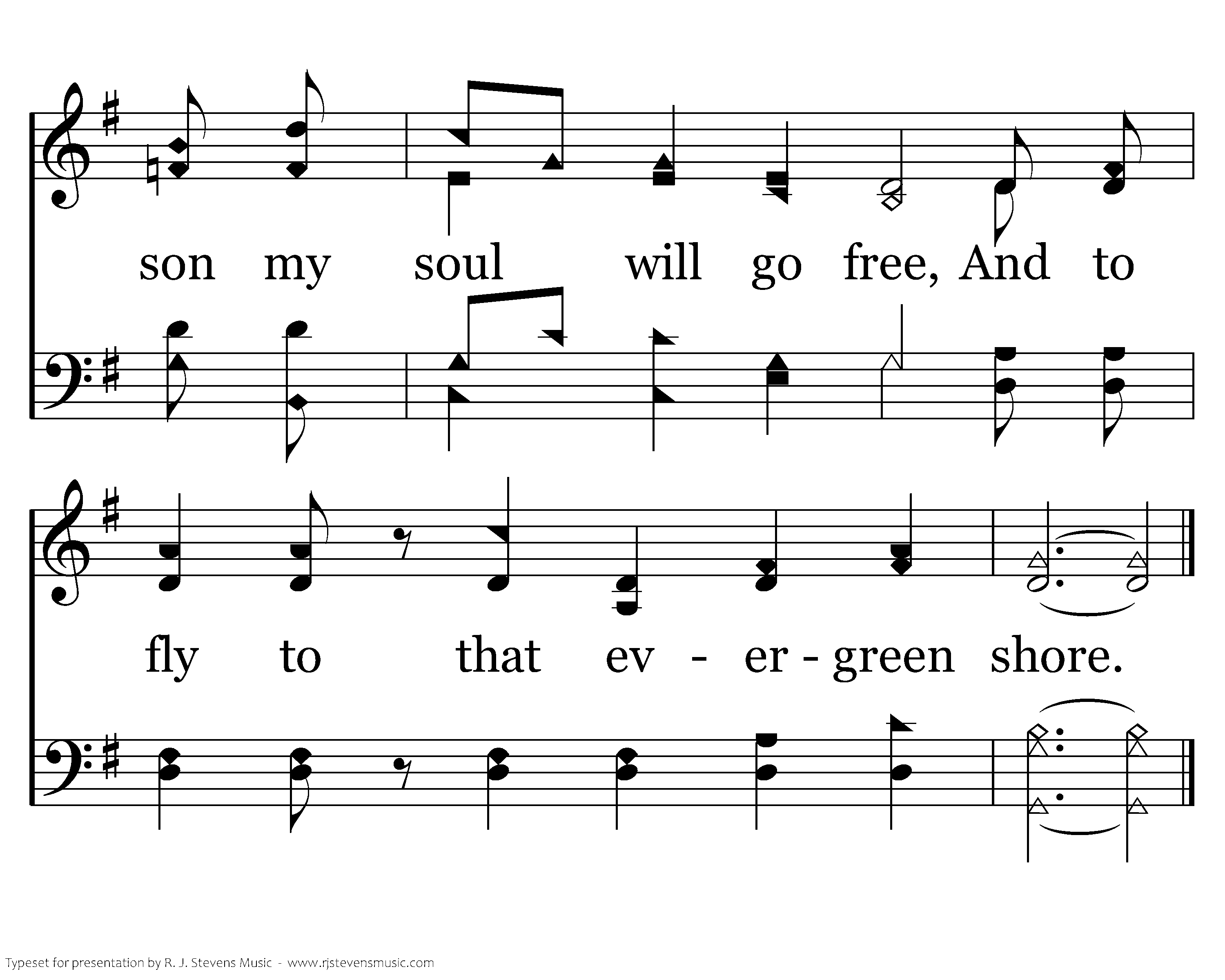 There's a place in the meadow of Heaven, Where Your children no more there shall grieve. Be it sooner or late, You will open the gate. You have promised and Lord I believe. I believe in that meadow, Alleluia, I believe more than ever before, But I don't know the season my soul will go free, And to fly to that evergreen shore.
