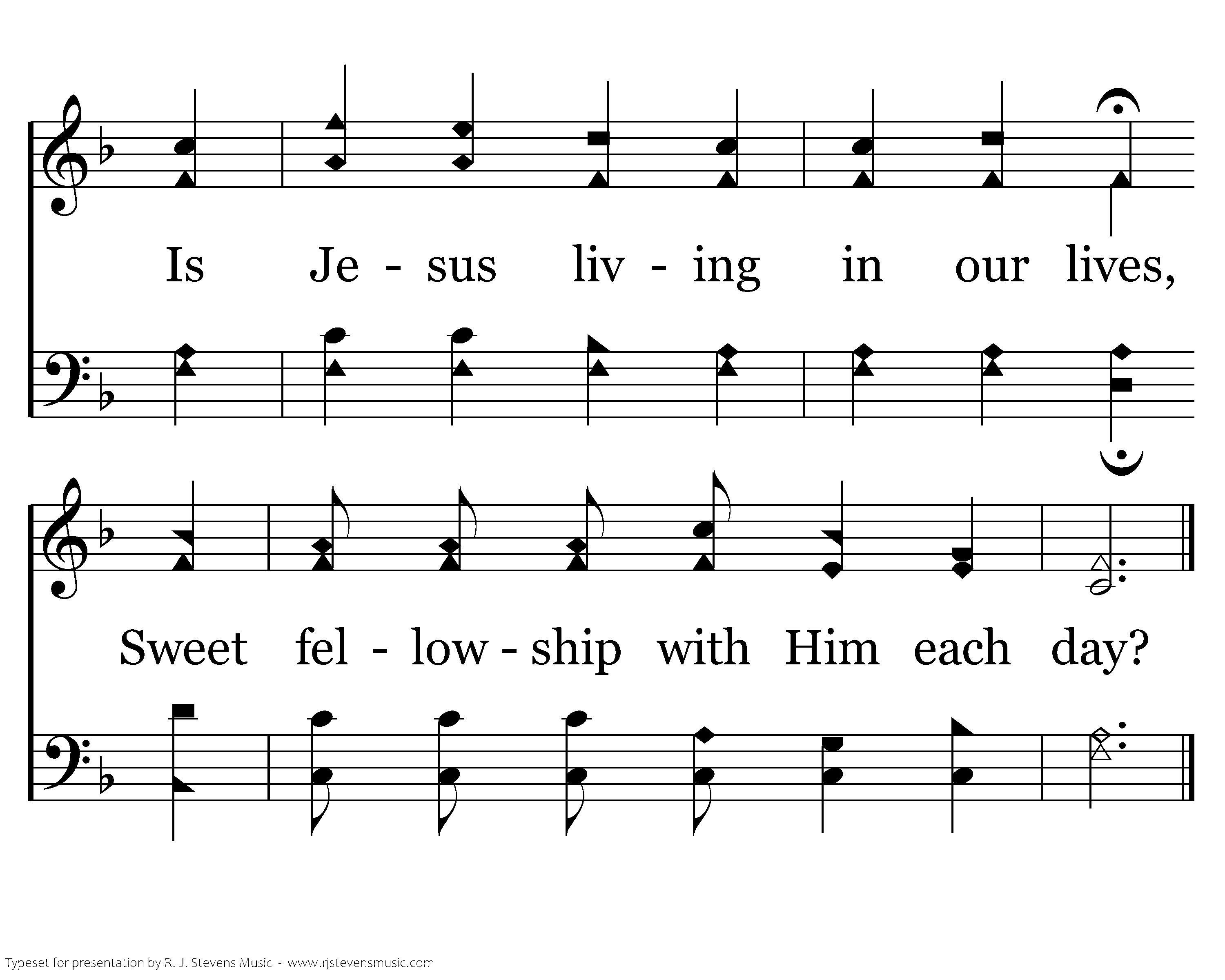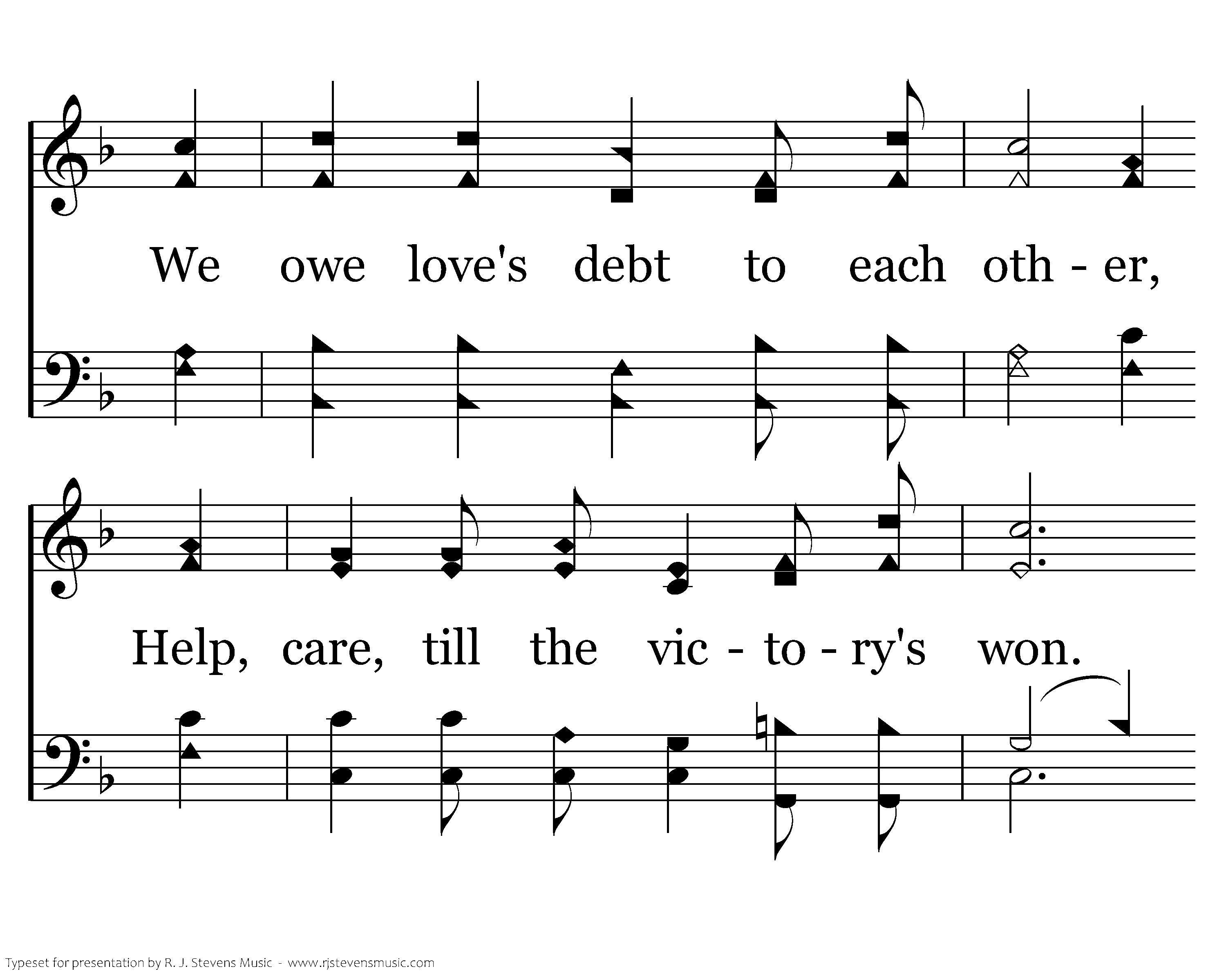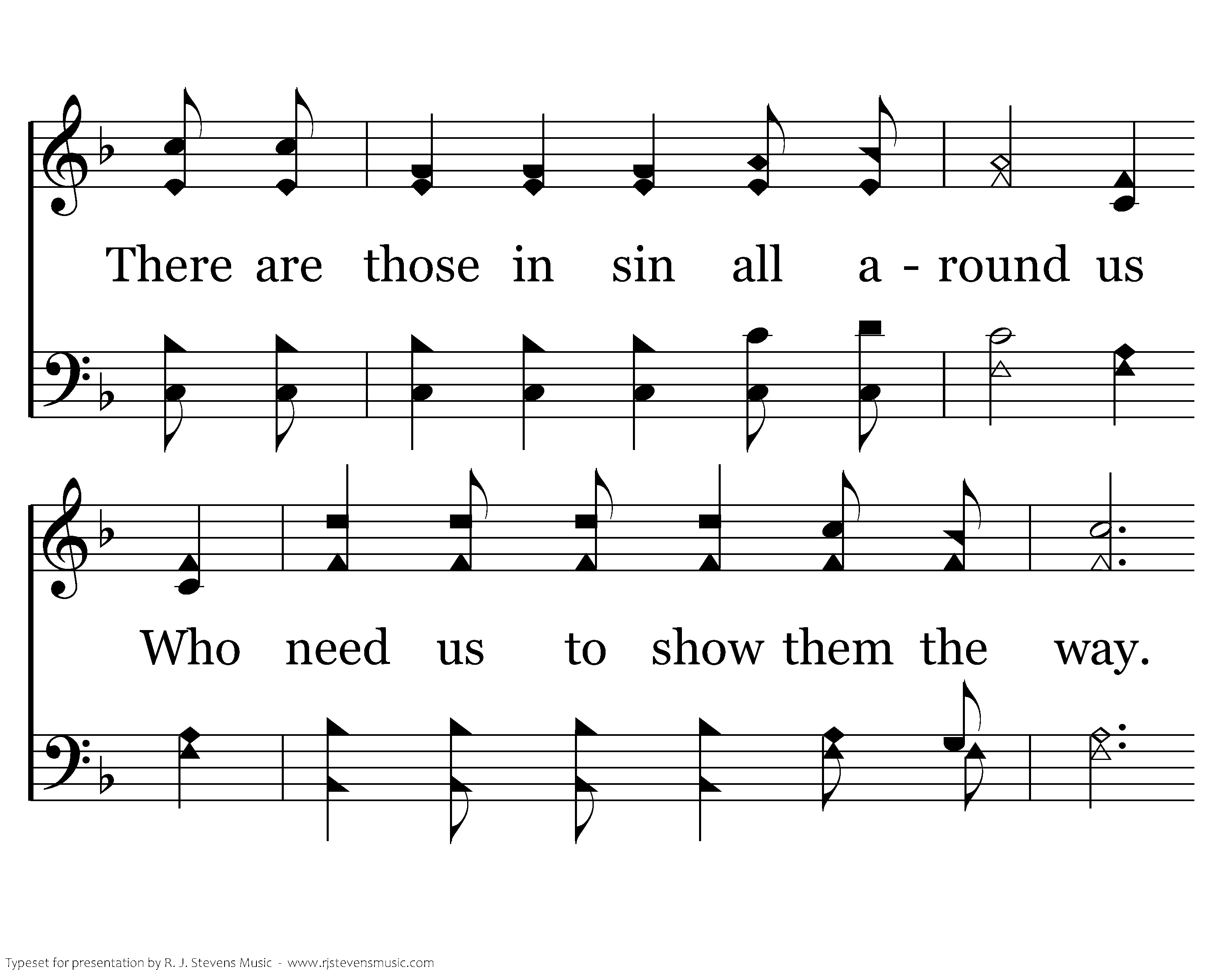 O Father, help us remember, We are brothers in Your dear Son; We owe love's debt to each other Help, care, till the victory's won. There are those in sin all around us Who need us to show them the way. Is Jesus living in our lives, Sweet fellowship with Him each day?