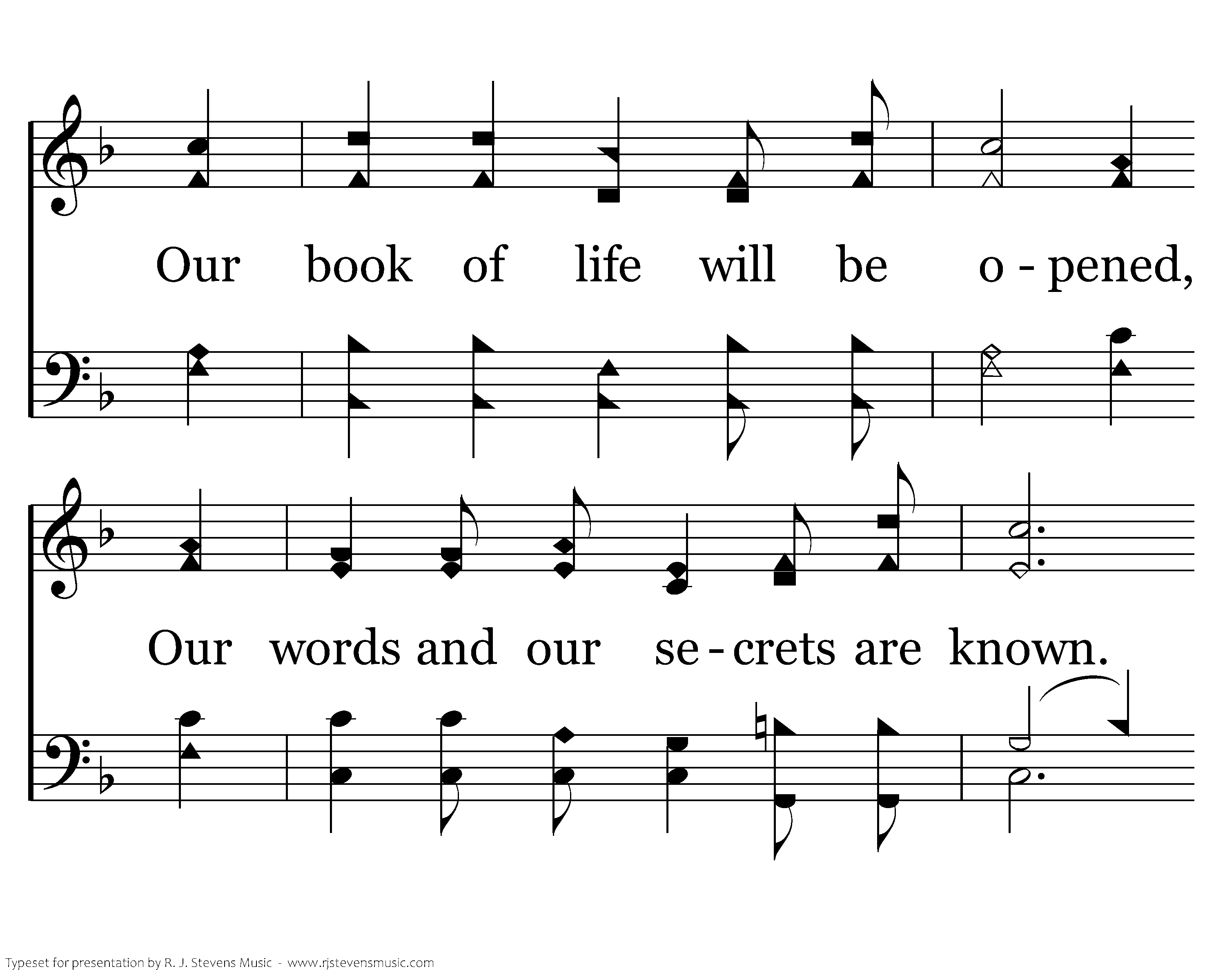 O Father, help us remember We must stand before Your great throne; Our book of life will be opened, Our words and our secrets are known. There'll be anguish for those found wanting, "Depart thou from Me," Christ will say. If true and faithful to the end, Eternal joy on Judgment day.