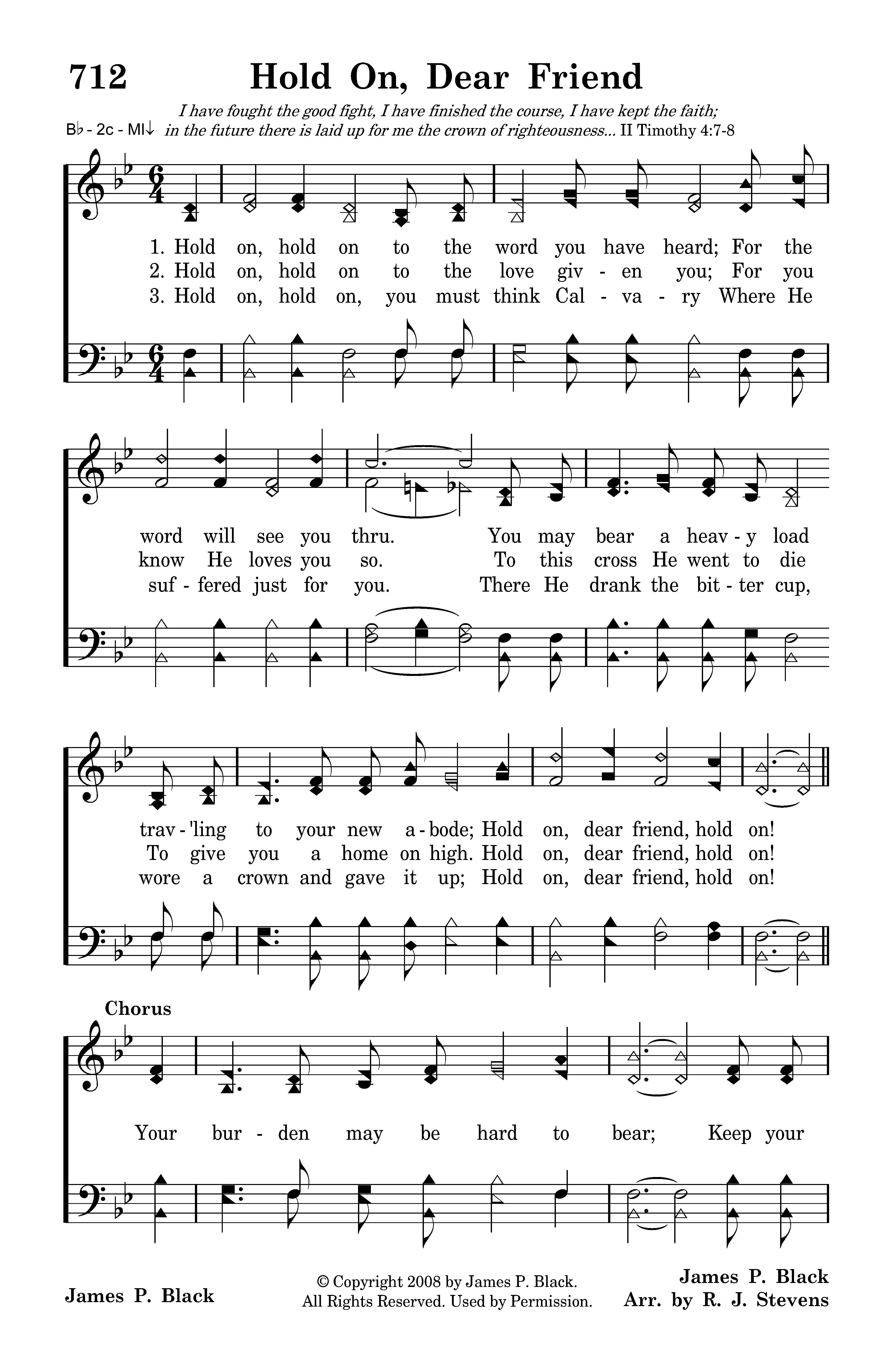 Hold on, hold on to the word you have heard; For the word will see you thru. You may bear a heavy load trav'ling to your new abode; Hold on, dear friend, hold on!