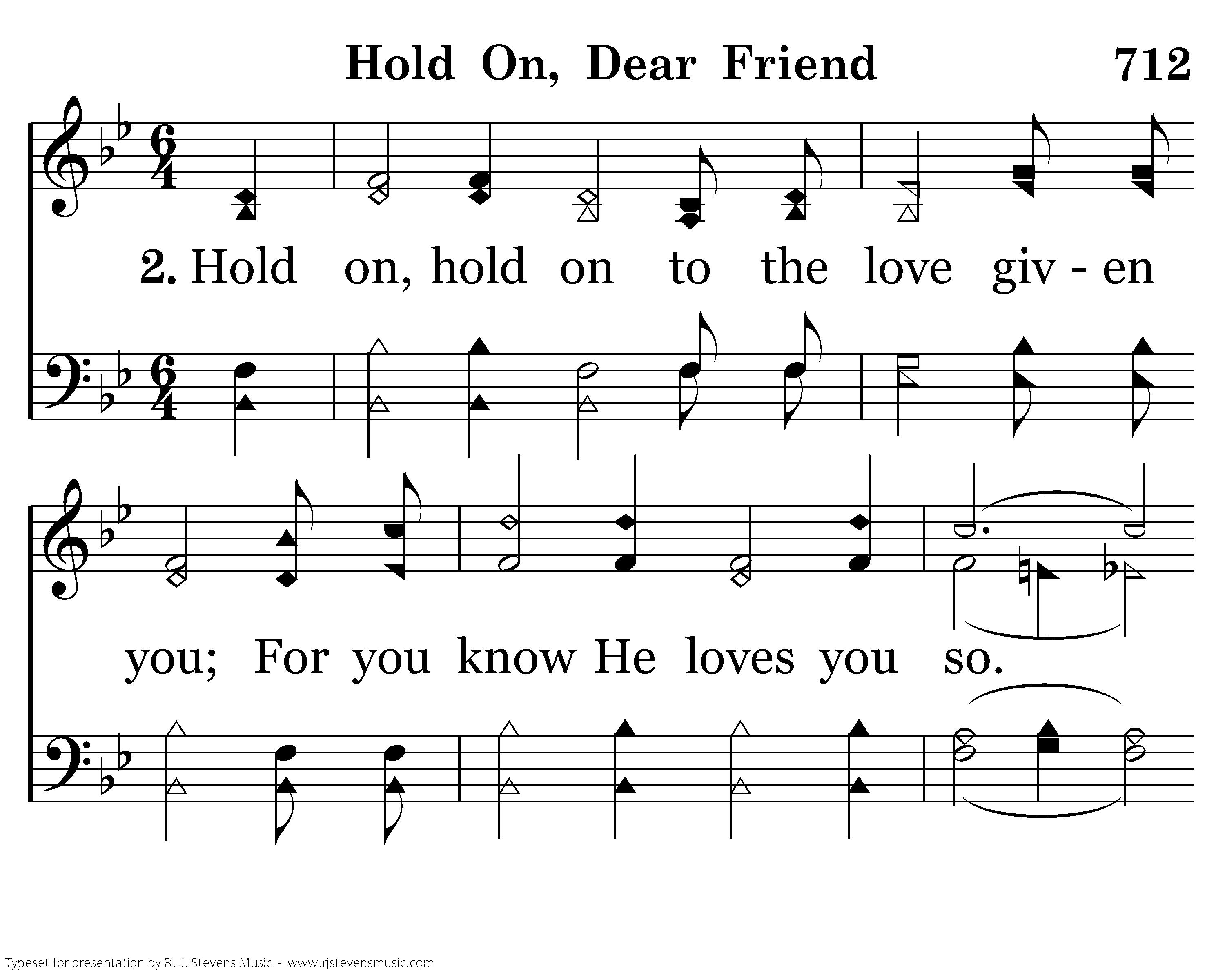 Hold on, hold on to the love given you; For you know He loves you so. To this cross He went to die To give you a home on high. Hold on, dear friend, hold on!