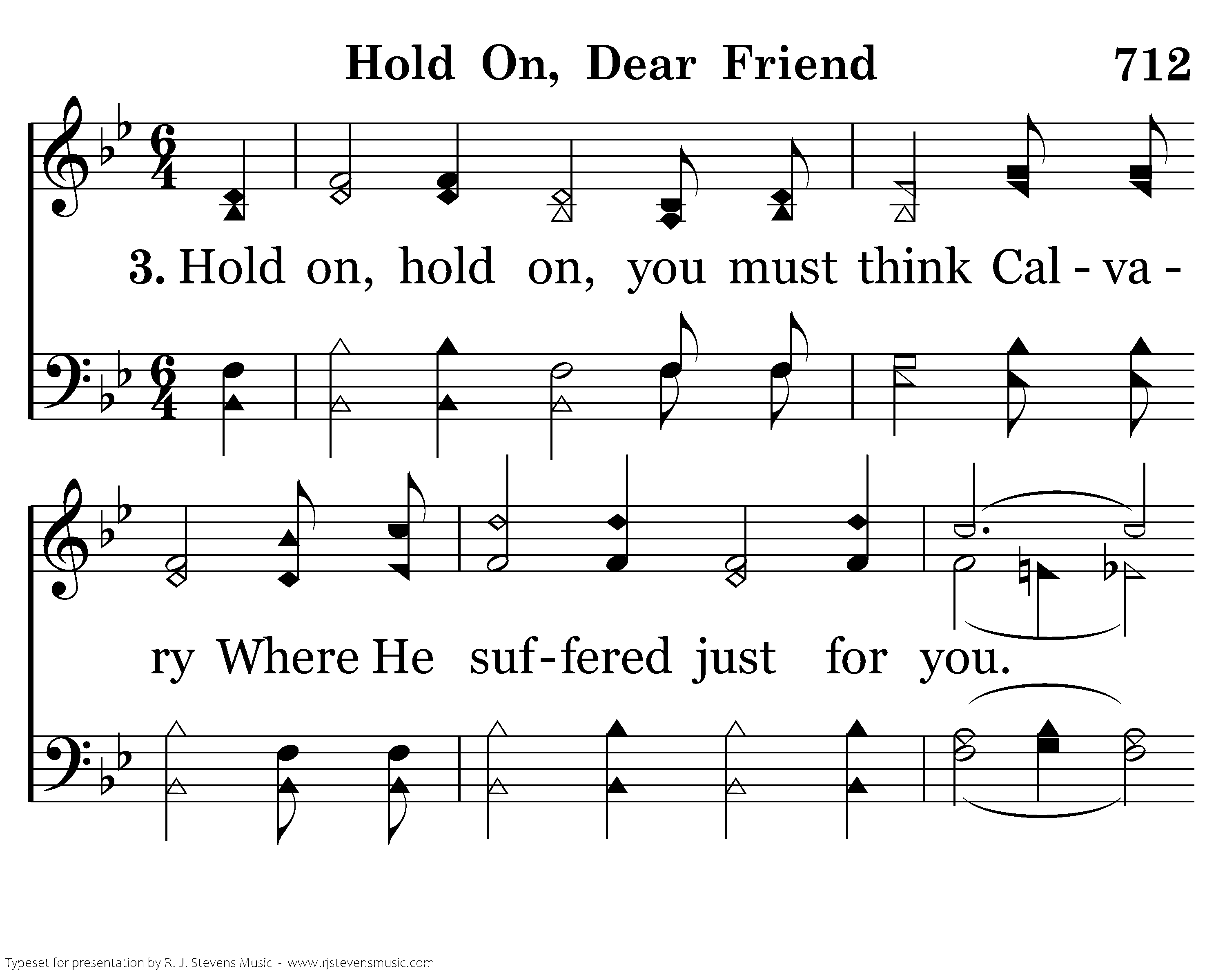 Hold on, hold on, you must think Calvary Where He suffered just for you. There He drank the bitter cup, wore a crown and gave it up; Hold on, dear friend, hold on!