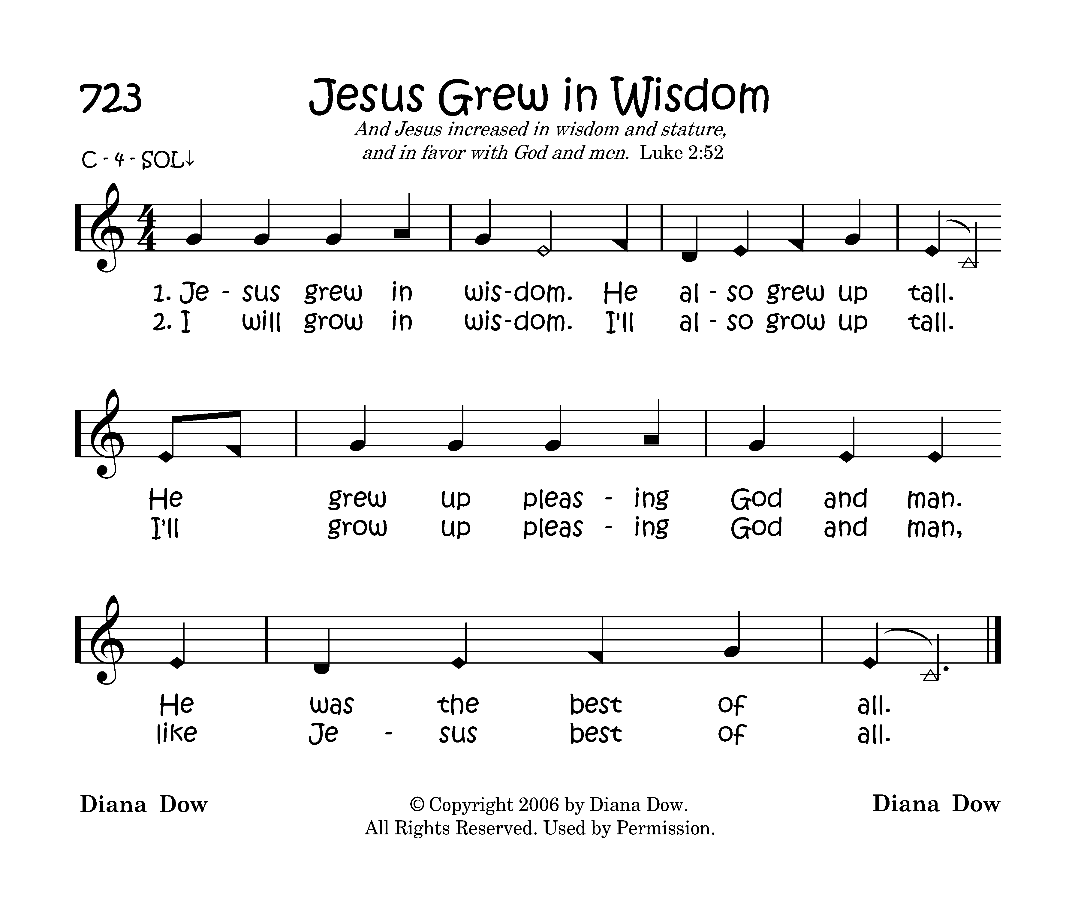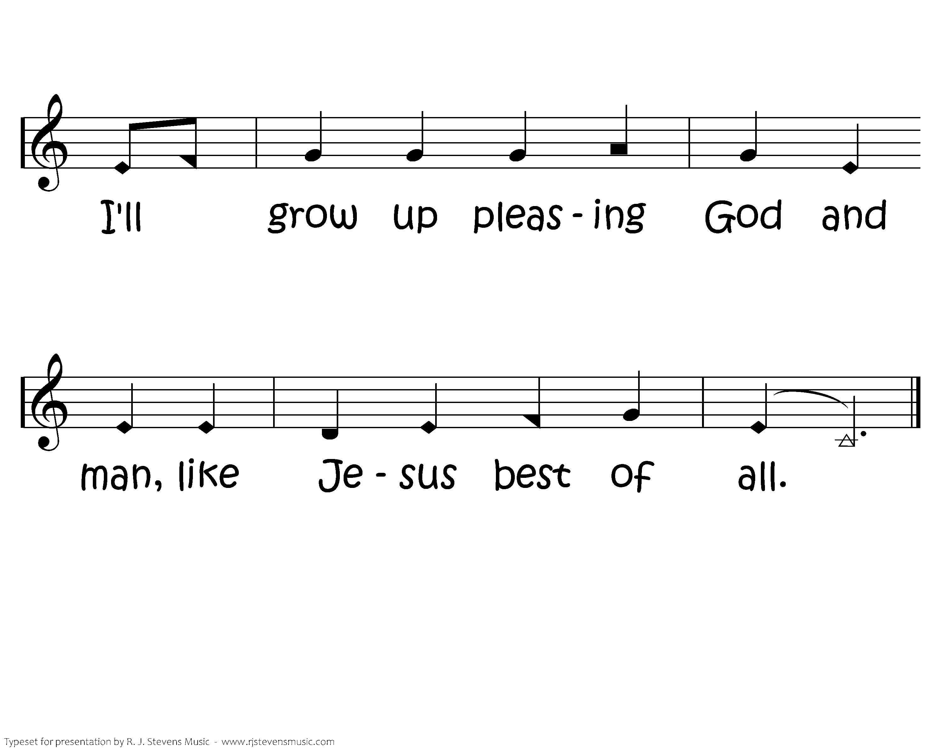 I will grow in wisdom. I'll also grow up tall. I'll grow up pleasing God and man, like jesus best of all.