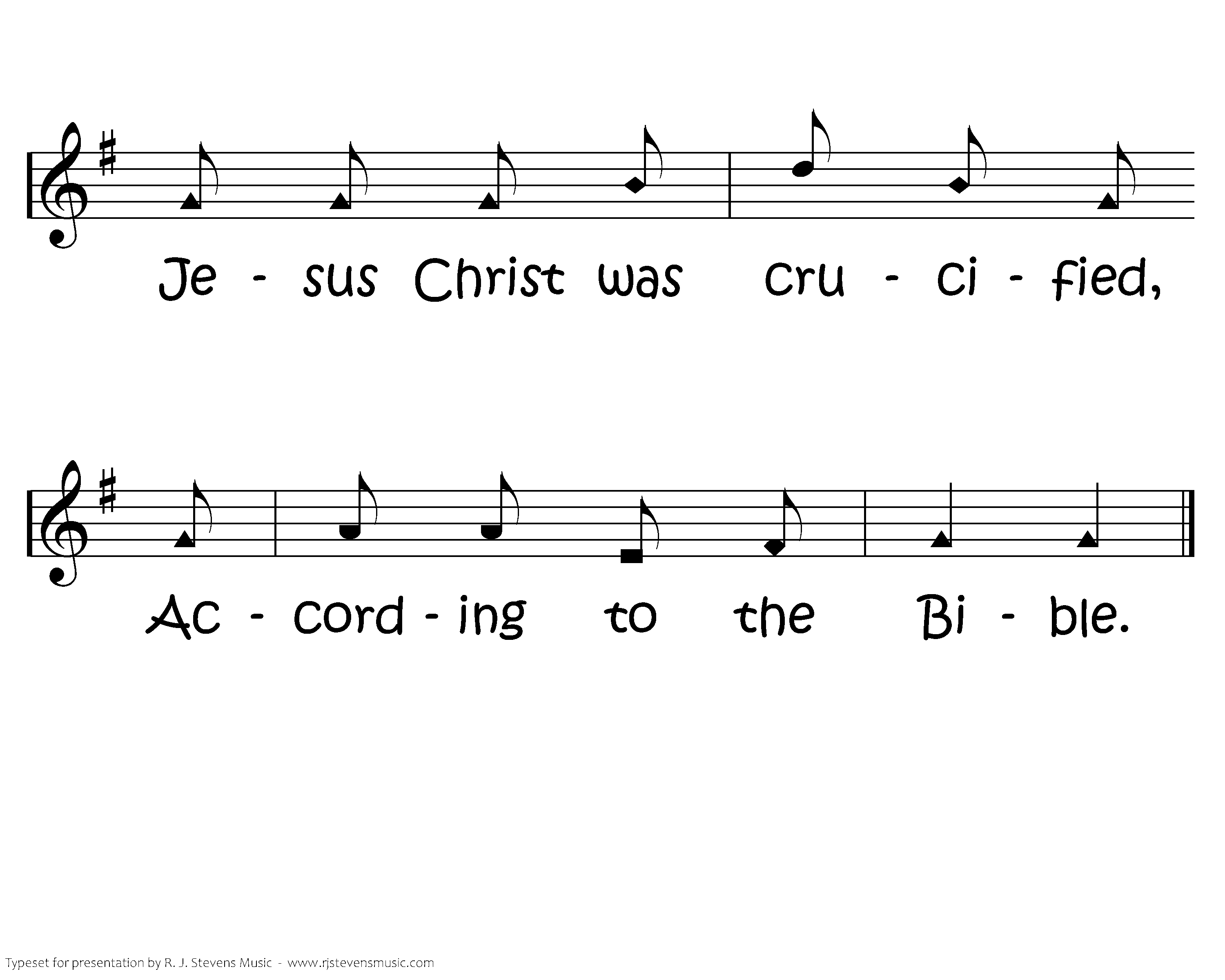 Jesus Christ was Crucified, Crucified, Crucified; Jesus Christ was crucified, According to the bible.