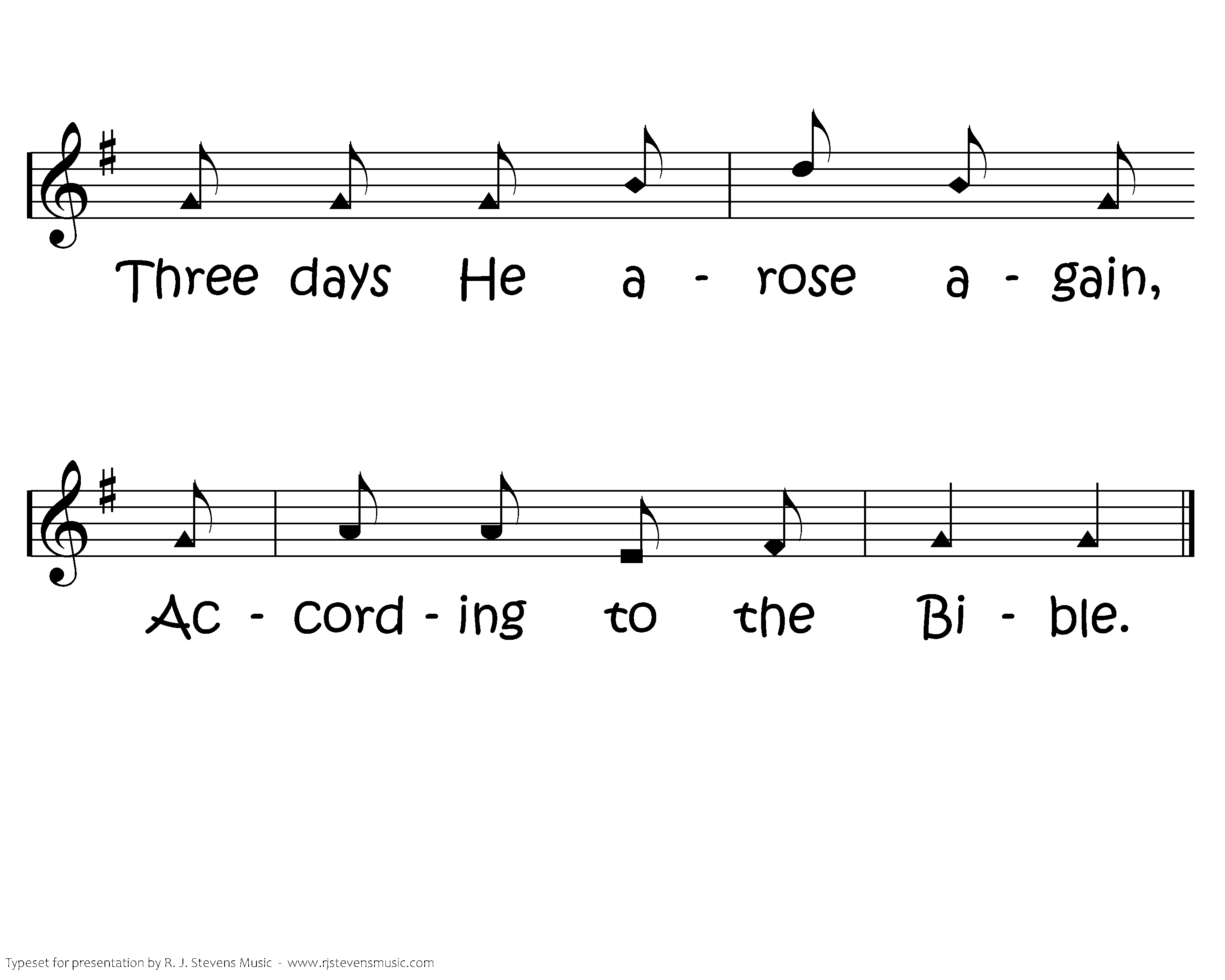 Three days he arose again, 'rose again, 'rose again; Three days he arose again, According to the bible.