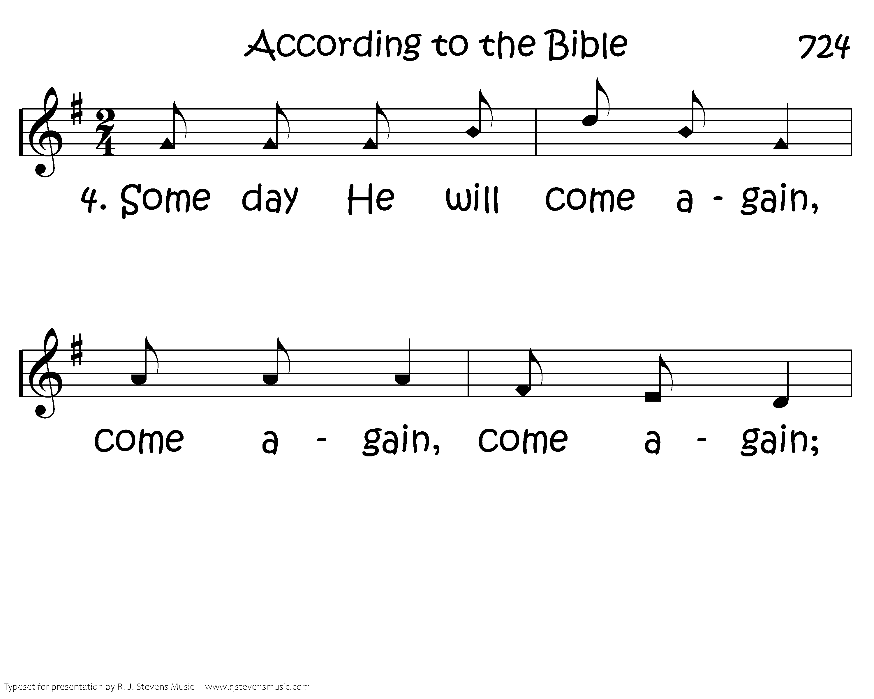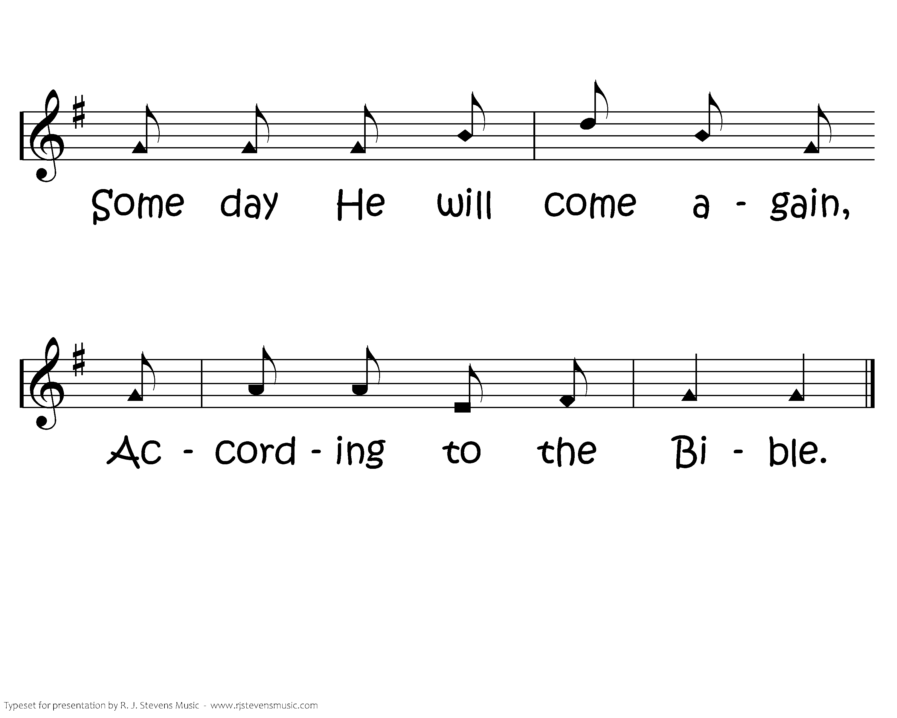 Some day He will come again, Come again, come again; Some day He will come again, According to the Bible.