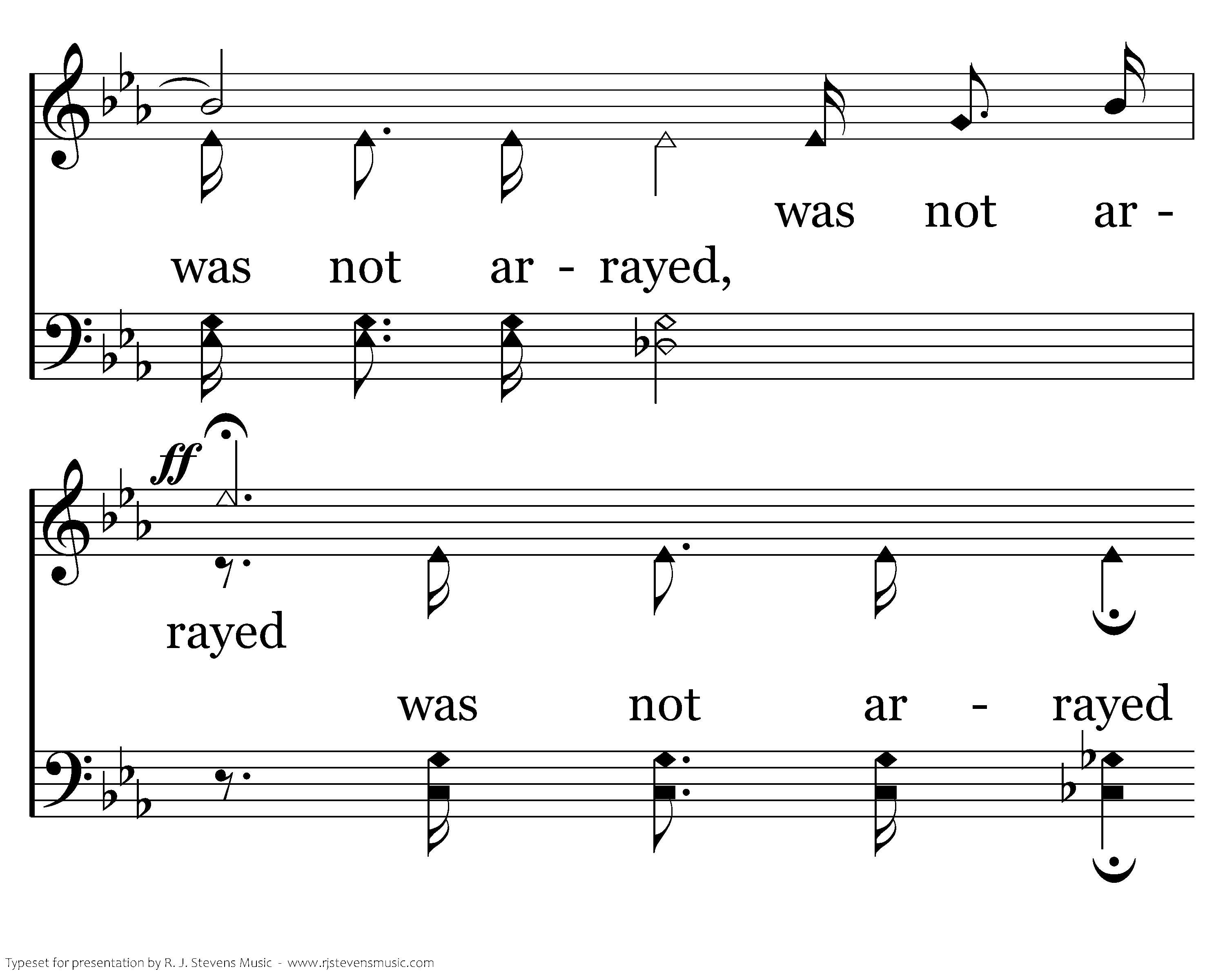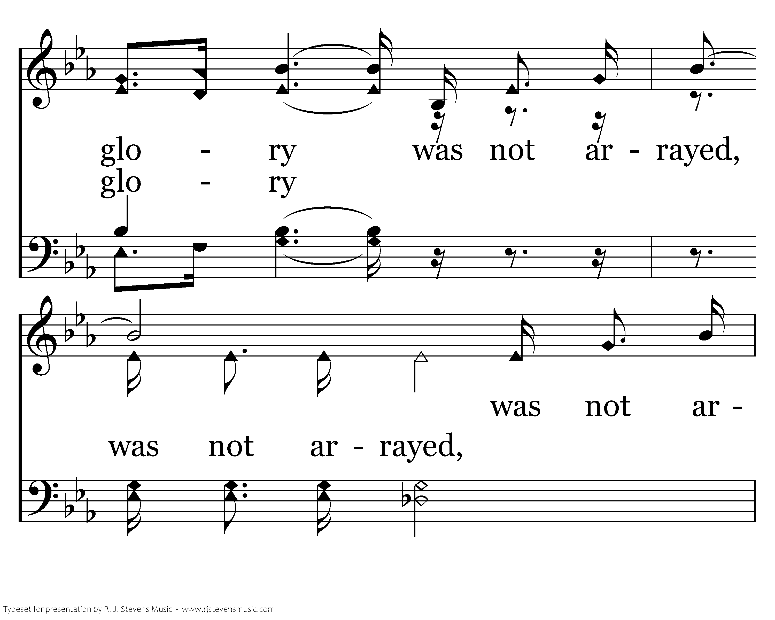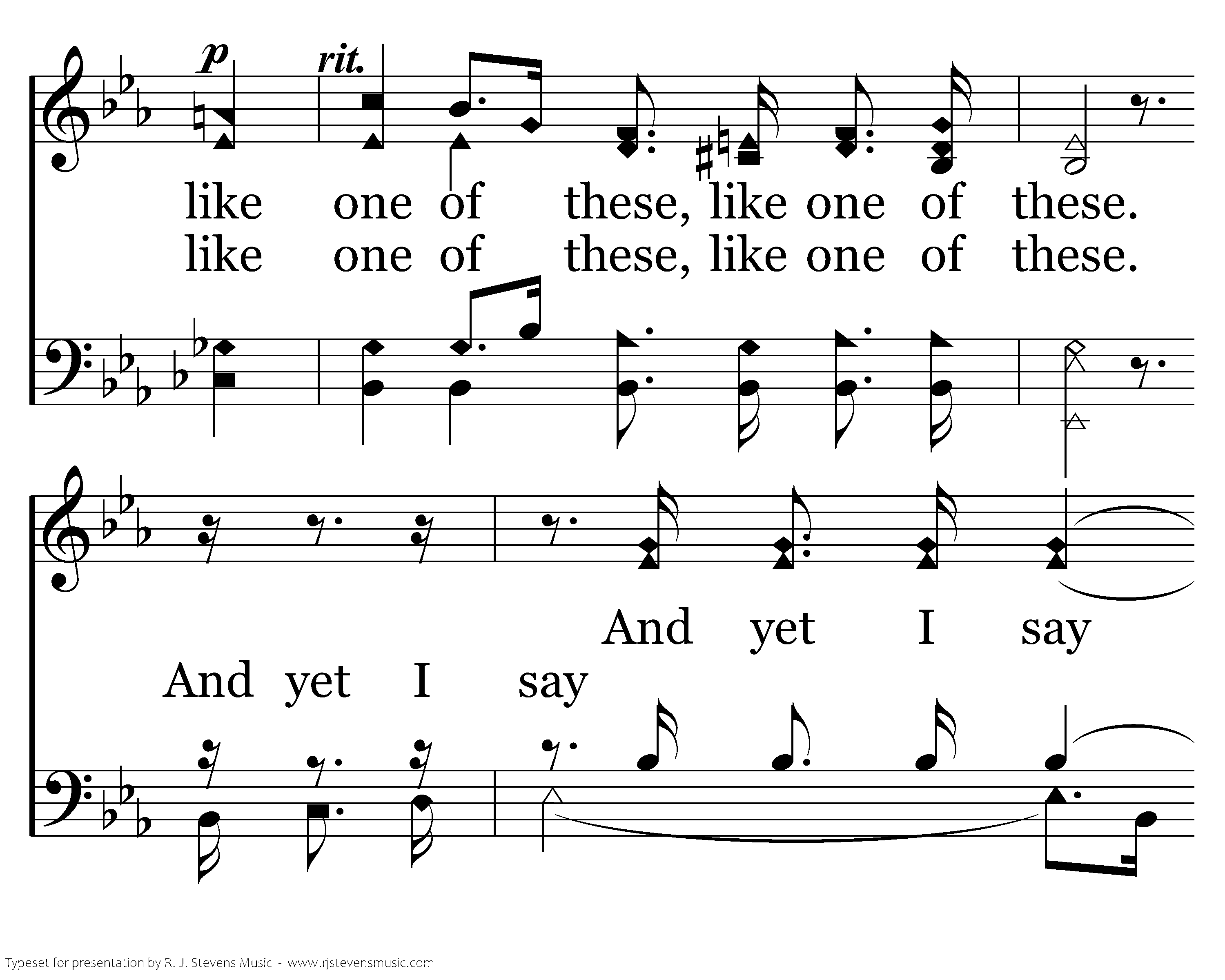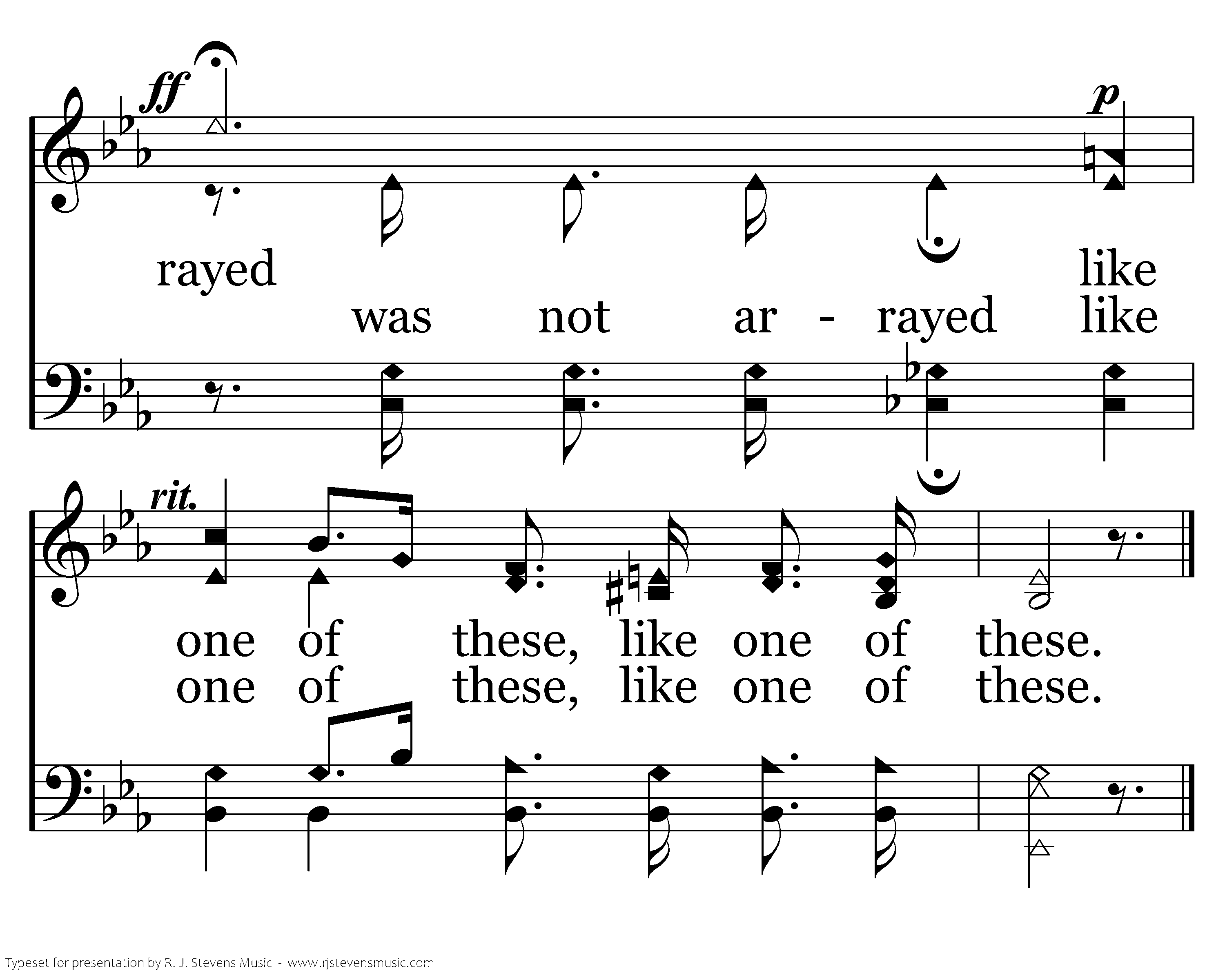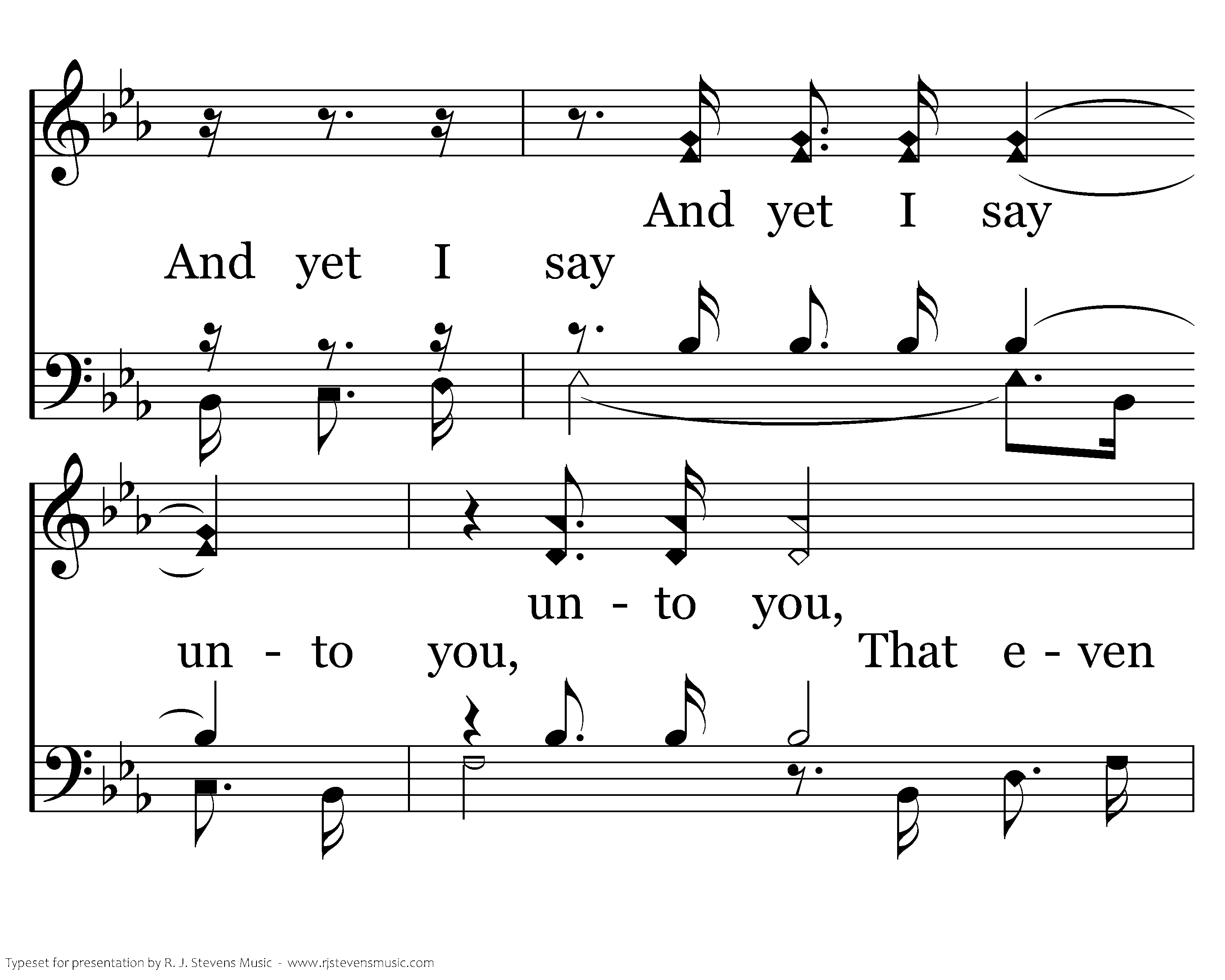 Consider the lilies of the field, how they grow; Consider the lilies of the field, how they grow; They toil not, they toil not, they toil not, neither do they spin; and yet I say unto you. And yet I say And yet I say unto you, unto you, That even Solomon in all his glory was not arrayed, was not arrayed like one of these, like one of these.