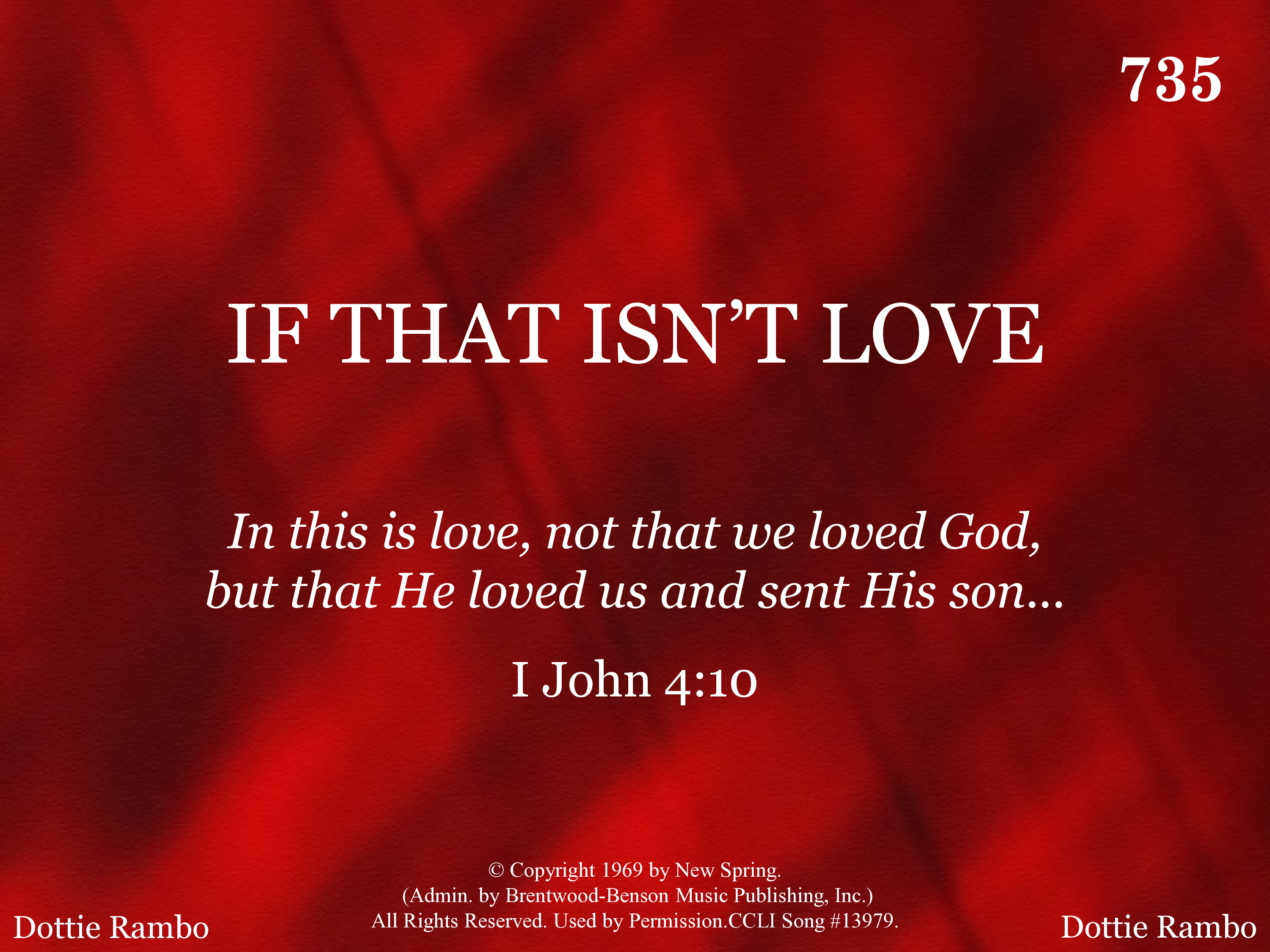 - Copyright © 1969 New Spring. (Admin. by Brentwood-Benson Music Publishing, Inc.) All Rights Reserved. Used by Permission.