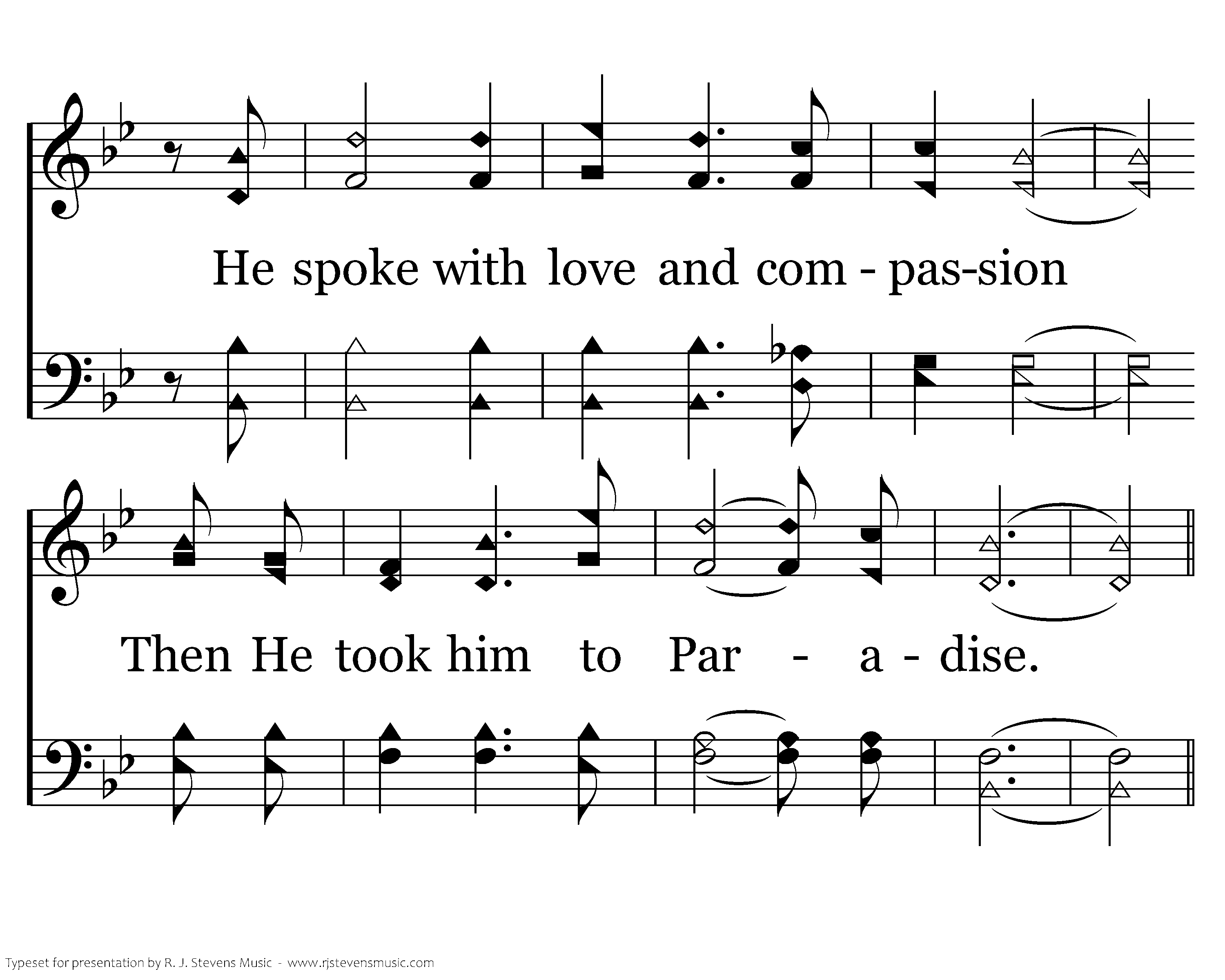 Even in death He remembered The thief hanging by His side; He spoke with love and compassion Then He took him to Paradise.