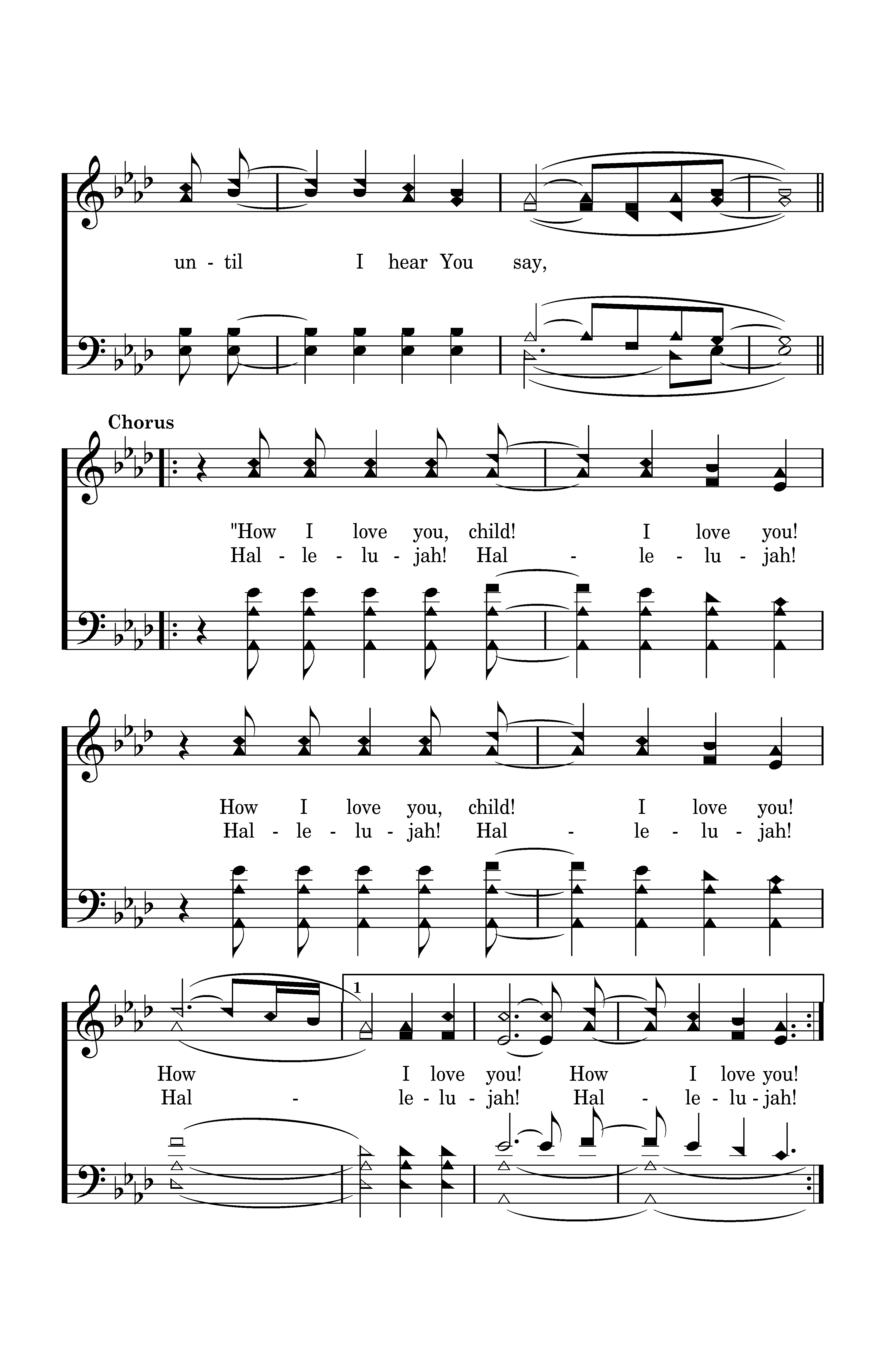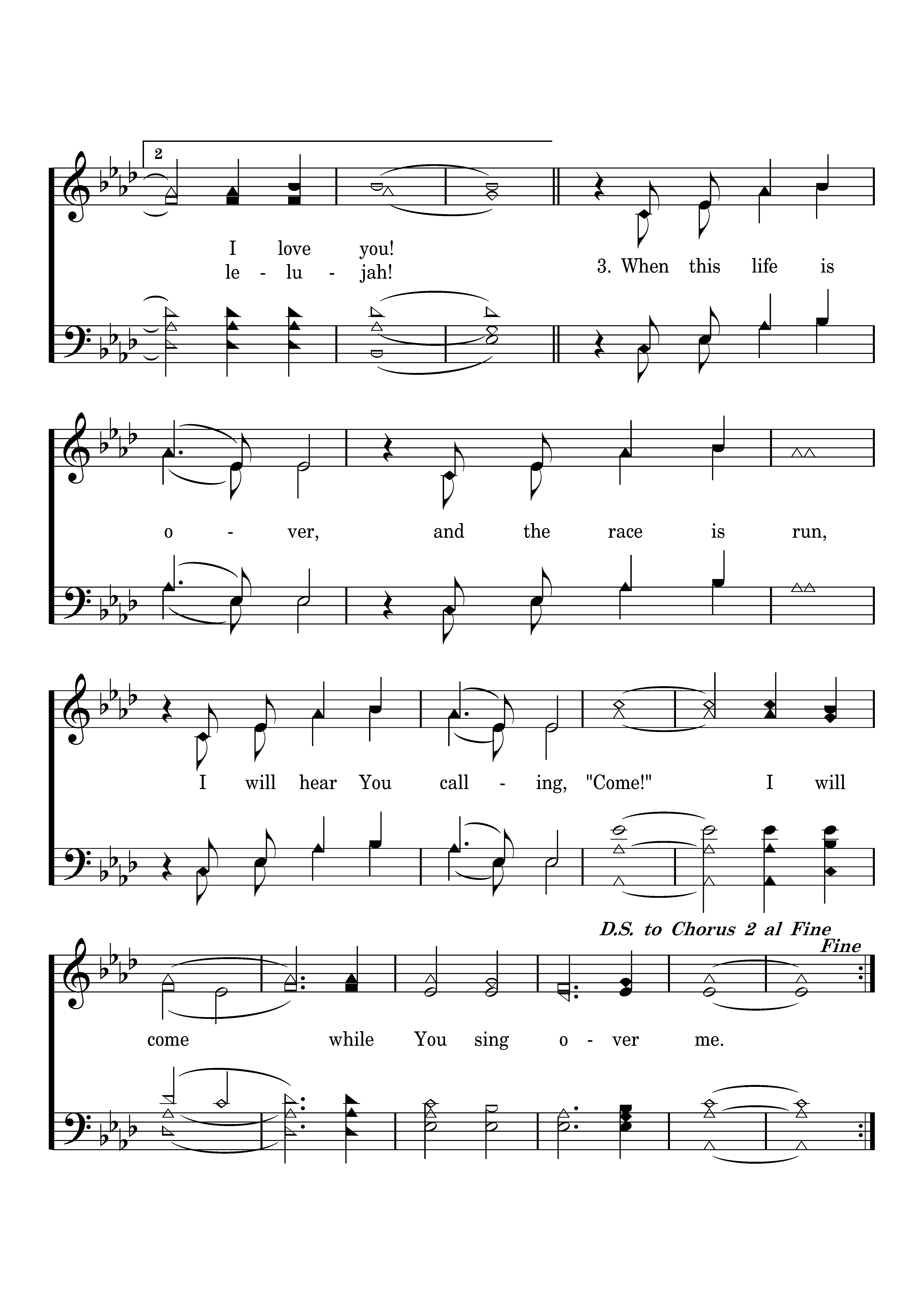 When the night is falling, and the day is done, I can hear You calling,"Come!" I will come while You sing over me. How I love you, Child! I love you! How I love you, child! I love you! How I love you! How I love you! Hallelujah! Hallelujah! Hallelujah! Hallelujah! Hallelujah! When this life is over, and the race is run, I will hear You calling, "Come!" I will come while You sing over me.