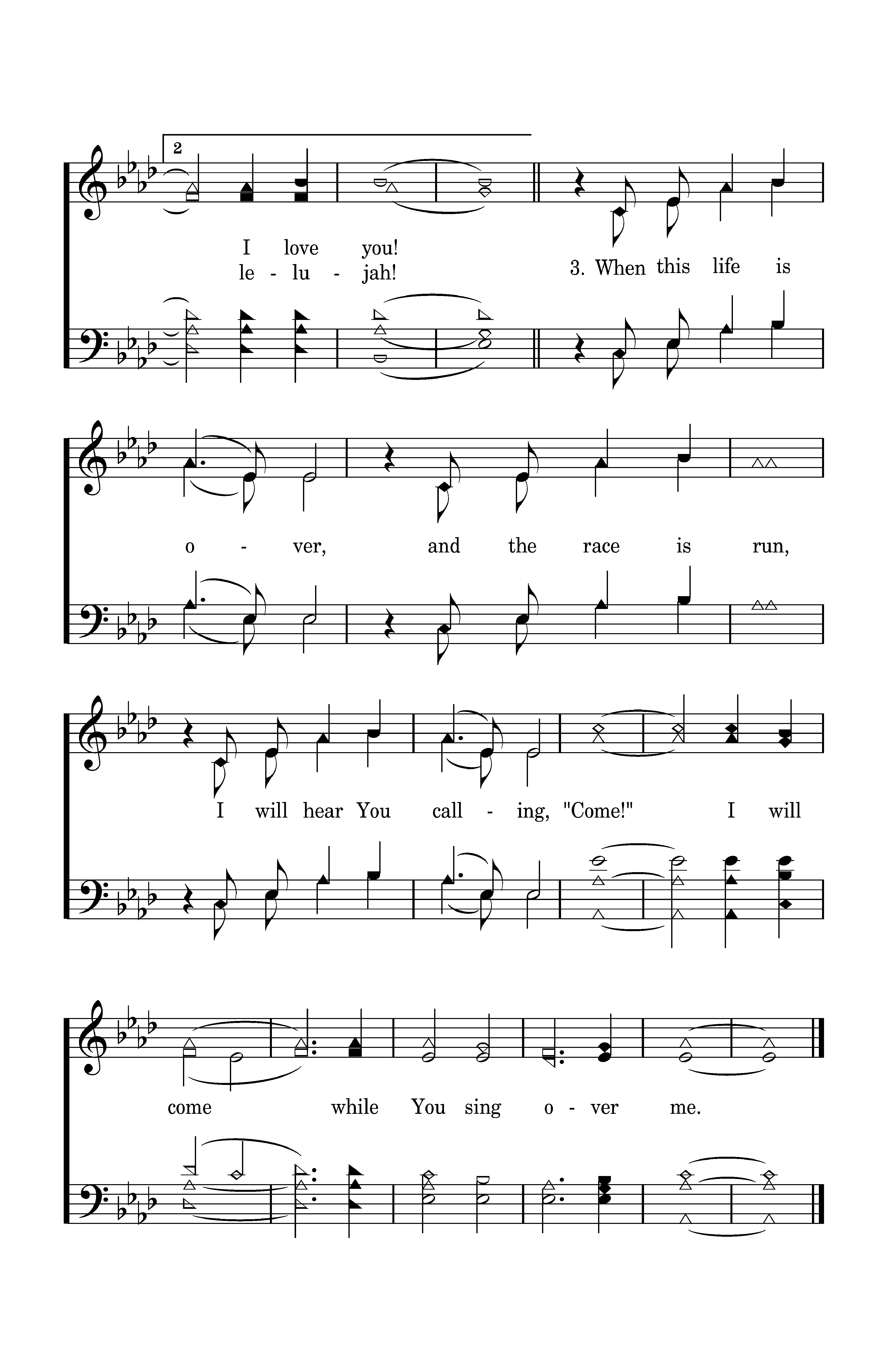 When this life is over, and the race is run, I will hear You calling, "Come!" I will come while You sing over me.