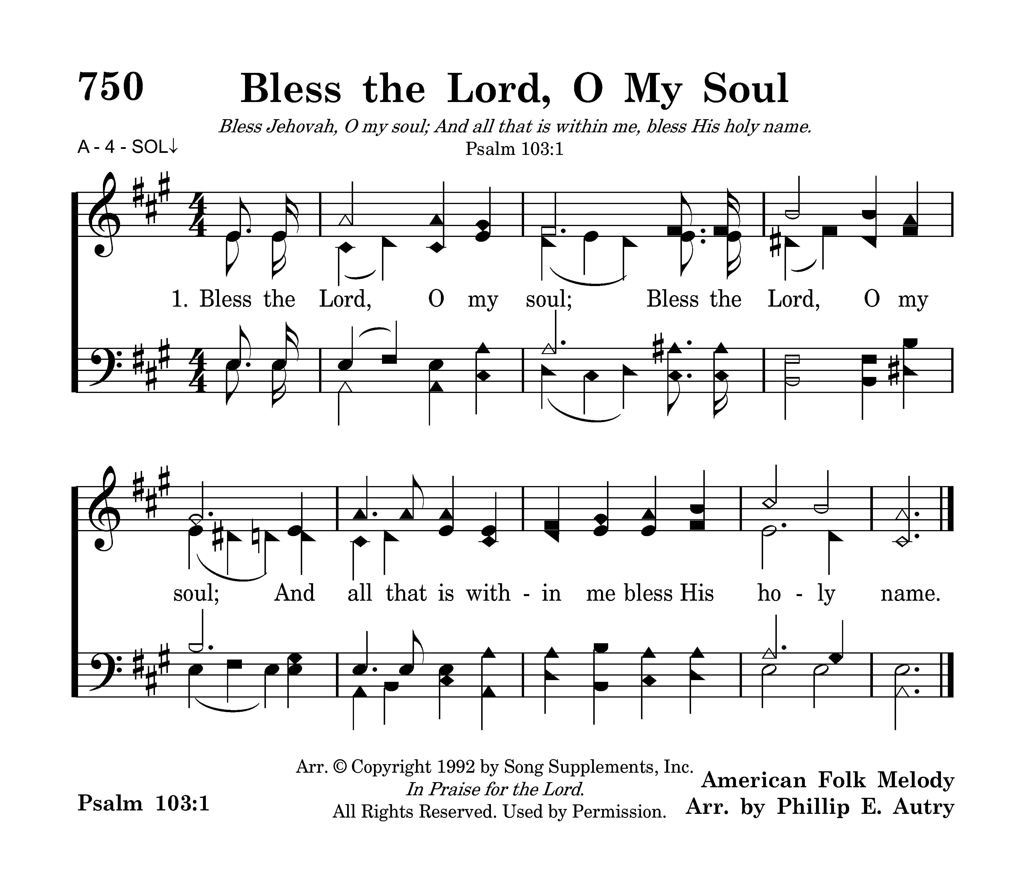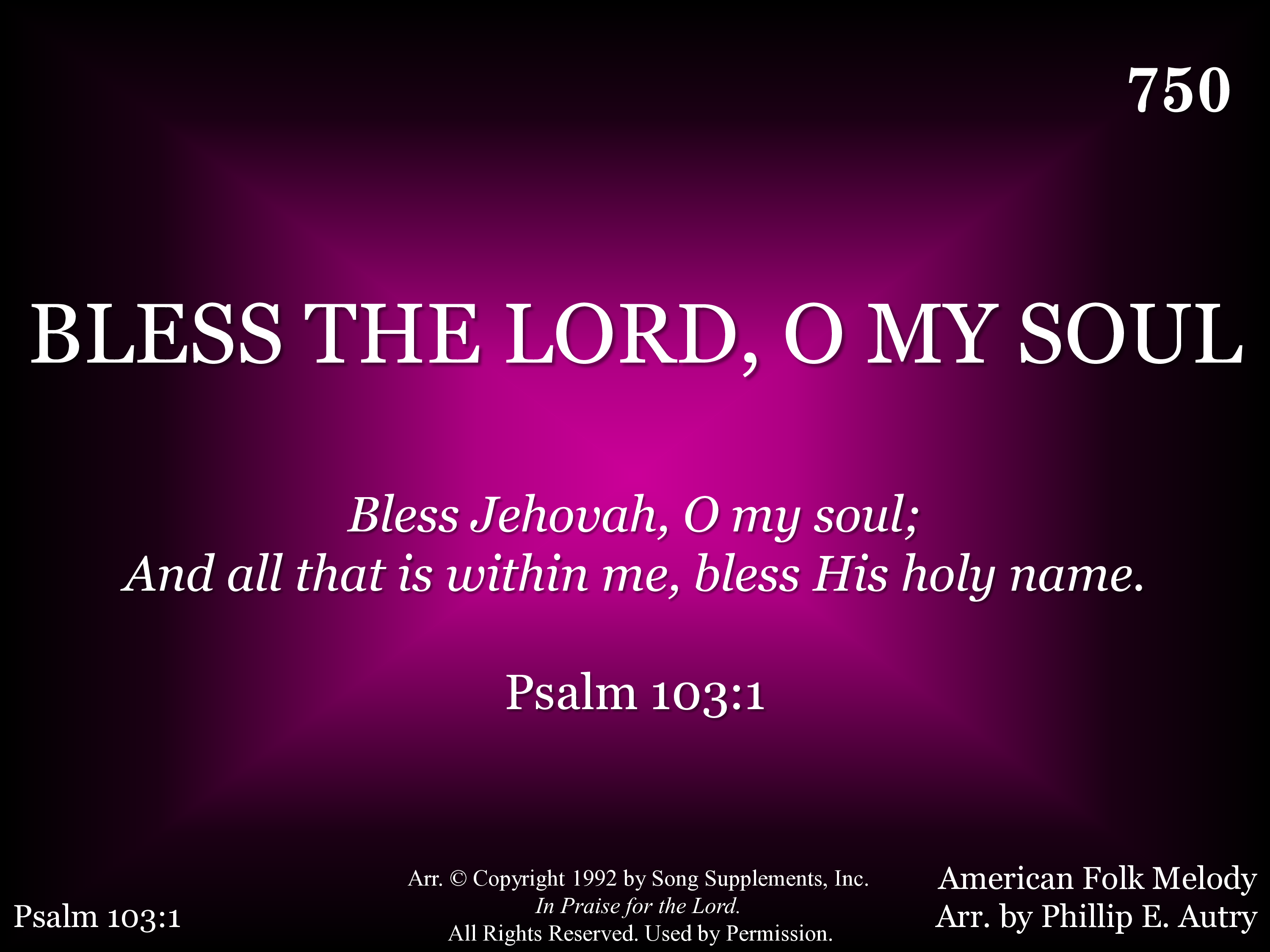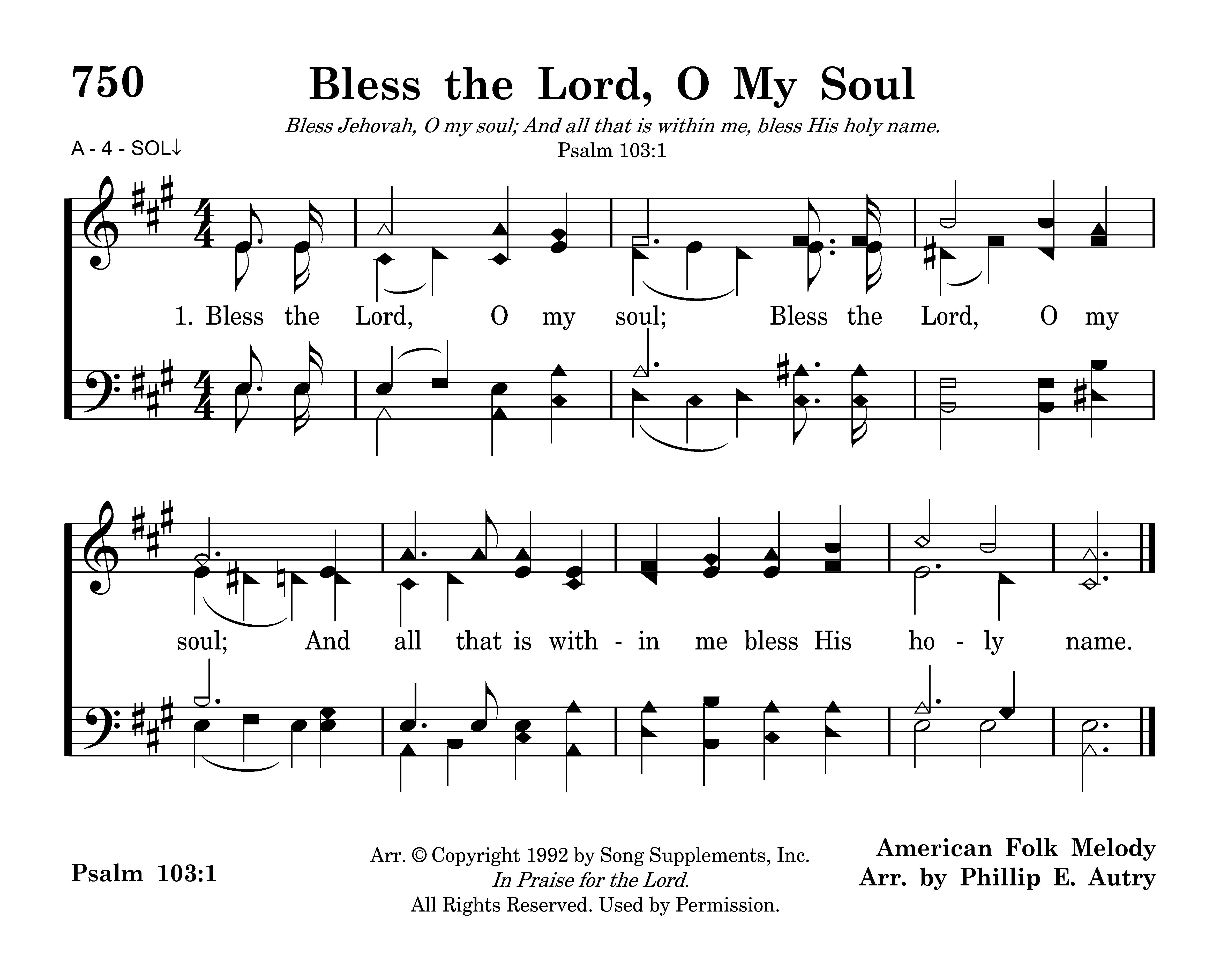 | Title | BLESS THE LORD, O MY SOUL |