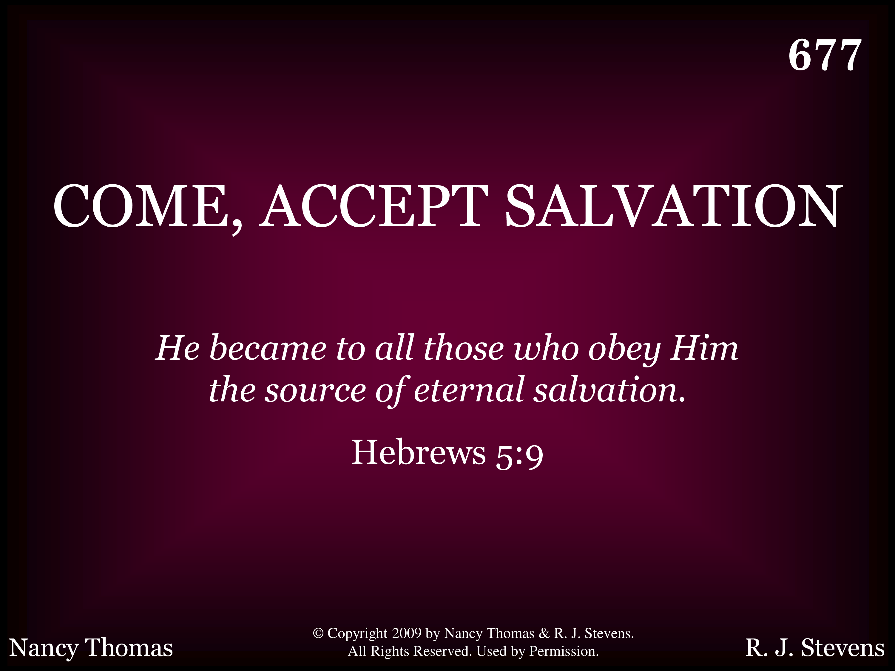 | Title | COME, ACCEPT SALVATION |