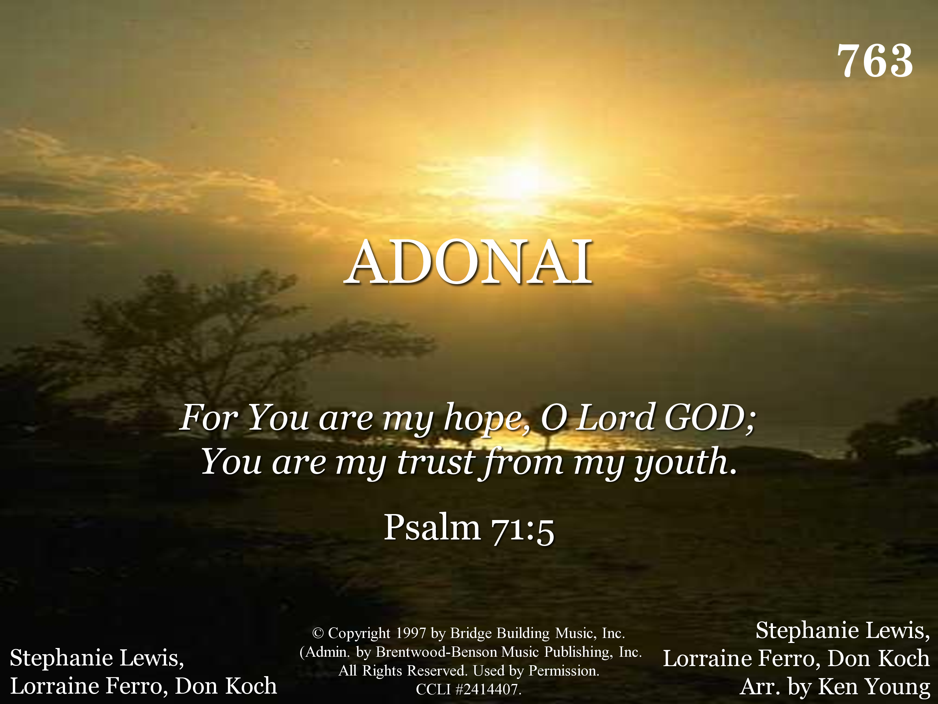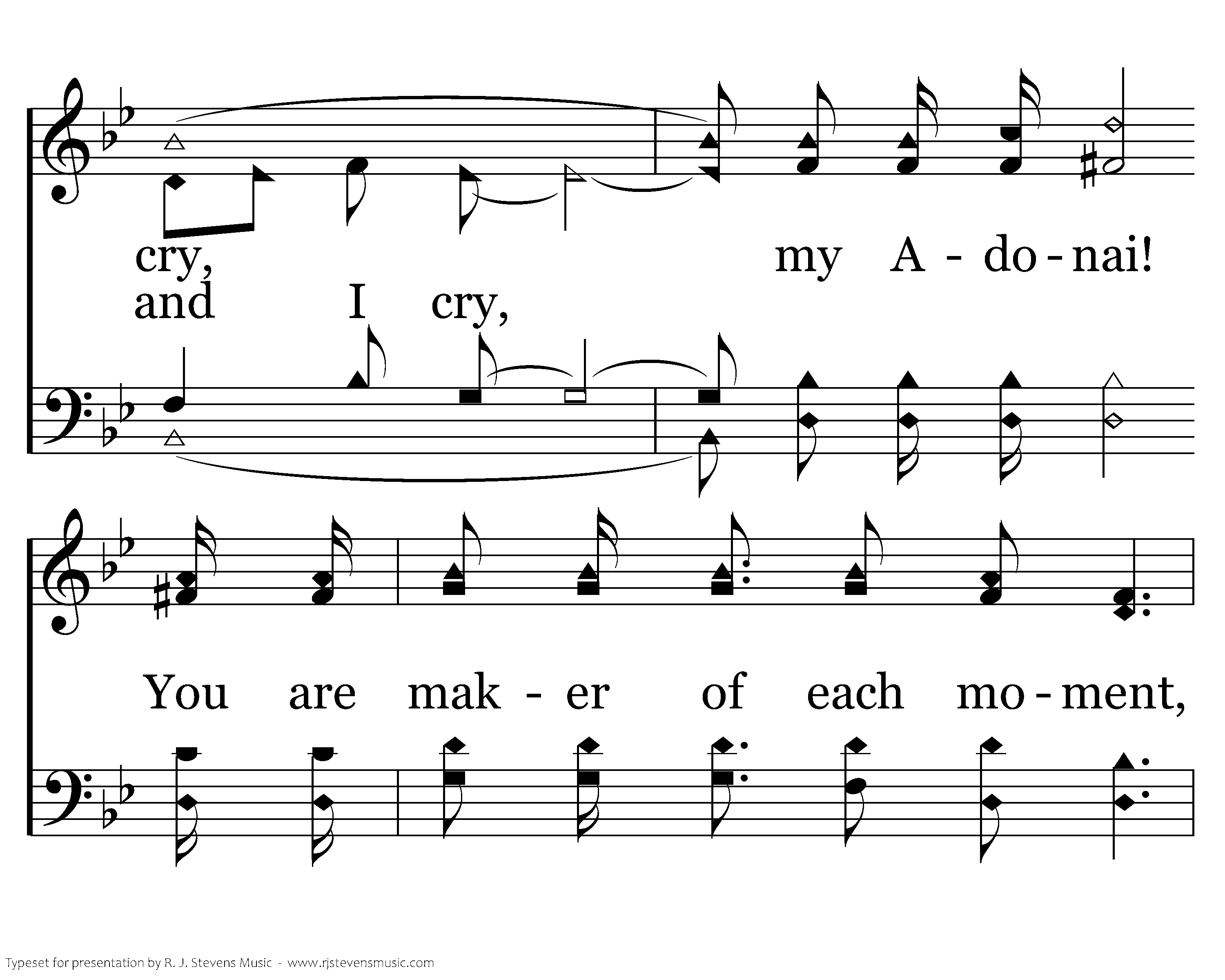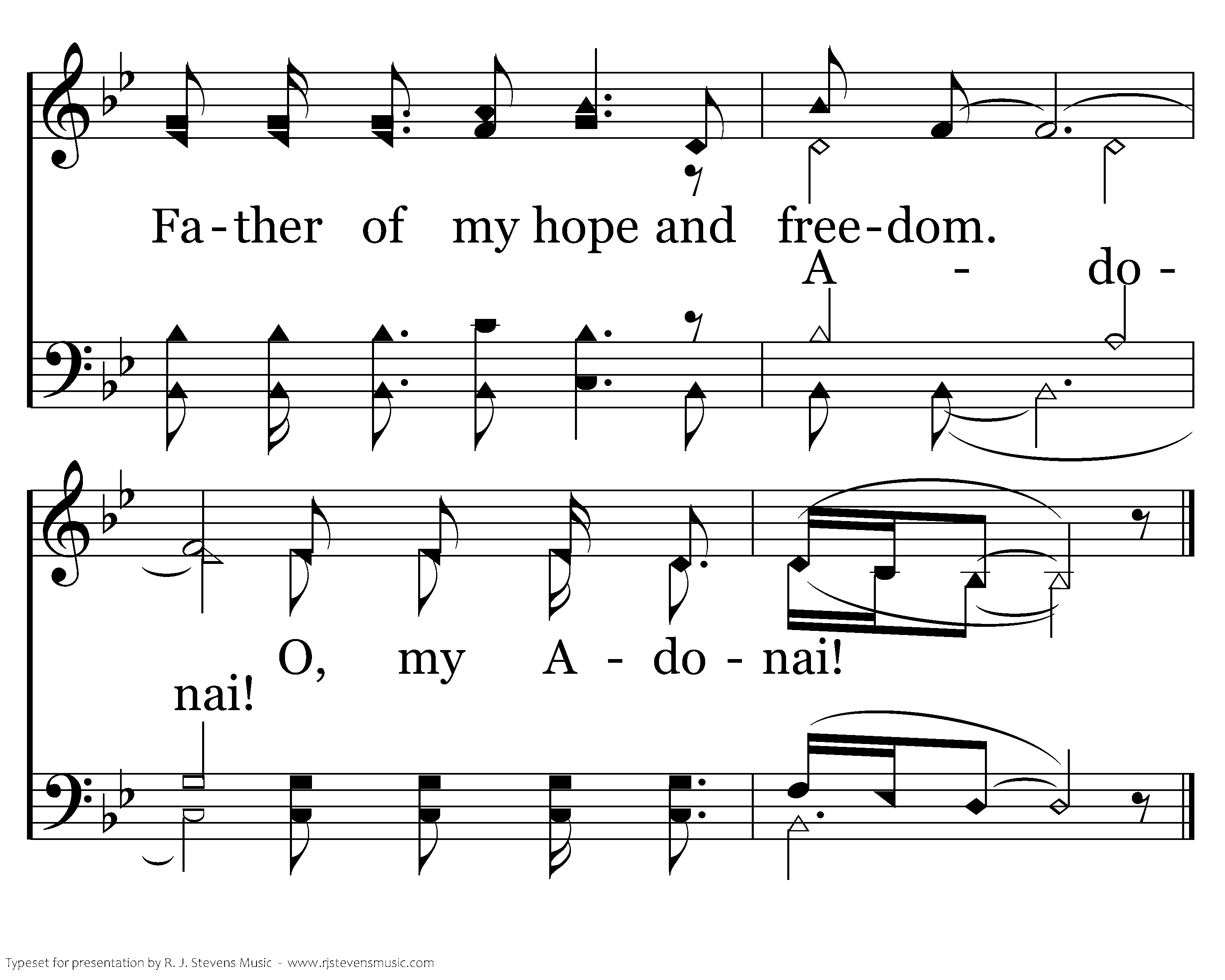 Adonai! Adonai! I lift up my heart and I cry, my Adonai! You are maker of each moment, Father of my hope and freedom. O, my Adonai!
