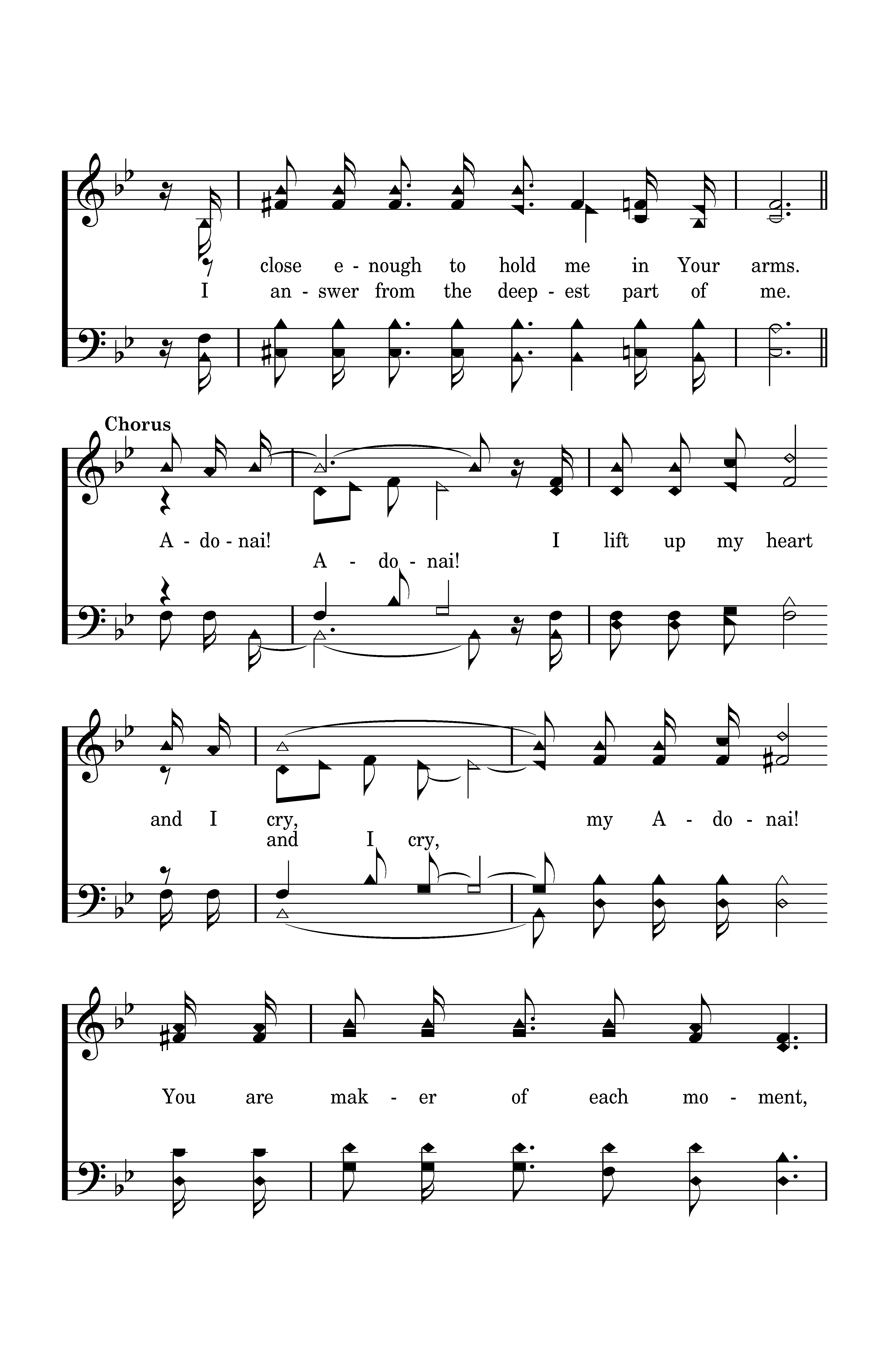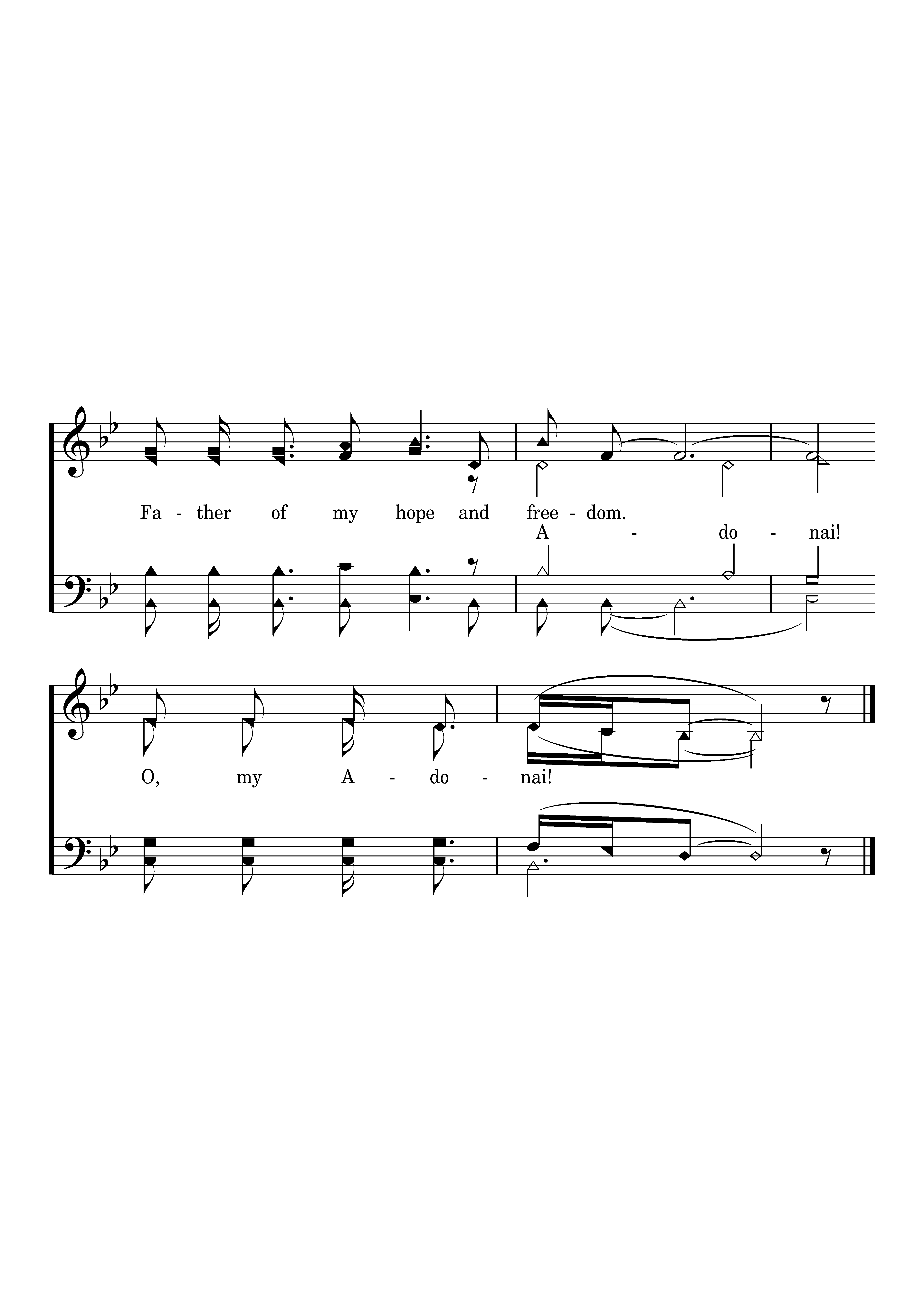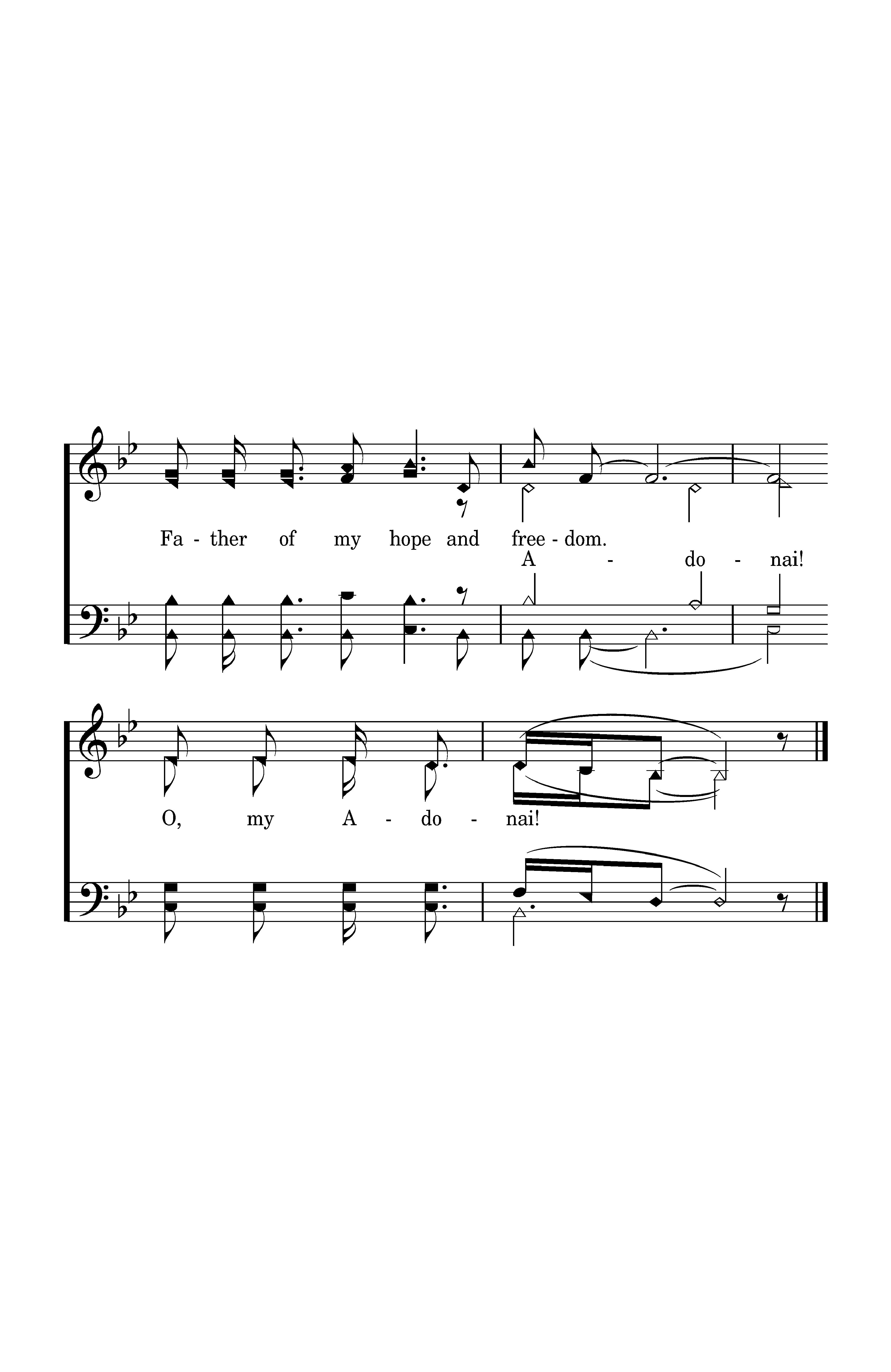 Adonai! Adonai! I lift up my heart and I cry, my Adonai! You are maker of each moment, Father of my hope and freedom. O, my Adonai!