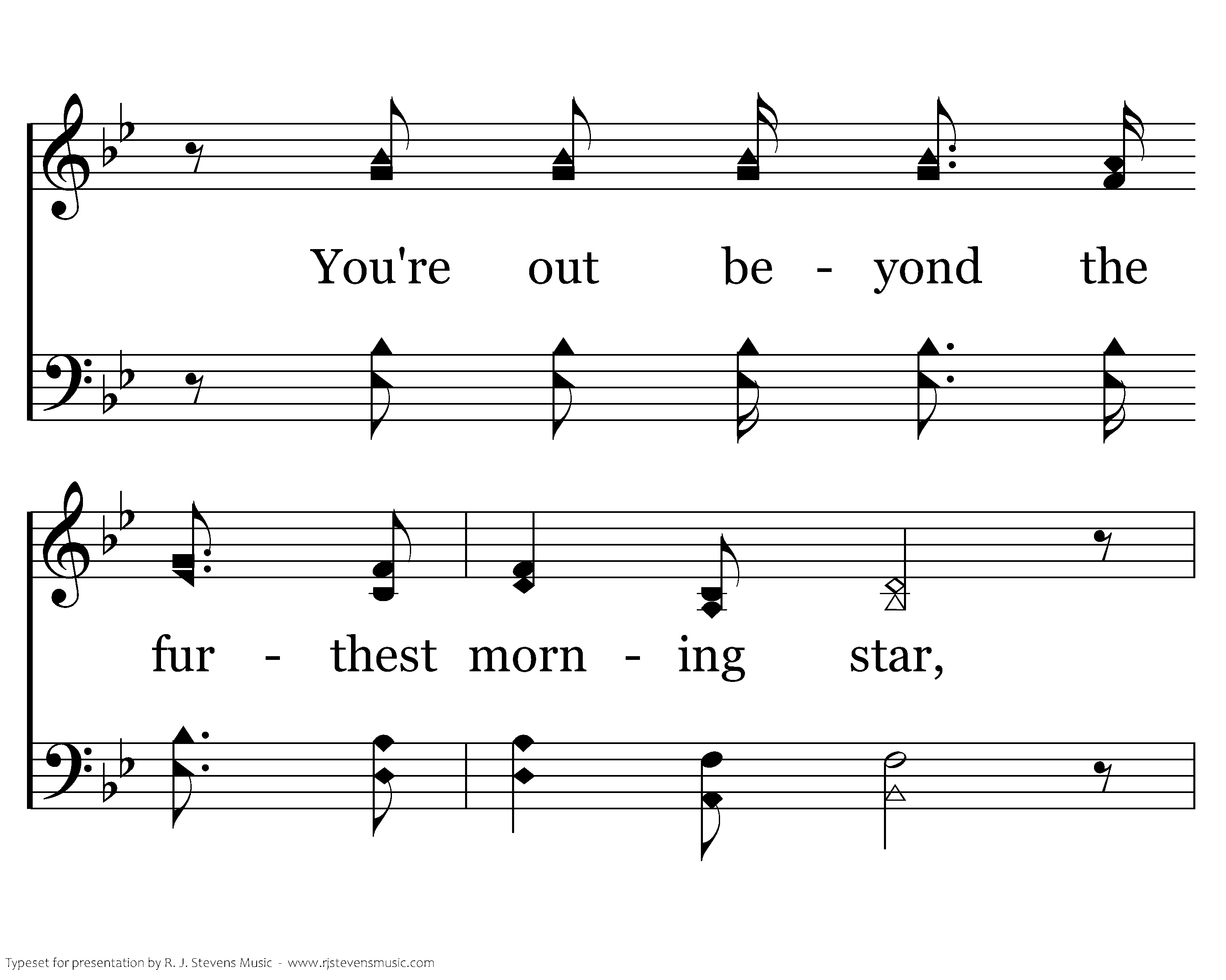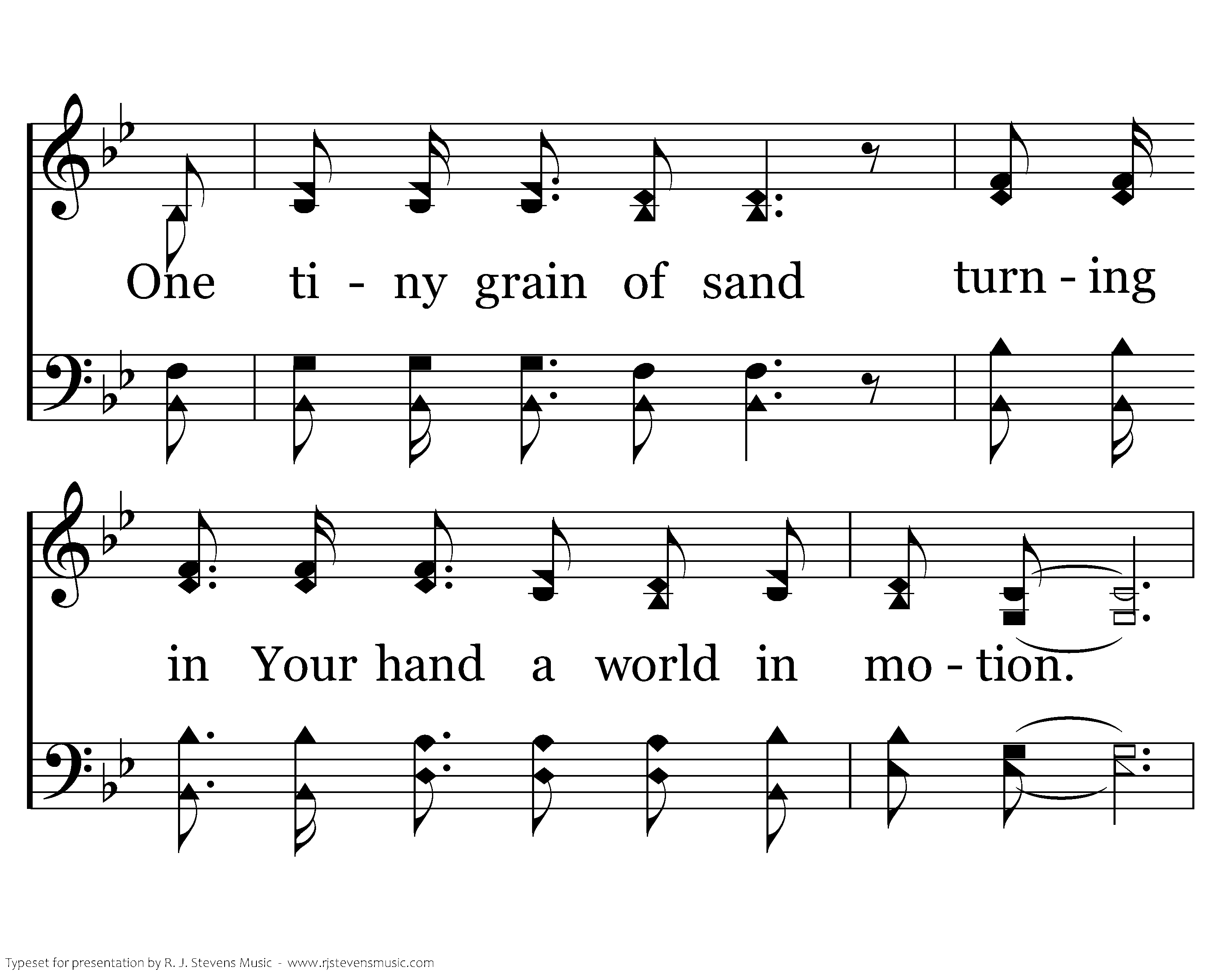 One single drop of rain, Your salty tear became blue ocean. One tiny grain of sand turning in Your hand a world in motion. You're out beyond the furthest morning star, close enough to hold me in Your arms.