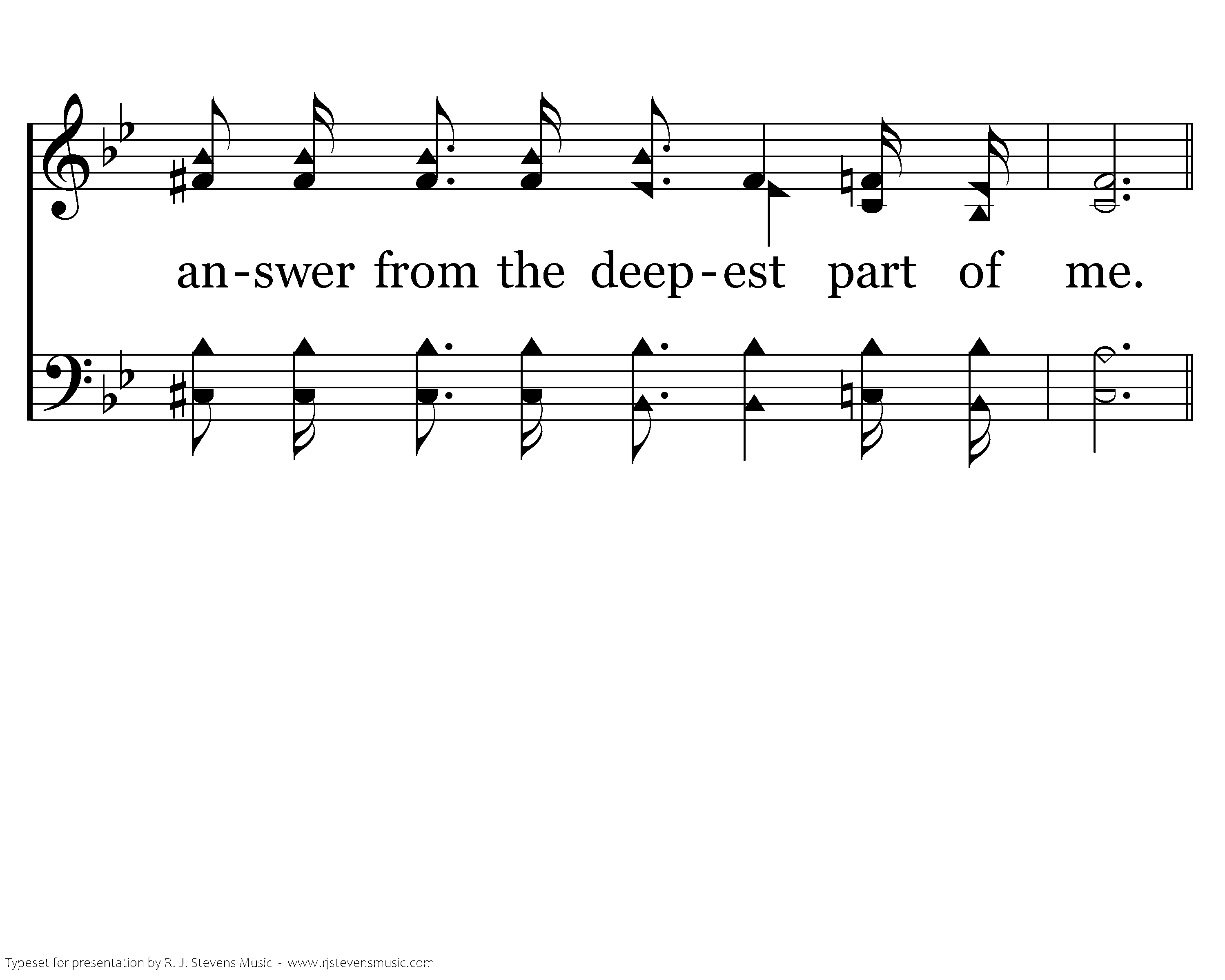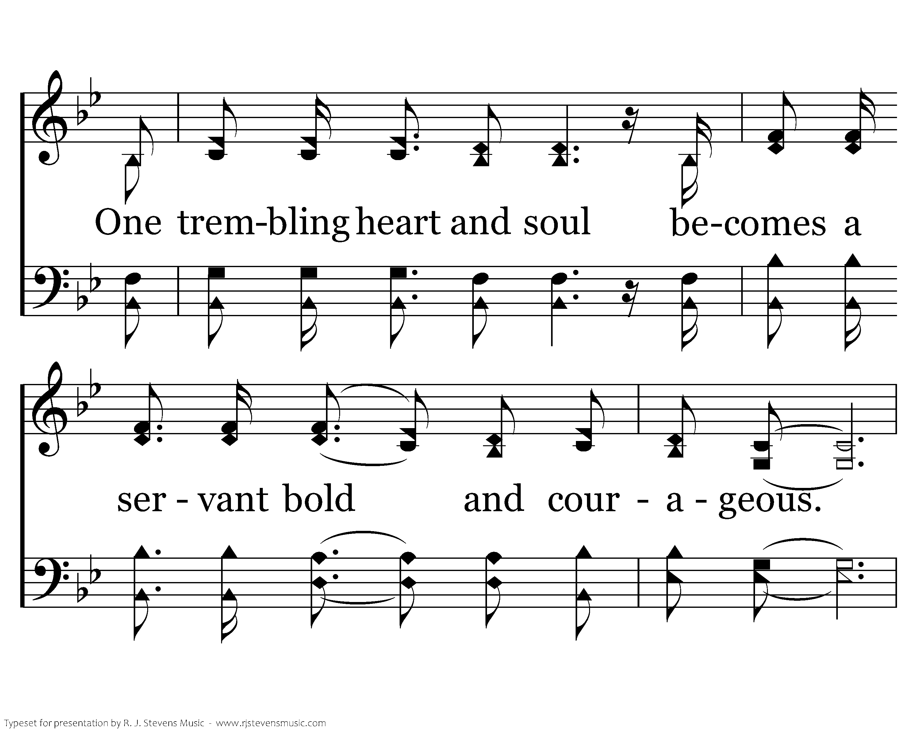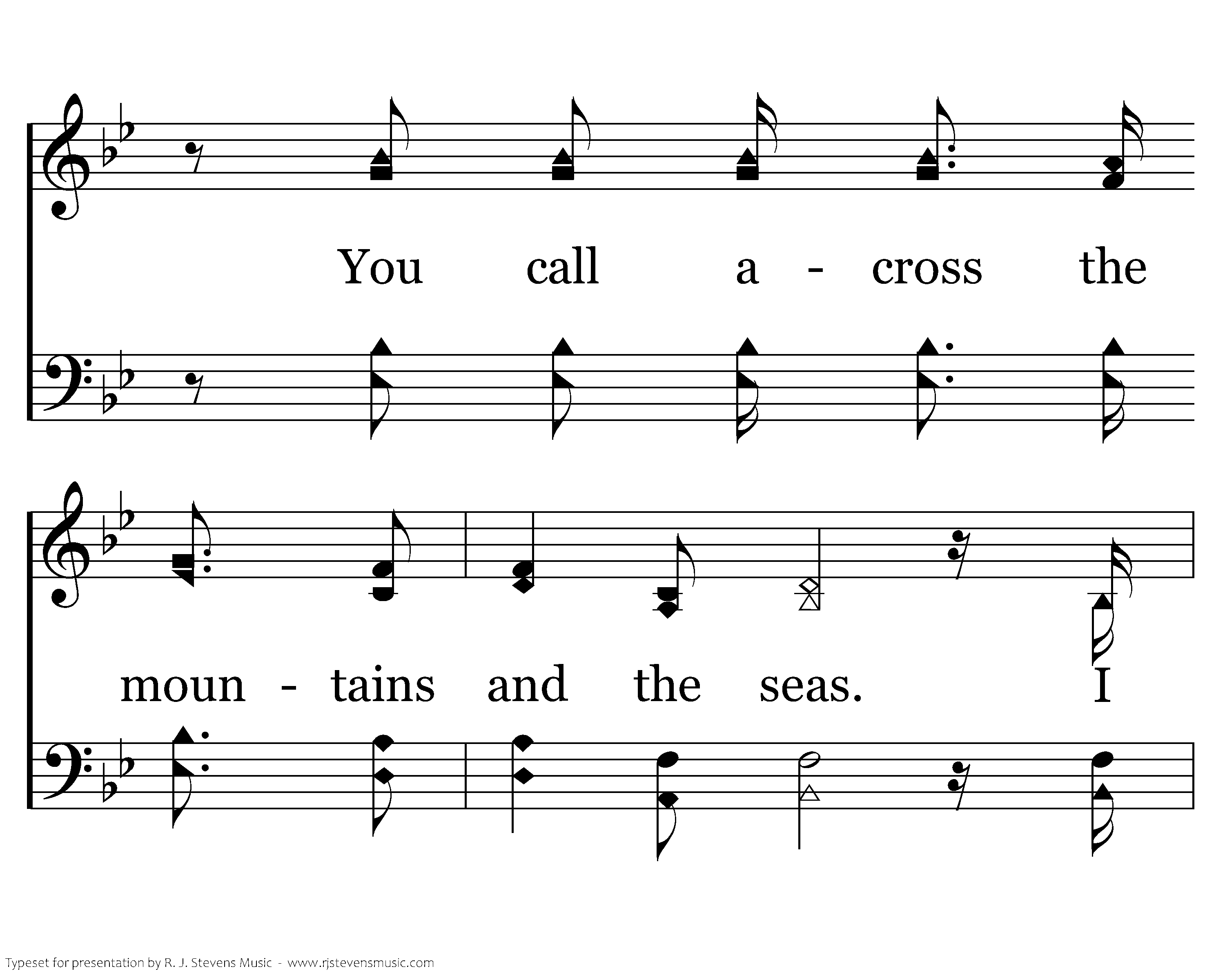 One timid faithful knock resounds upon the Rock of Ages. One trembling heart and soul becomes a servant bold and courageous. You call across the mountains and the seas. I answer from the deepest part of me.